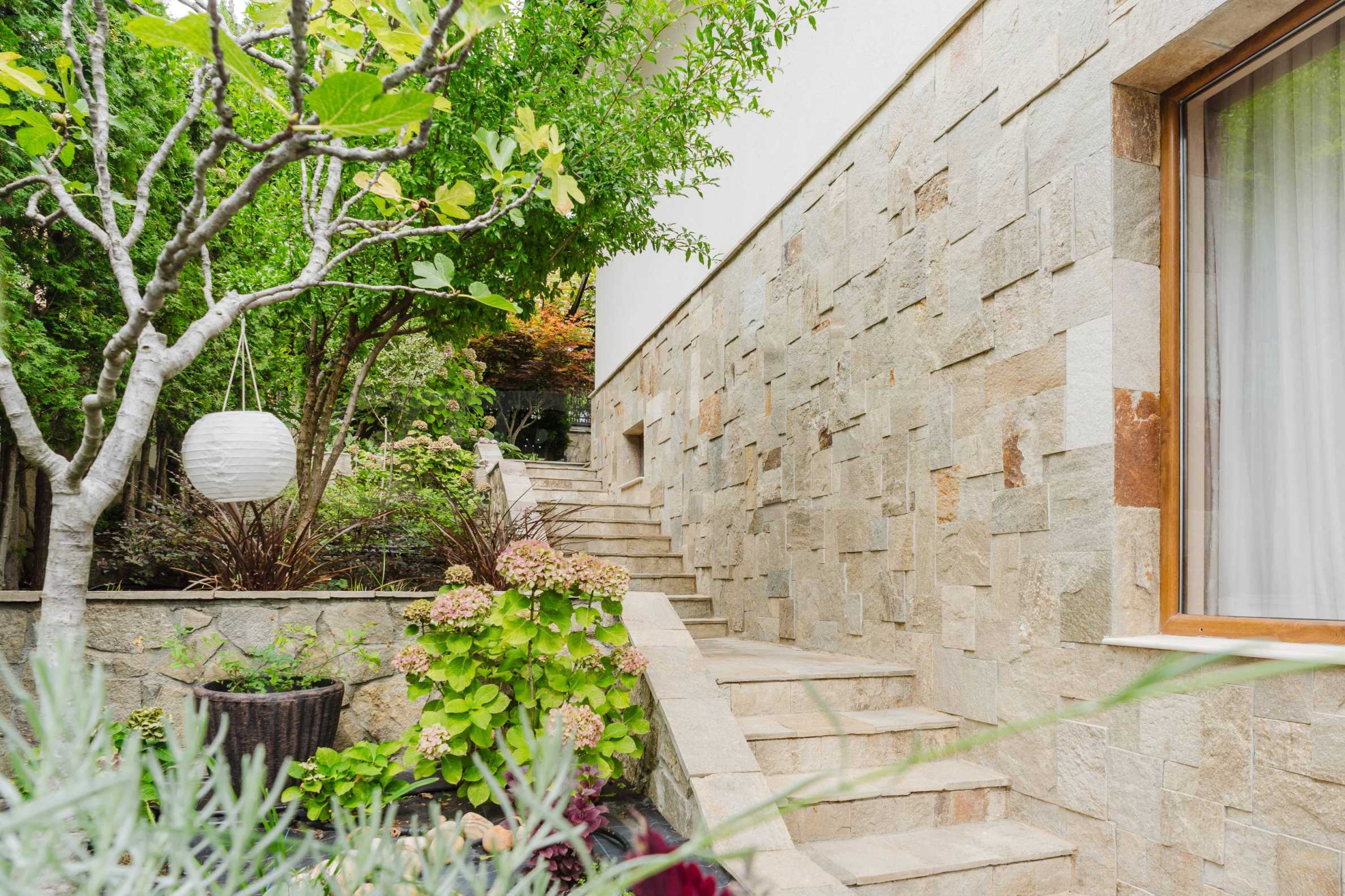 Двор богато благоустроен, огорожен массивным забором с воротами, имеется отдельная зона барбекю и 2 парковочных места.