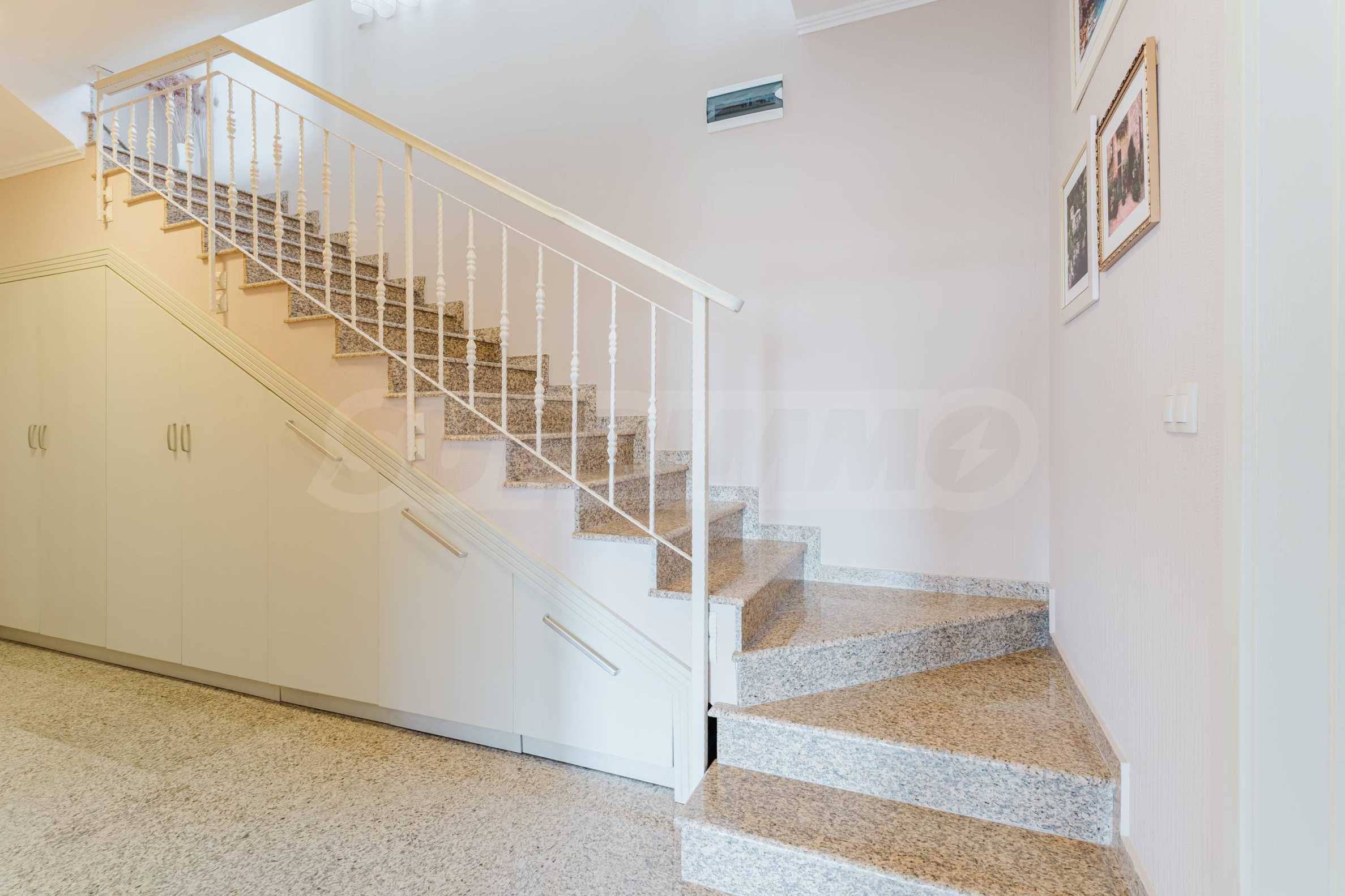 Дом трехуровневый, с подвалом и двумя жилыми этажами, общей площадью 250 кв. м и двором площадью 457 кв. м. Дом ориентирован на юго-восток.