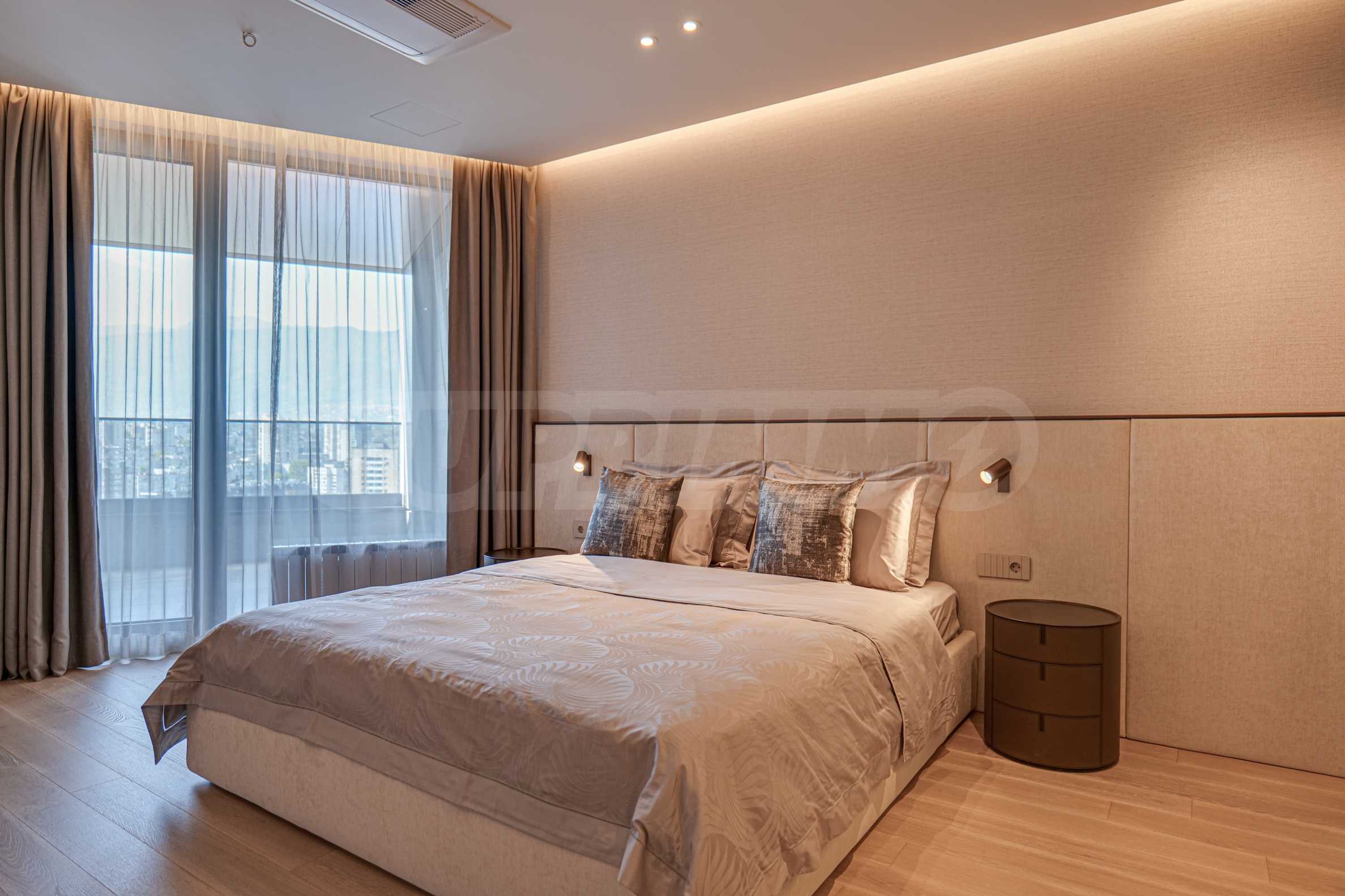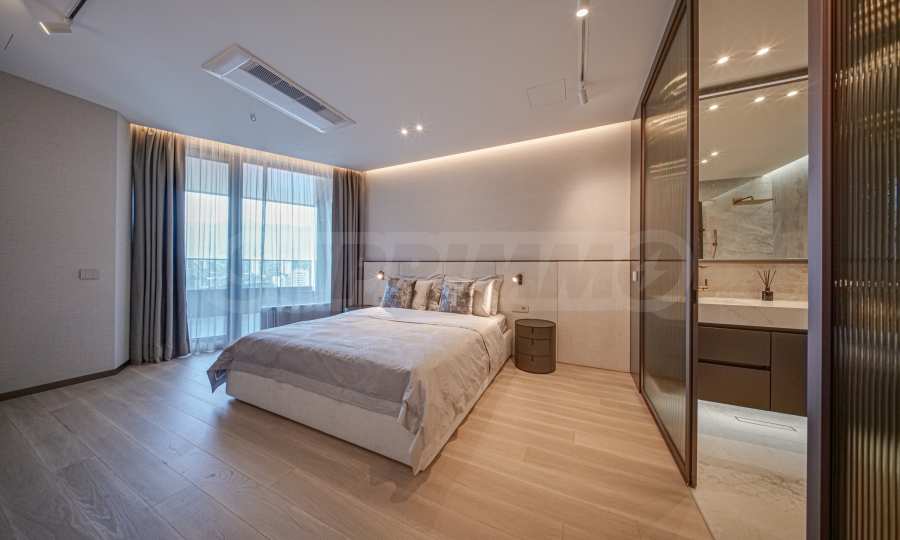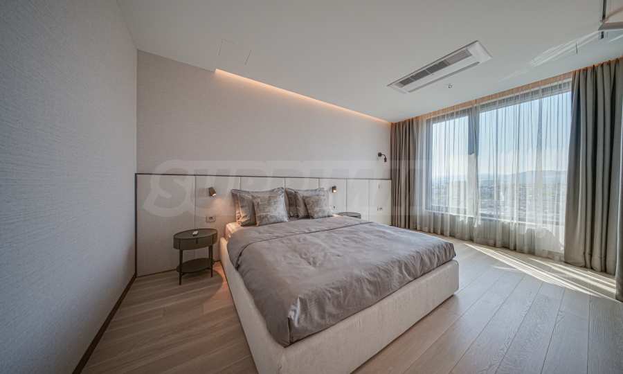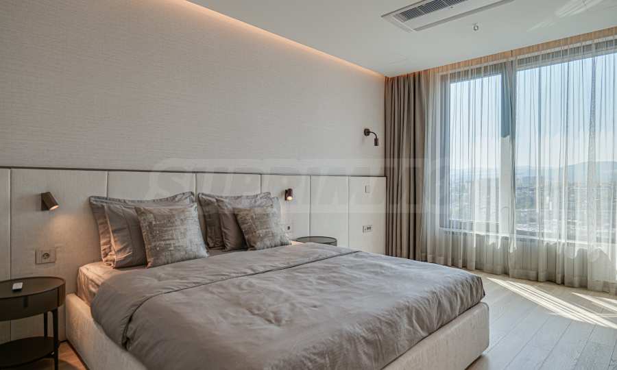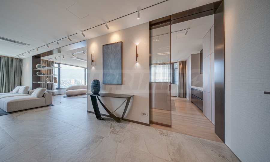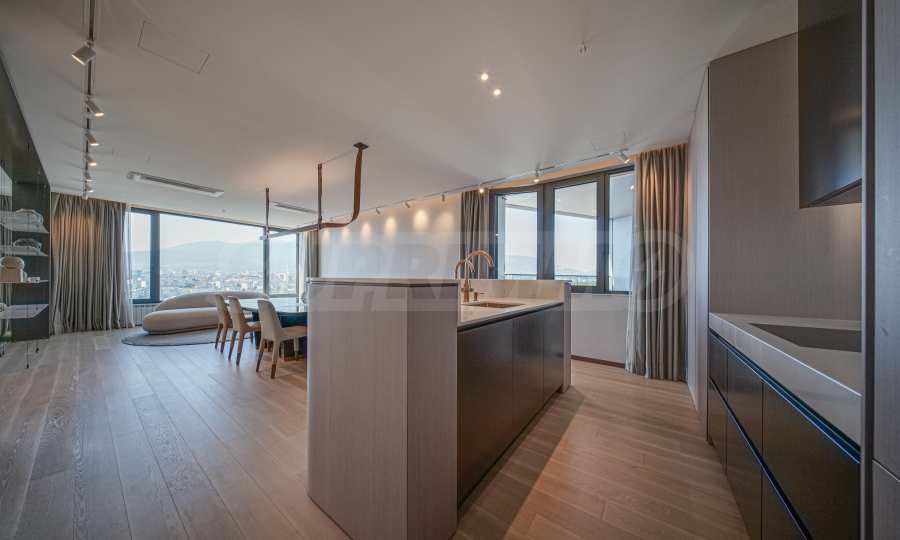 Расположенная на 16-м этаже, эта квартира открывает невероятный вид на гору Витоша и город, создавая ощущение бесконечности и свободы.