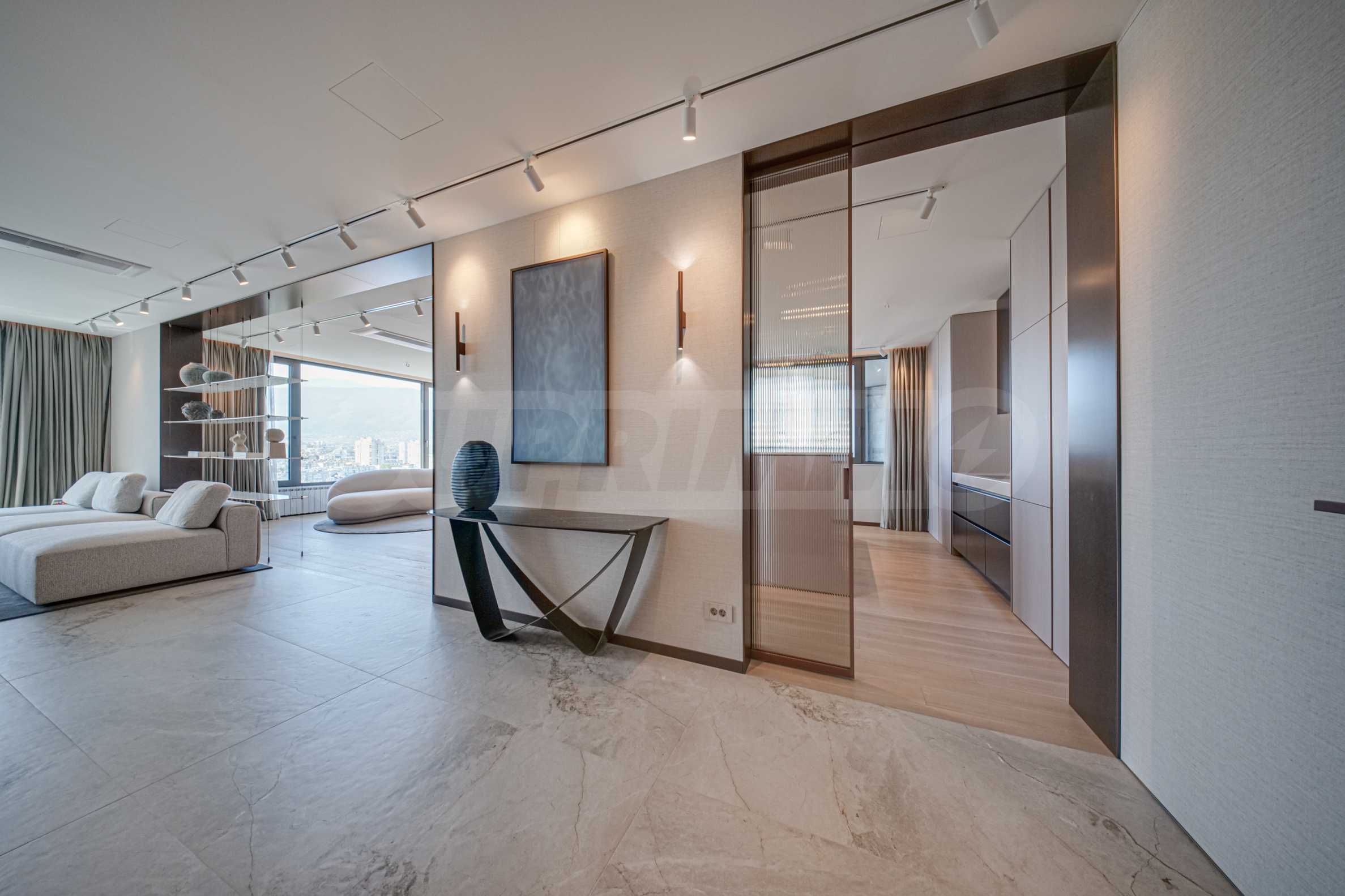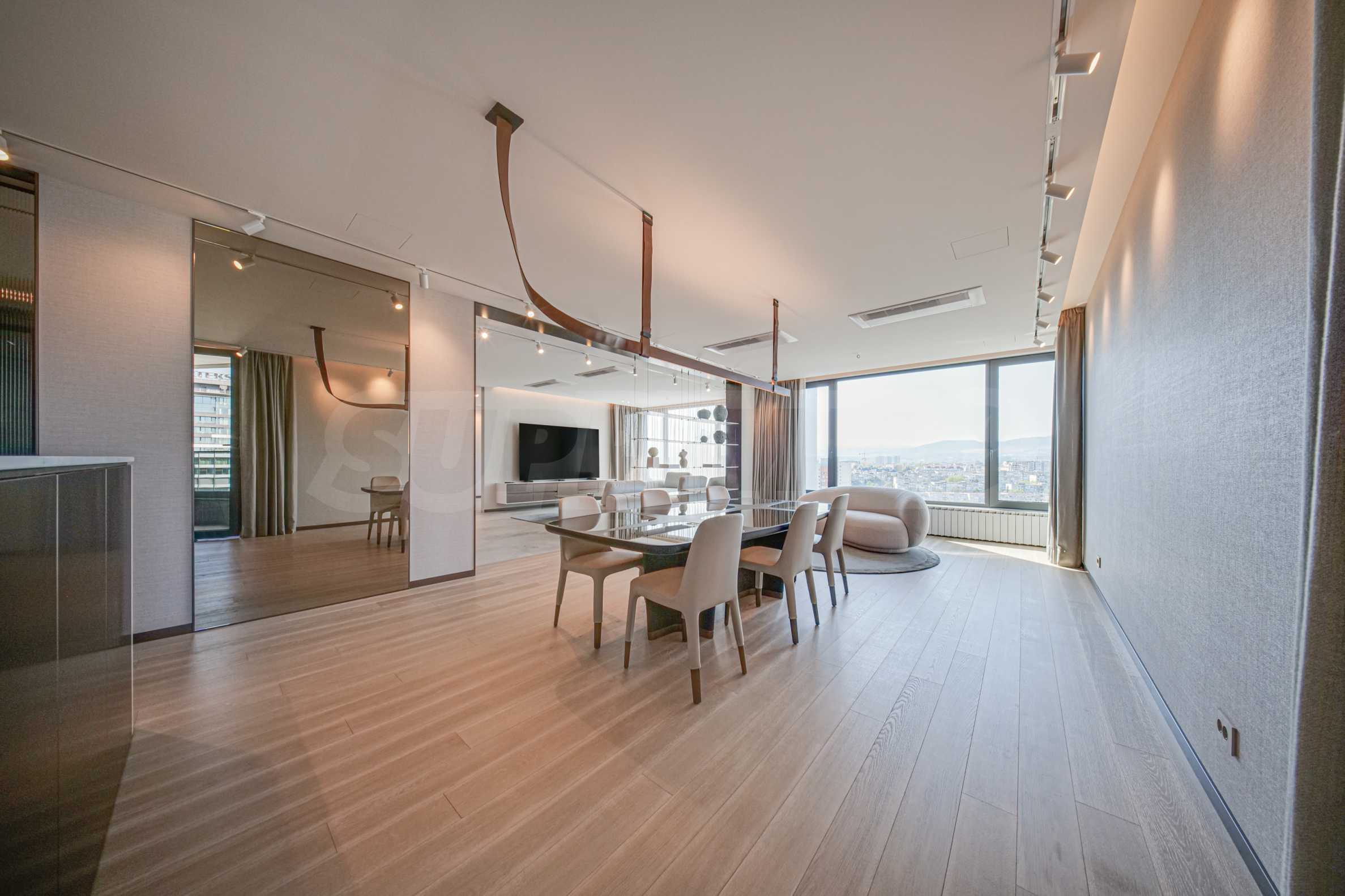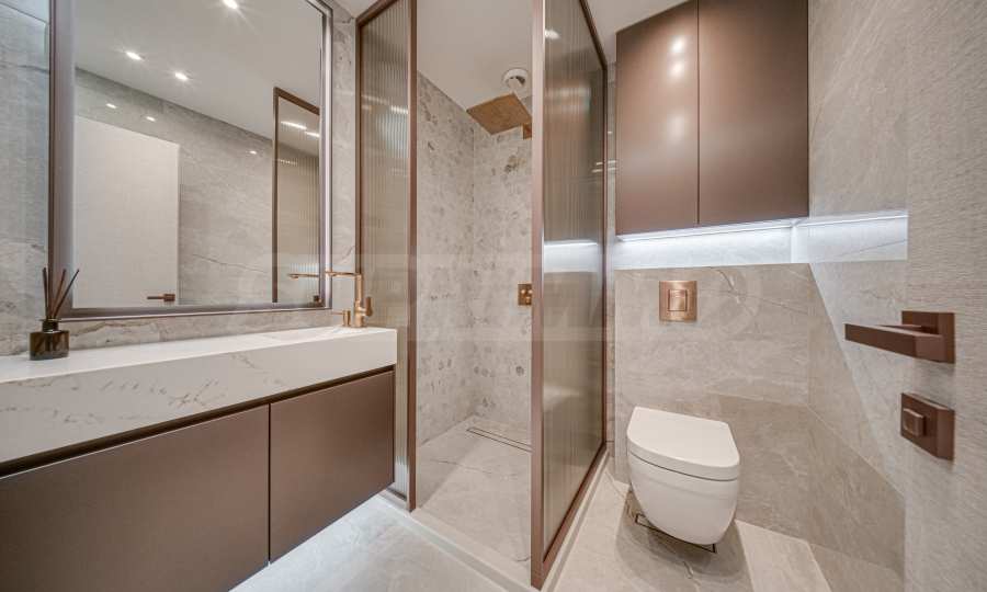 Расположенная на 16-м этаже, эта квартира открывает невероятный вид на гору Витоша и город, создавая ощущение бесконечности и свободы.