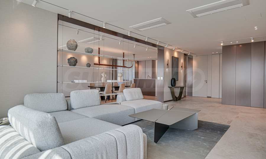 Объект недвижимости полностью отделан и обставлен меблировкую ведущих итальянских и международных брендов. Каждое пространство излучает гармонию, элегантность и бескомпромиссное качество.