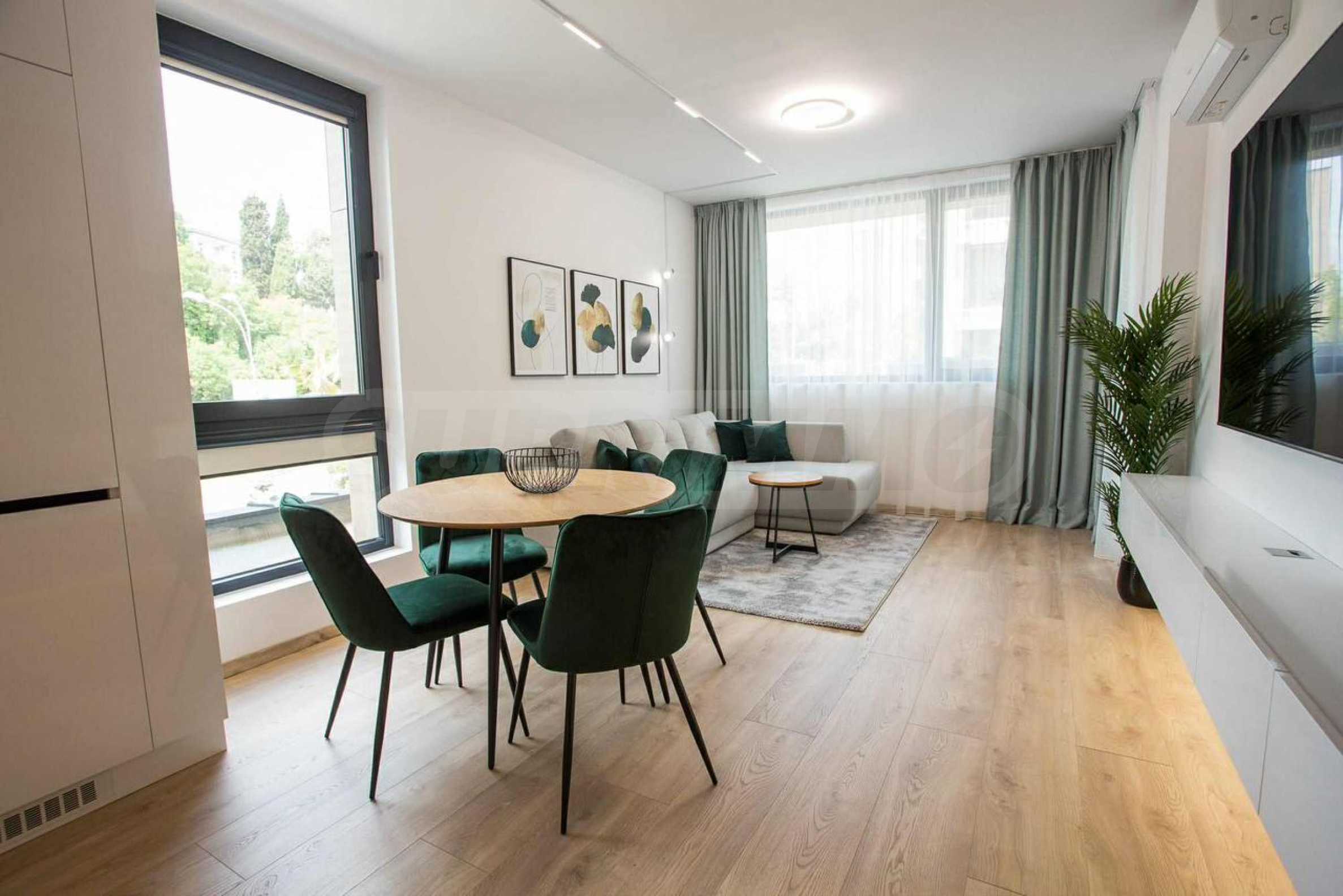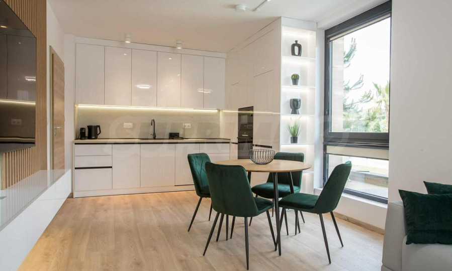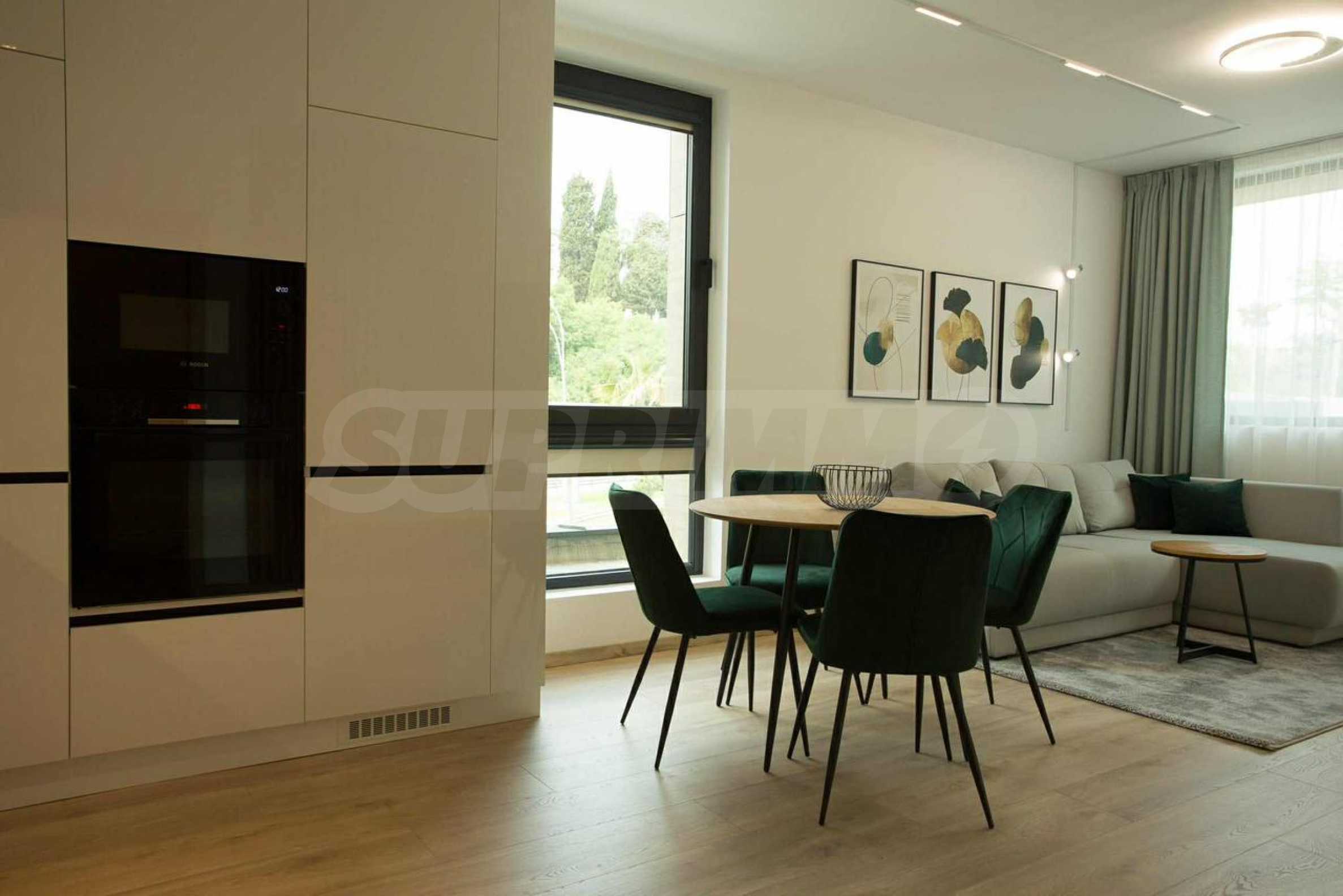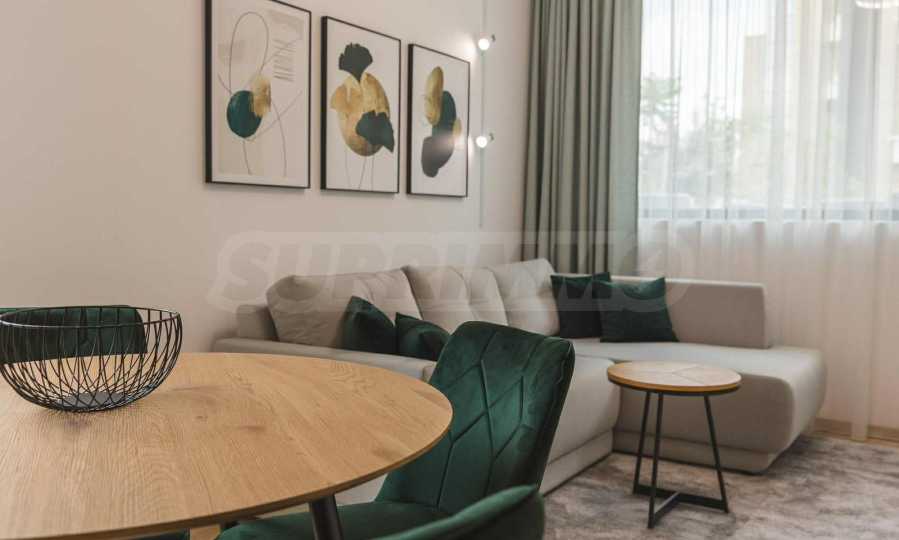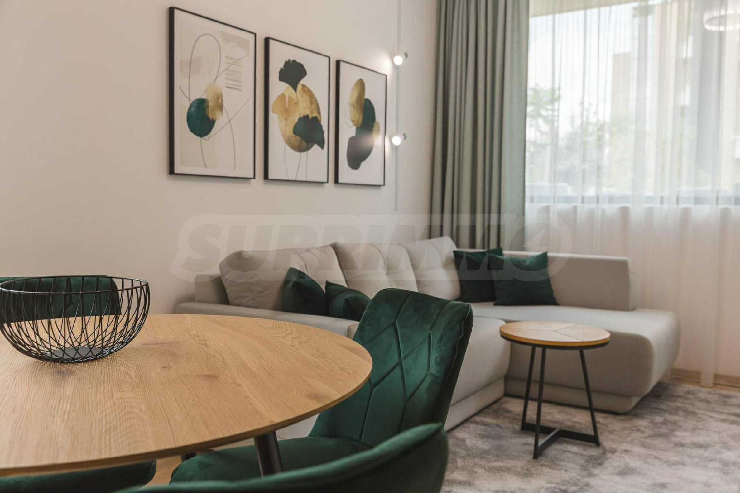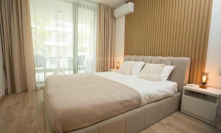 Представляем стильную двухкомнатную квартиру, расположенную в одном из самых новых и престижных закрытых комплексов, на первоклассном курорте Св. Св. Константин и Елена. Отличное расположение в районе с современной инфраструктурой, такой как великолепный пляж протяженностью 3,5 км с водными видами спорта и развлечениями, парковые зоны, аллеи для прогулок и активного отдыха, теннисные корты, поля для гольфа, 7 термальных источников с целебными свойствами и популярные СПА-центры. Рядом есть всё необходимое для постоянного проживания: круглогодичный общественный транспорт, школы, детский сад, аптеки, банки, магазины и т. д.