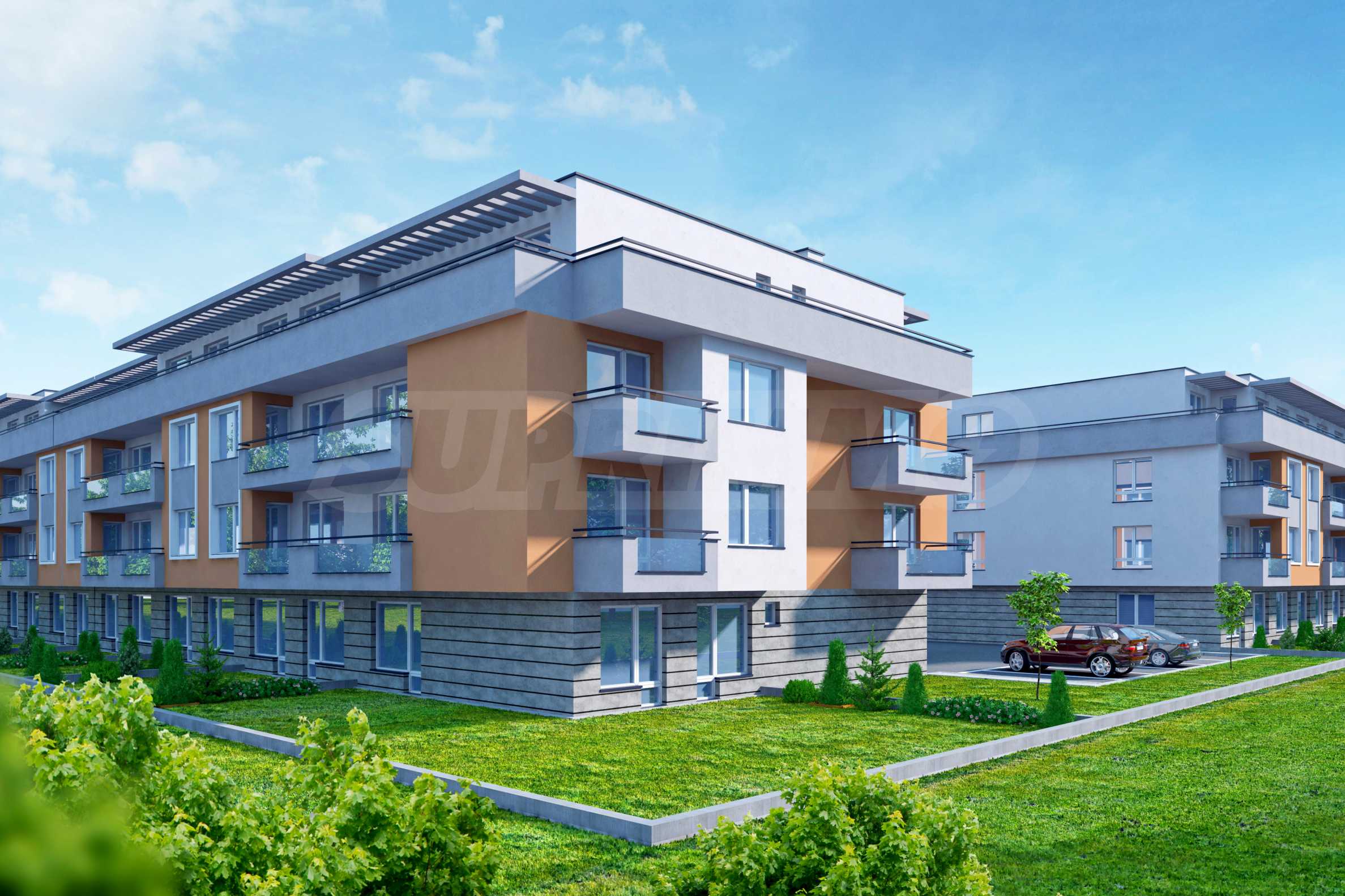 Комплекс состоит из 5 отдельных жилых зданий, каждое из которых имеет цокольный этаж и 3 жилых этажа с лифтом. Предлагаются квартиры различной площади: однокомнатные, двухкомнатные и трехкомнатные. Территория вокруг зданий обустроена с учетом парковочных мест и озеленения.