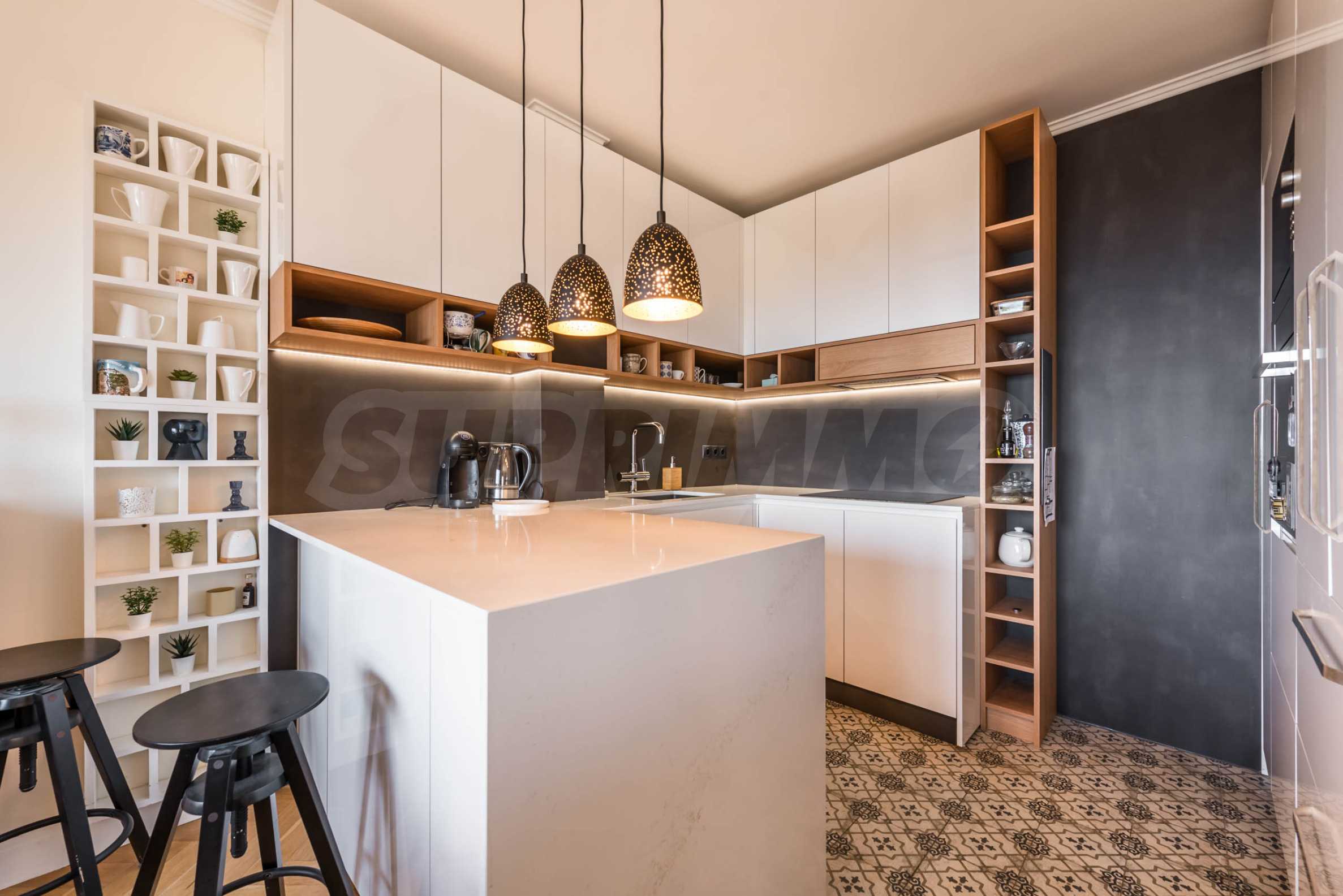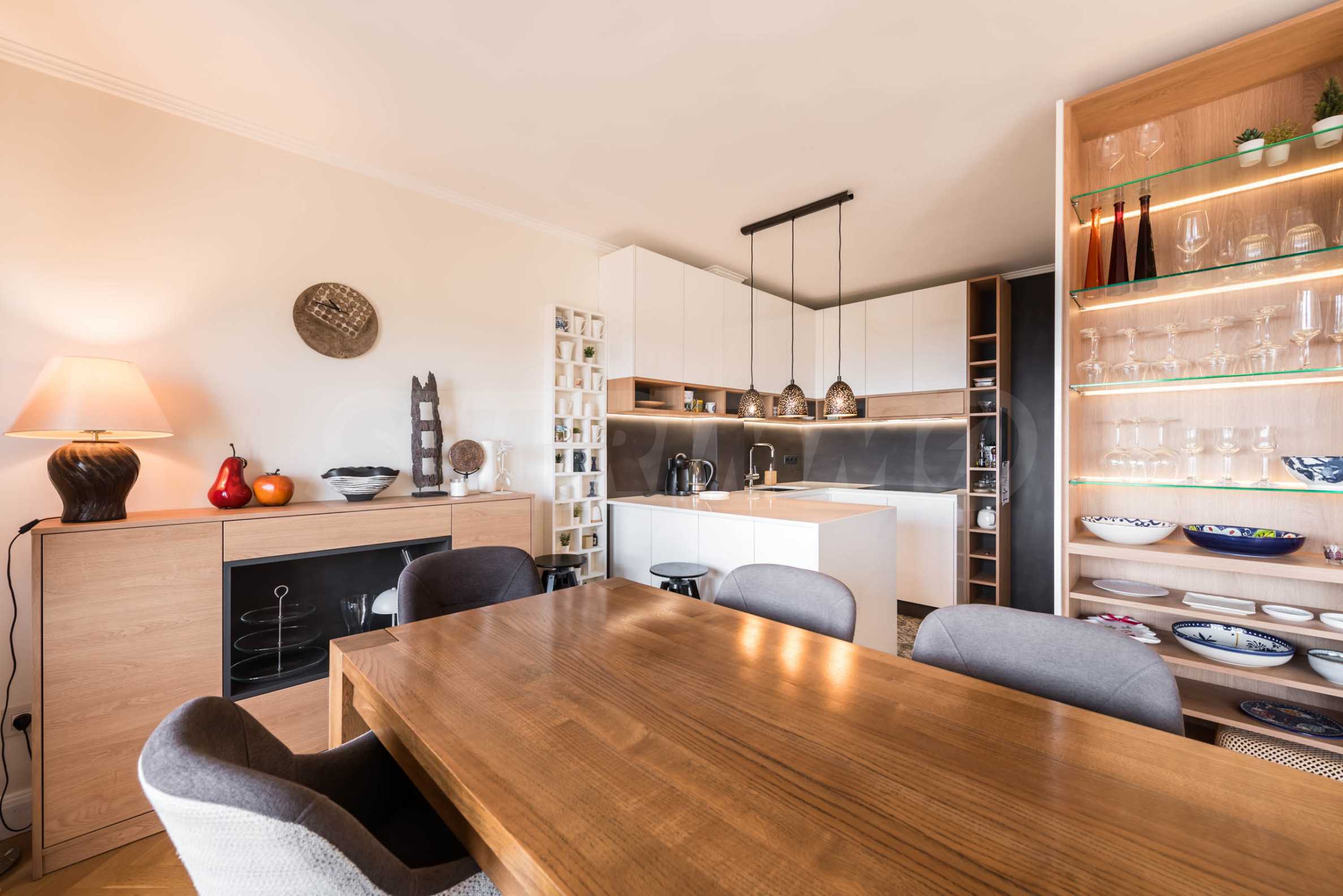 • очень светлая гостиная с элегантной кухней и столовой;