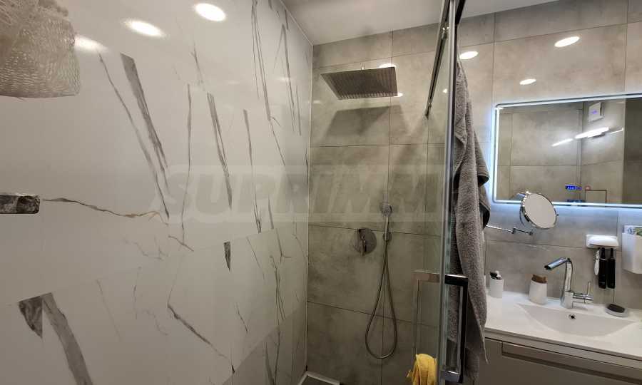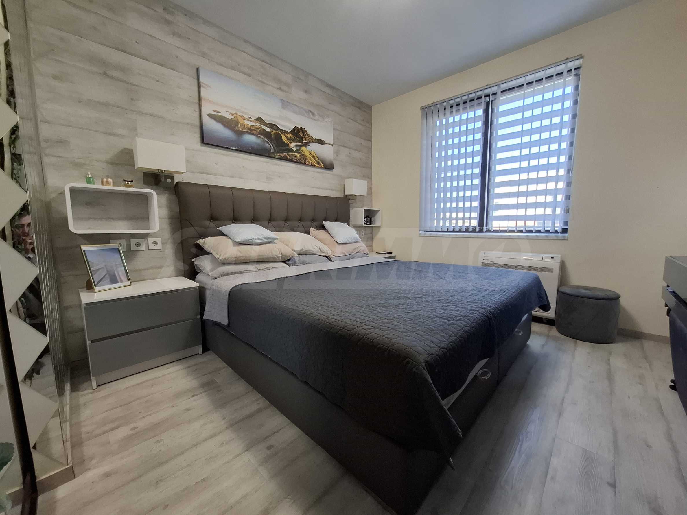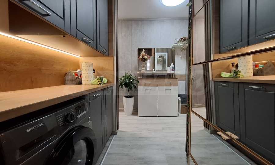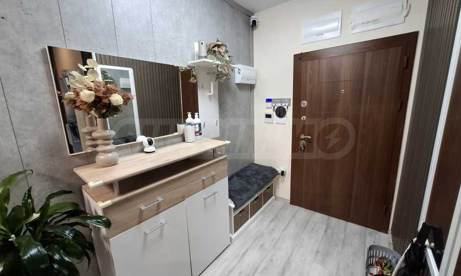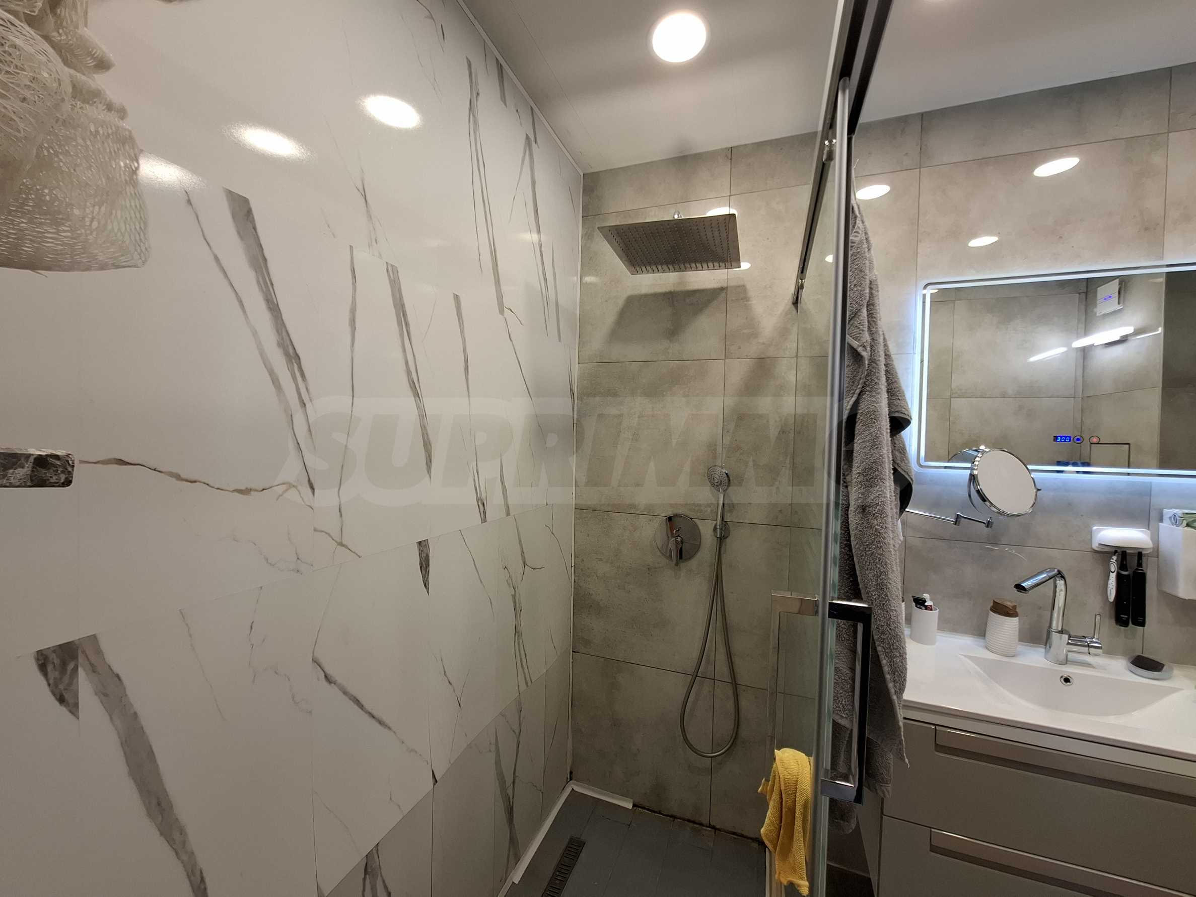 Квартира имеет современный интерьер, полностью меблирована и оборудована высококачественной электротехникой - стиральная машина, встроенная духовка и варочная панель, холодильник, два кондиционера, два телевизора, микроволновая печь и т. д. Также установлена современная система охранной сигнализации.