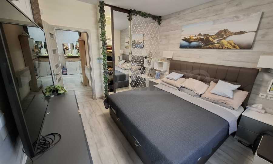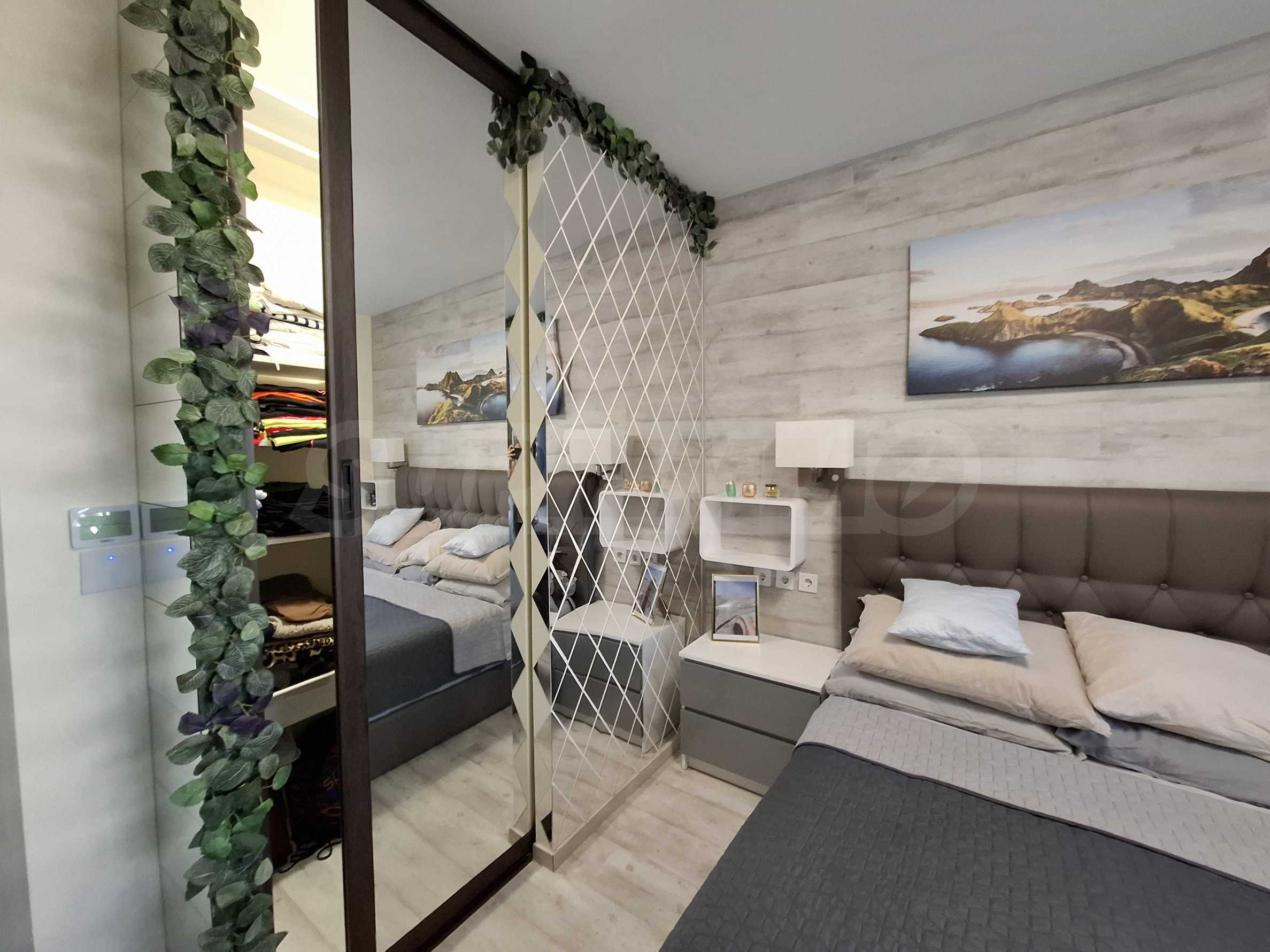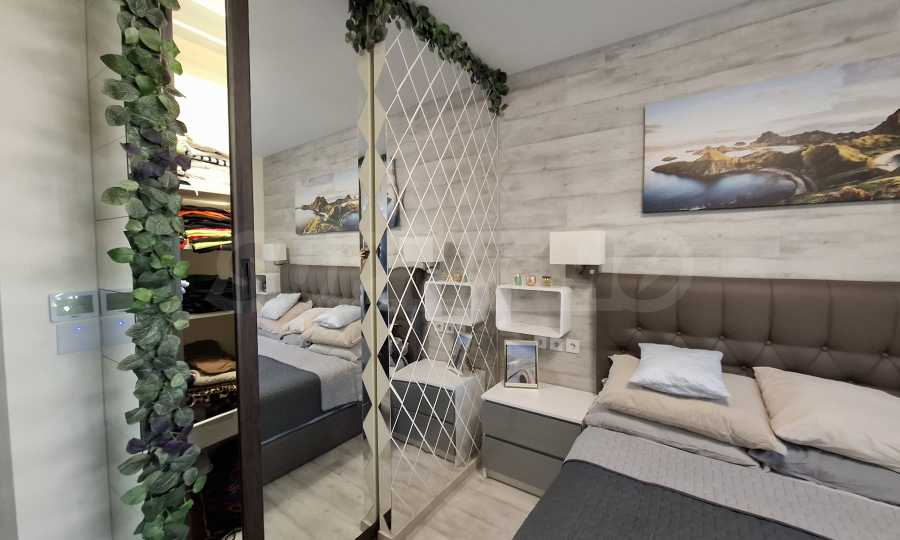 • главная спальня с большим гардеробом и дизайнерским зеркалом;