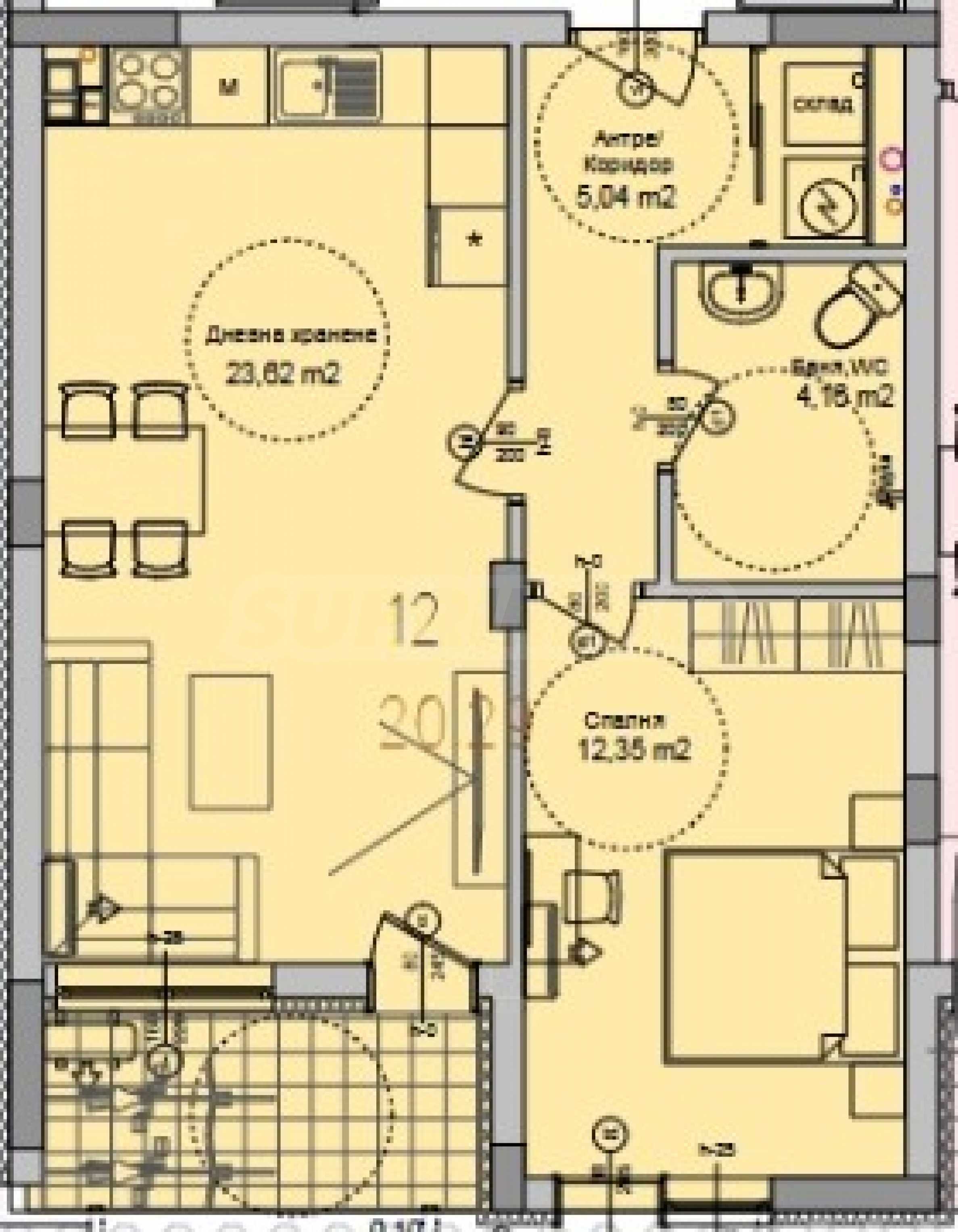 Представляем на продажу двухкомнатную квартиру, в новом современном здании, в 300 метрах от пляжа в квартале «Сарафово», г. Бургас.