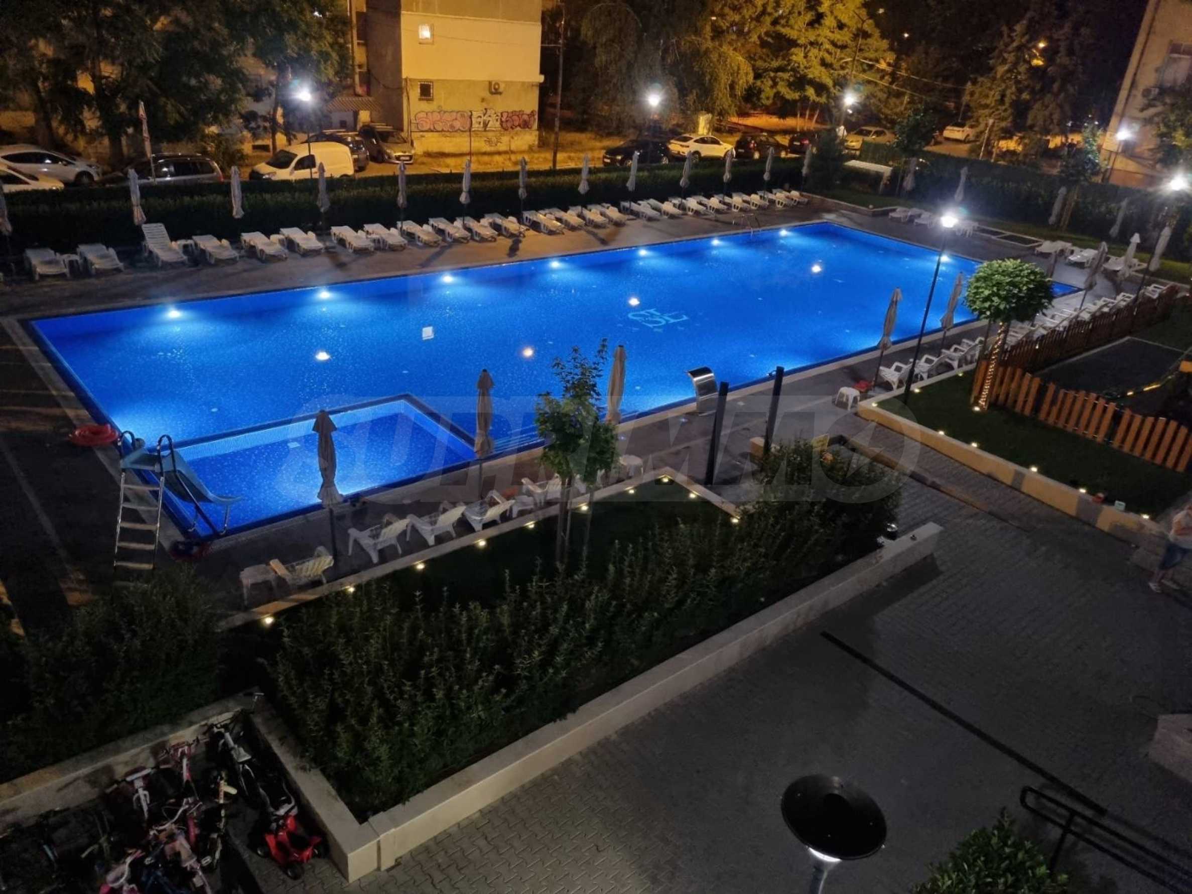Комплекс полностью закрыт, все двери открываются кодом при въезде и выезде. Во дворе есть большой бассейн и детская площадка.