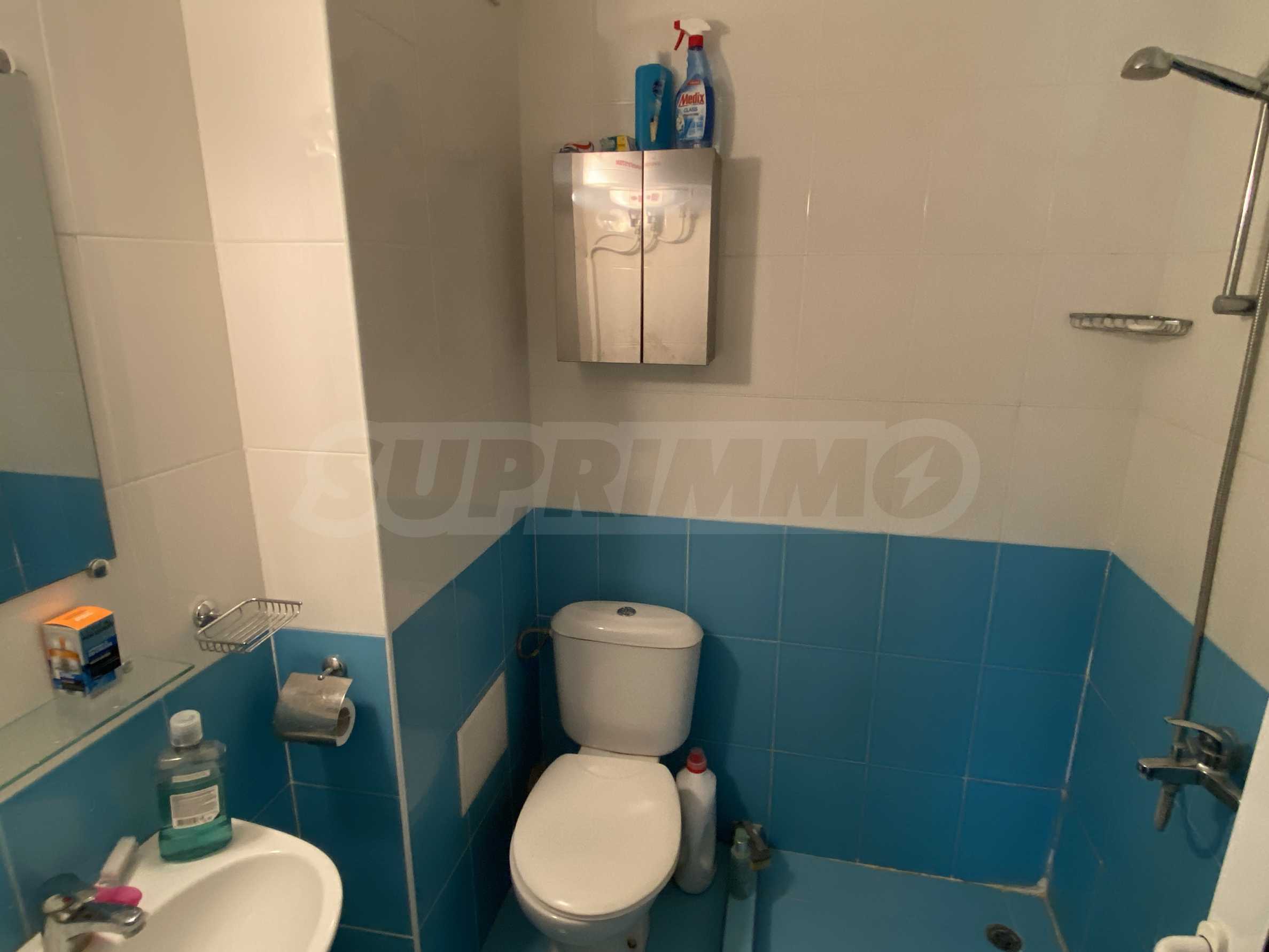 В квартире стены покрыты латексом, полы ламинат, окна ПВХ. Отопление и охлаждение осуществляются инверторными кондиционерами и электрическими конвекторами. Квартира меблирована и оборудована всем необходимым для комфортной жизни.