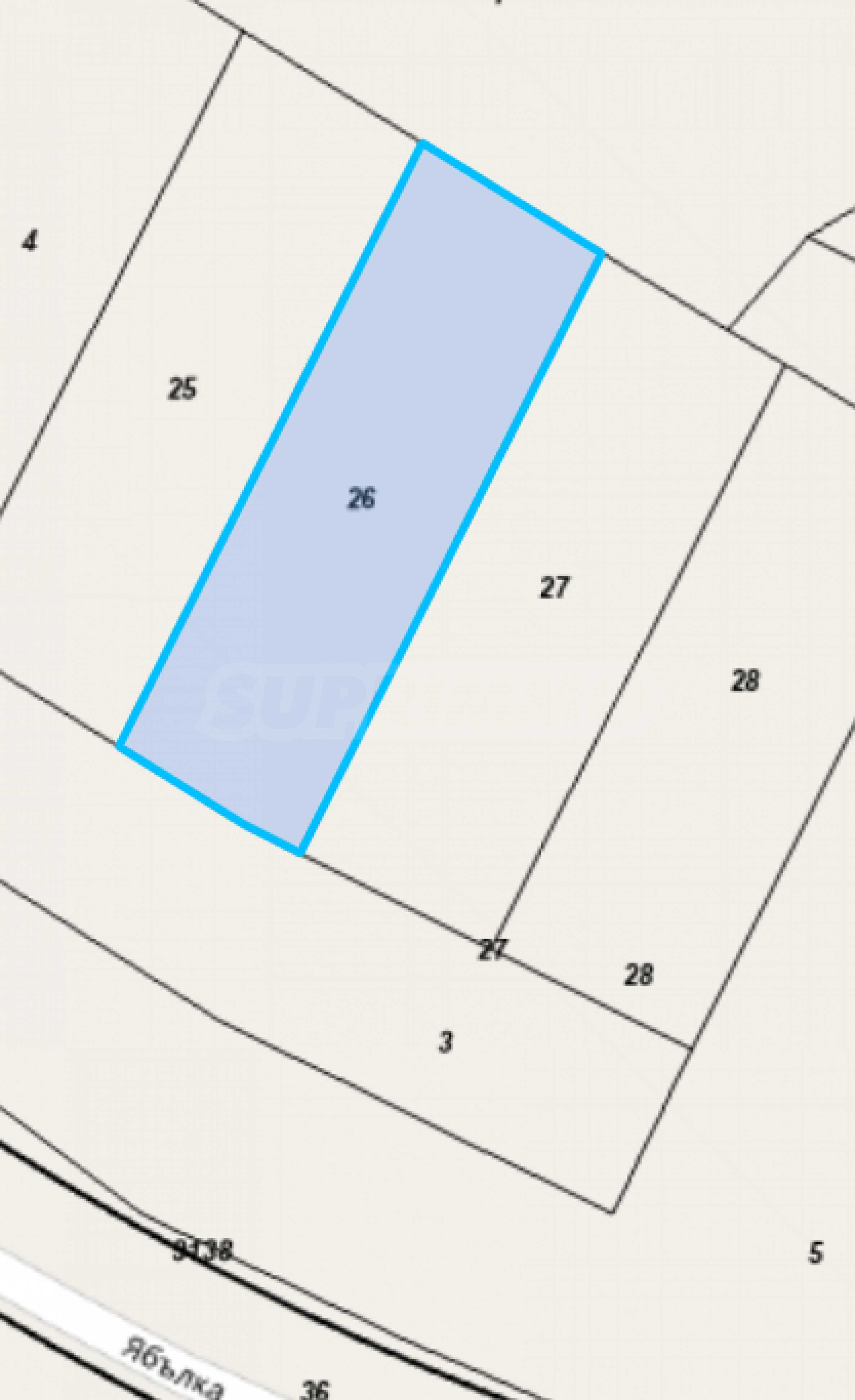 Представляем вам земельный участок площадью 1036 кв. метров. недалеко от улицы Ябалка в дачной зоне города Горна Баня.