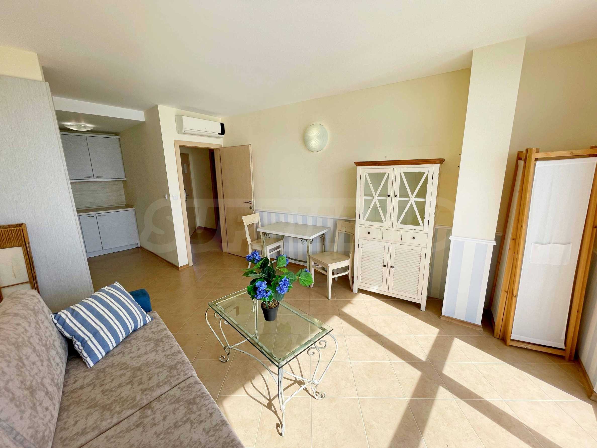 Представляем однокомнатную квартиру в закрытом жилом комплексе, расположенном на первой линии моря между Балчиком и Каварной, в районе Иканталака. Этот район богат природными достопримечательностями, архитектурными памятниками, полями для гольфа, СПА-комплексами и ресторанами. Прекрасное расположение в живописной бухте с пасторальными пейзажами, всего в 10 метрах от пляжа.