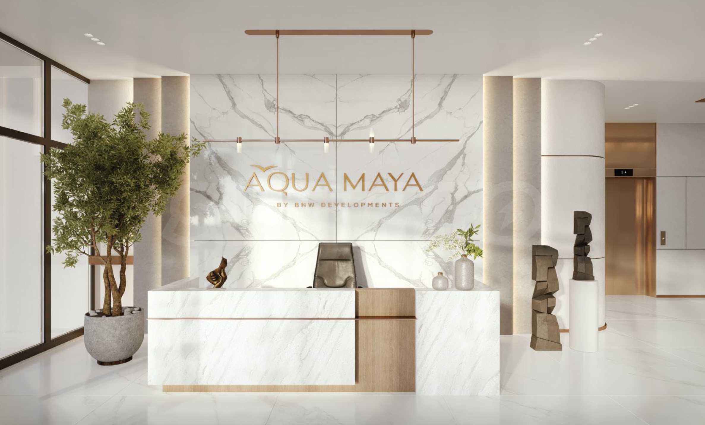 Aqua Maya — символ качества, роскоши и стиля. Десятиэтажное здание поражает своим элегантным обликом, вдохновлённым движением воды. Изогнутые линии, стеклянные балконы и белоснежные колонны делают здание одновременно современным и вневременным, а дополнительное озеленение добавляет свежести и красоты общему облику.