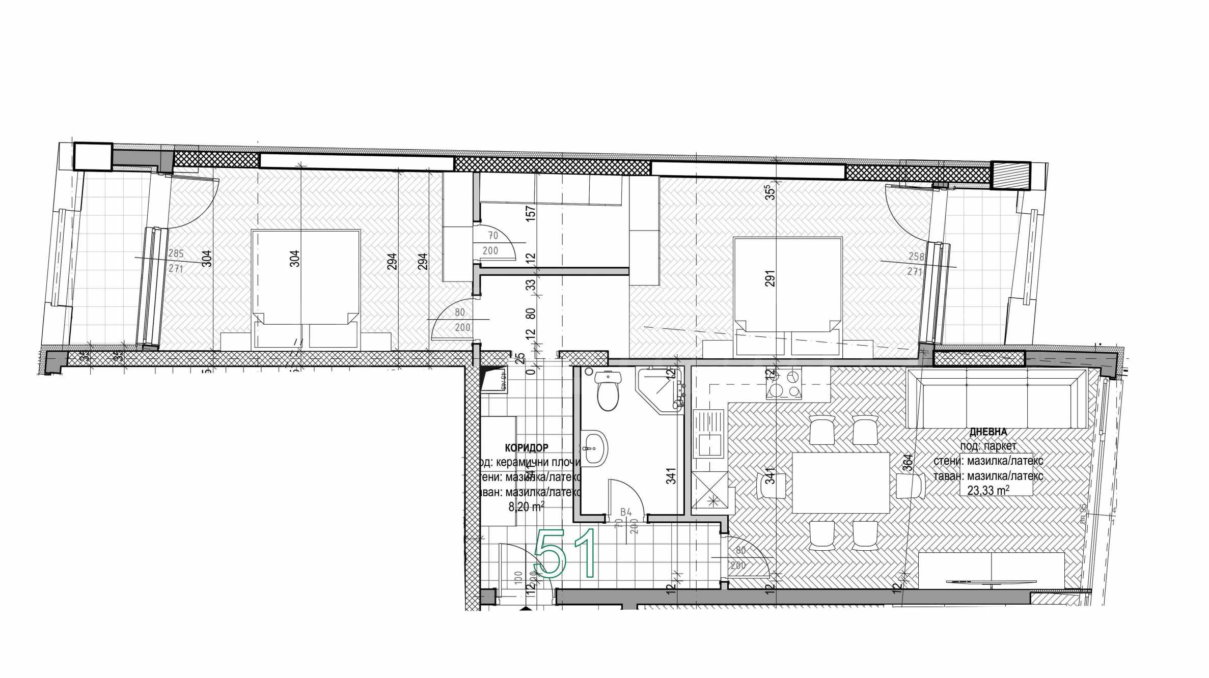 Квартира имеет двустороннюю ориентацию, что обеспечивает светлое пространство в течение всего дня и панорамный вид на Витошу и Балканские горы.