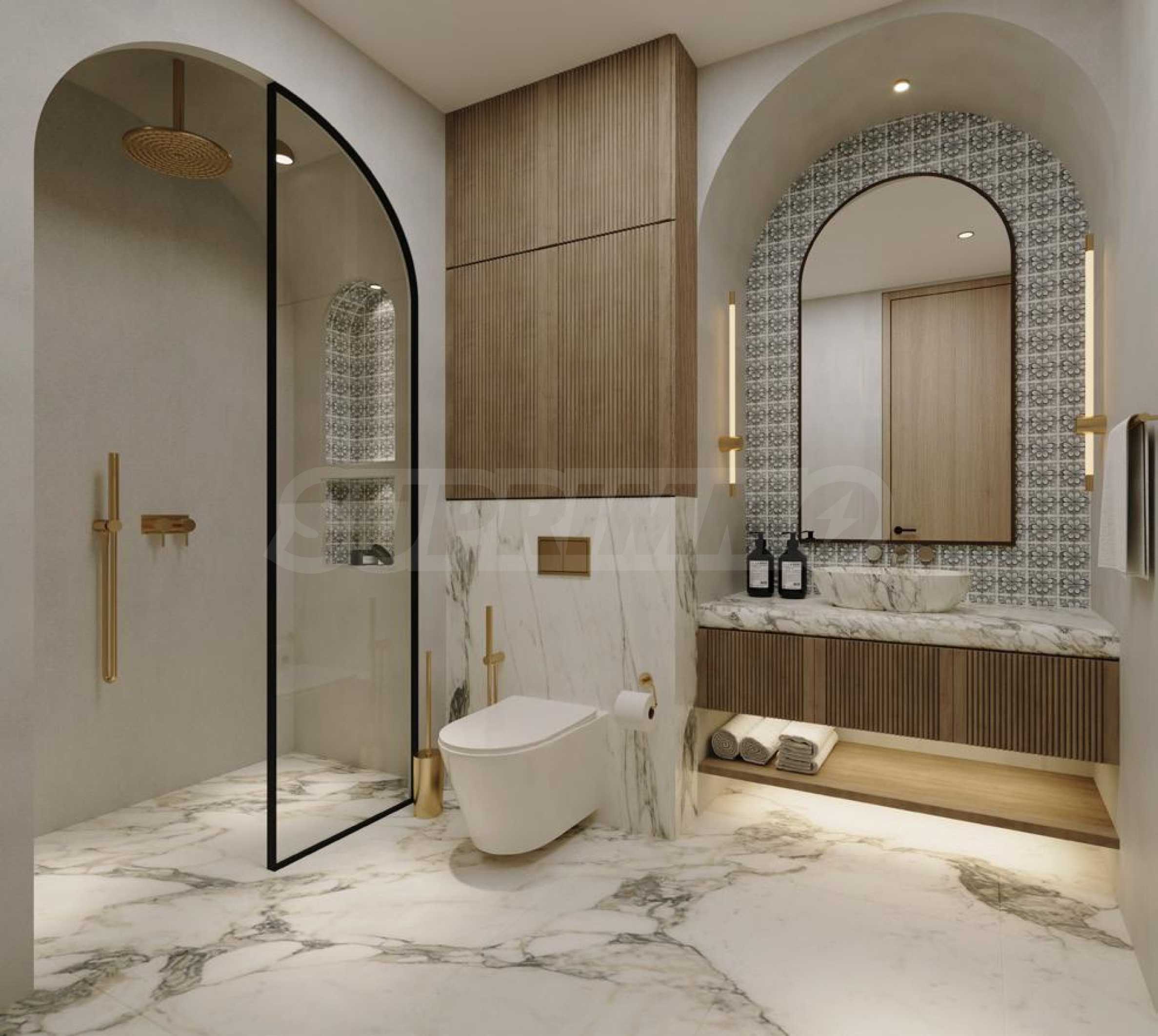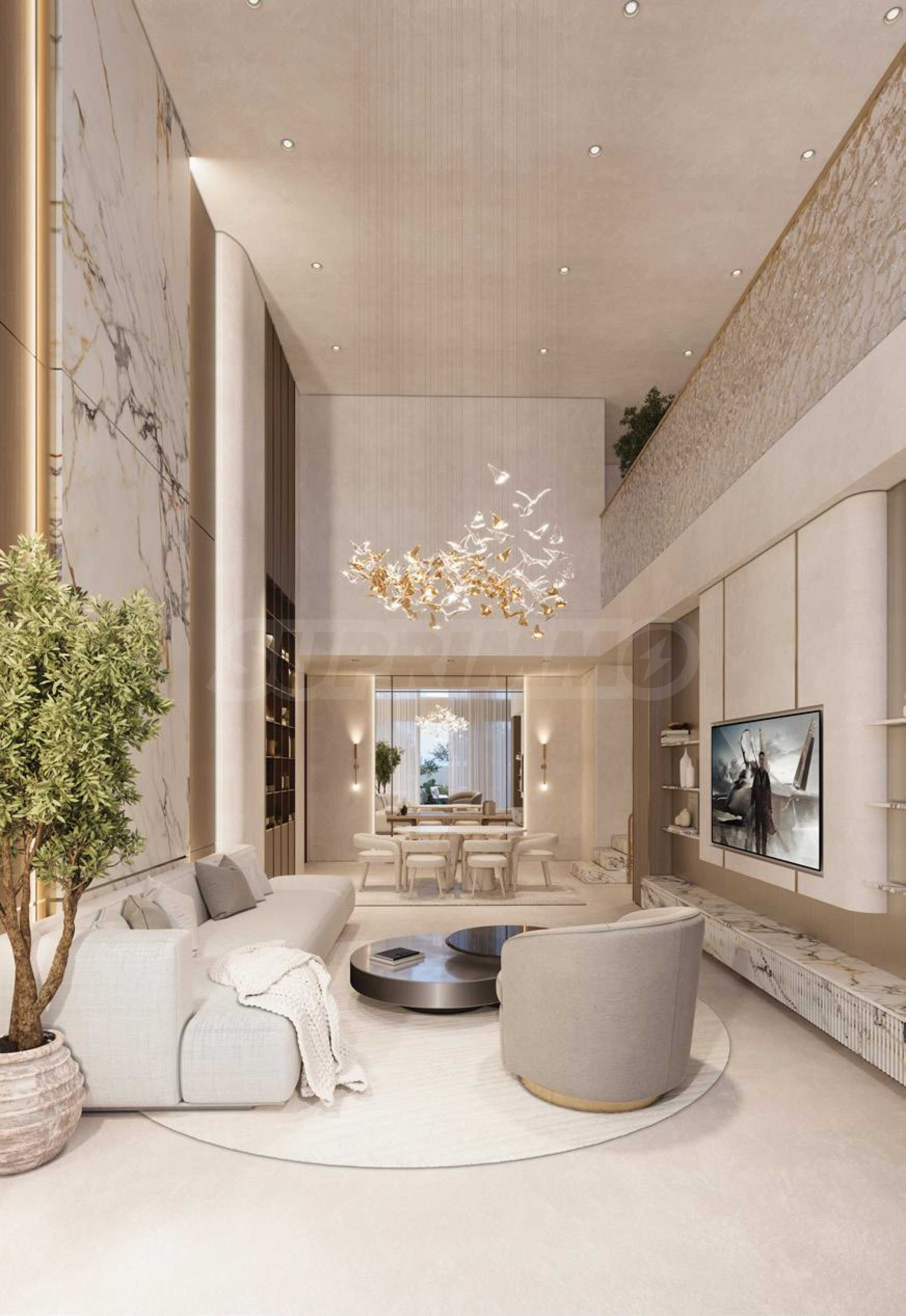 Резиденции полностью меблированы и оборудованы – от стильных кухонь до комфортных гостиных и элегантных спален – всё создано с чувством совершенства. В каждой спальне есть встроенный шкаф или гардеробная и собственная ванная комната, что обеспечивает уединение и комфорт. Индивидуально регулируемый климат-контроль в каждой комнате обеспечивает максимальный комфорт в соответствии с личными предпочтениями.