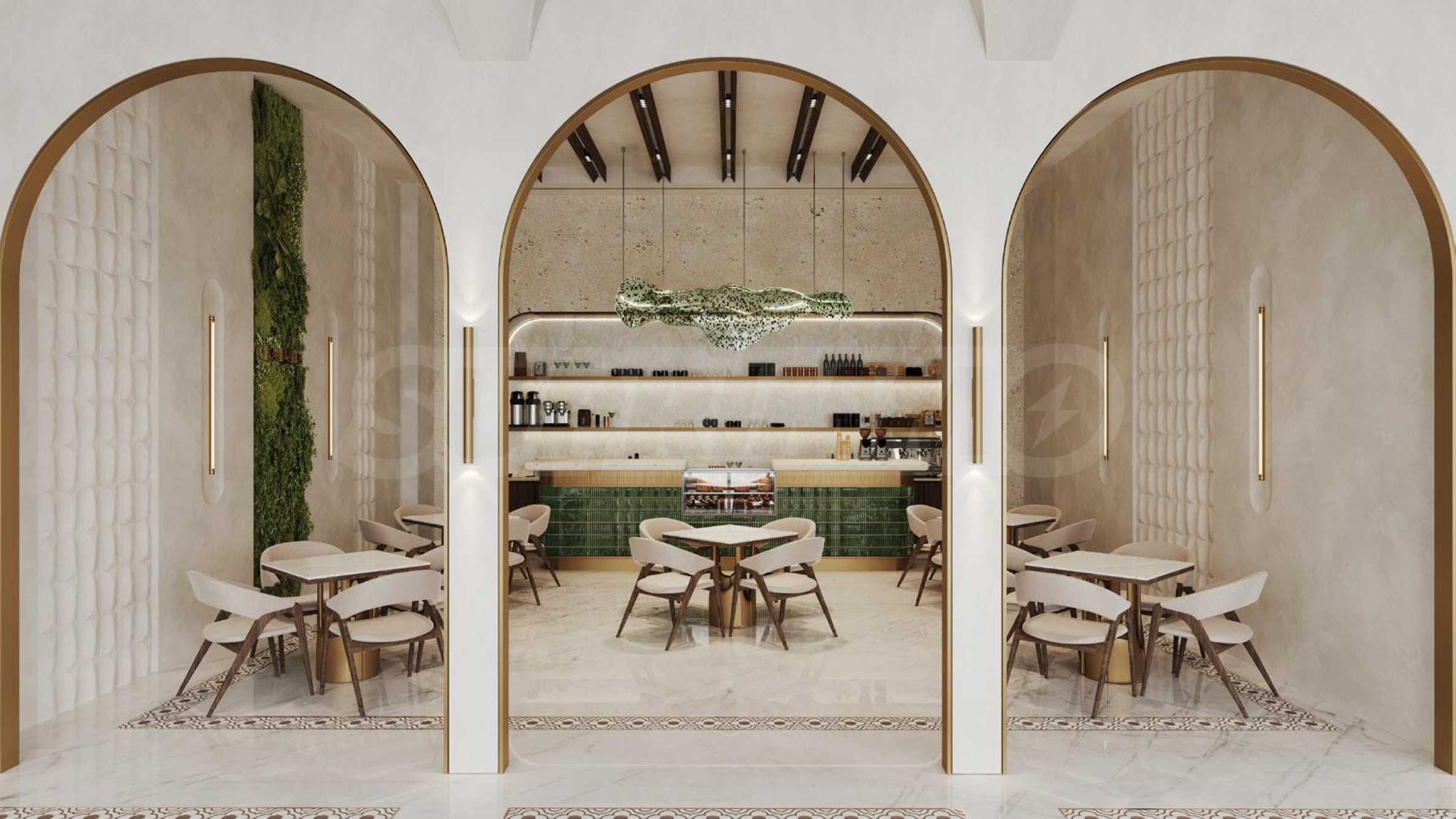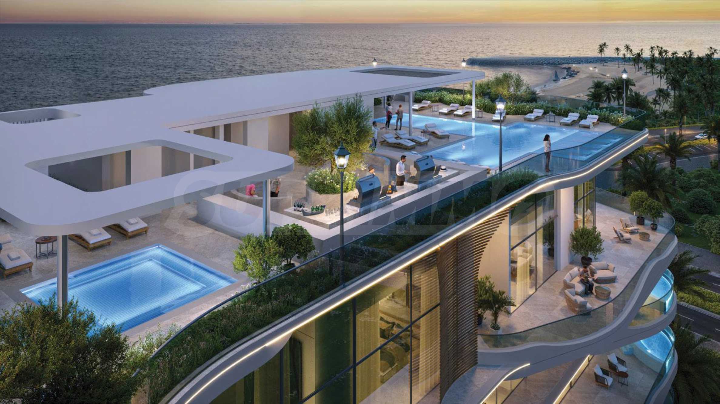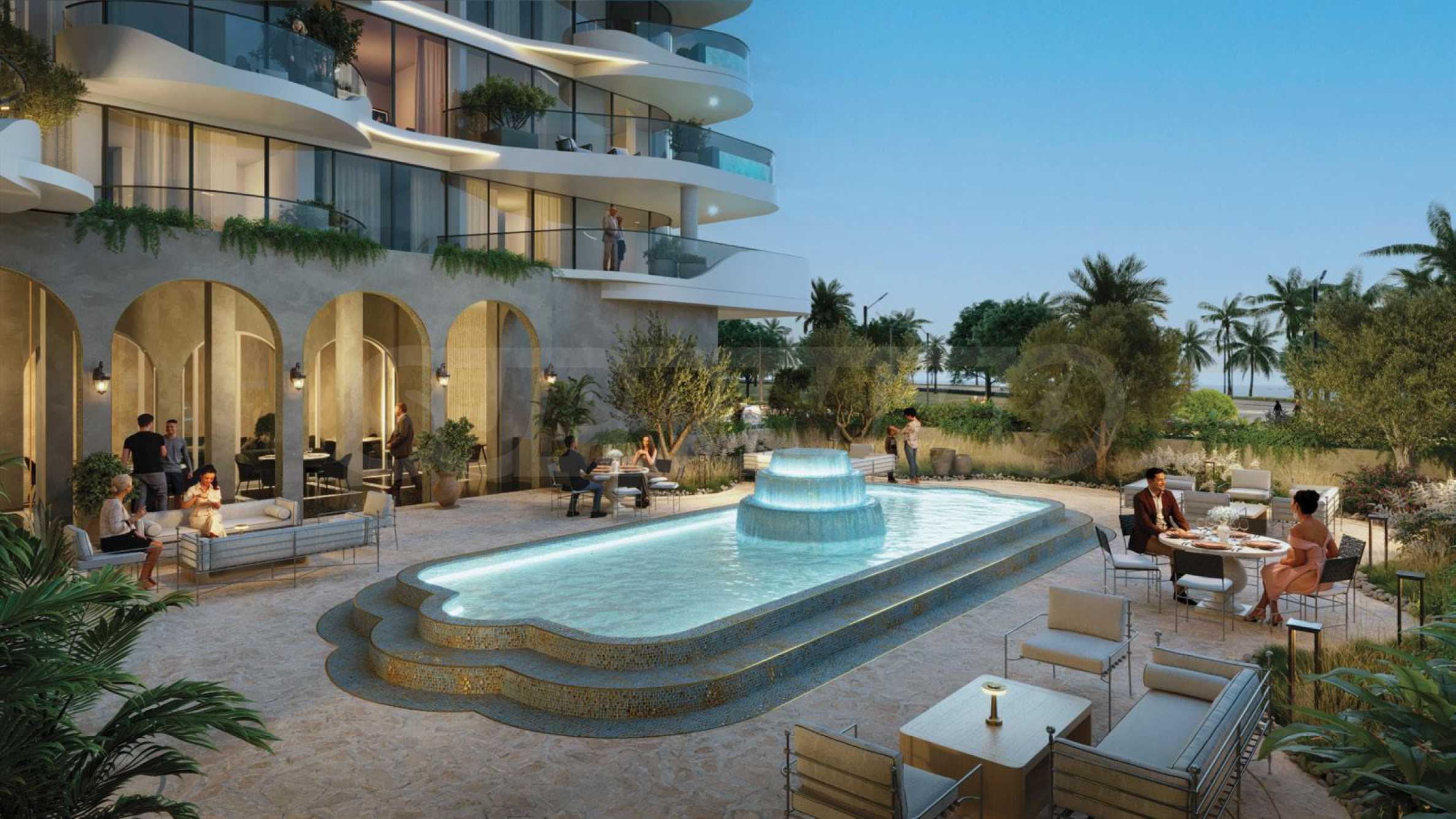 Жилой комплекс La Perla занимает 7 этажей, а его архитектура вдохновлена ласковыми волнами океана. Мягкие перепады высот, плавные линии и обилие стекла – элегантный облик здания обусловлен дальновидным мышлением, использованием высококачественных материалов и вниманием к каждой детали. Вестибюль здания встречает вас высокими потолками и элегантной меблировкую, а также стойкой регистрации, где вы можете обратиться за помощью или обслуживанием к отзывчивому персоналу La Perla. Здесь же находится вход в чудесный сад, где есть зоны для отдыха и релаксации в тени, а великолепный фонтан не только создает романтическую атмосферу, но и дарит прохладу в жаркие дни. К услугам жильцов великолепный бассейн с шезлонгами и зонтиками – идеальное место как для купания, так и для отдыха на солнце. В здании также есть замечательный ресторан, полностью оборудованный тренажерный зал и СПА-зона с джакузи, паровой баней и сауной – удобства, которые превратят каждый день в незабываемое событие. Для самых маленьких жильцов предусмотрены возможности для развлечений: детский бассейн рядом со взрослым бассейном, а также дополнительные игровые площадки.