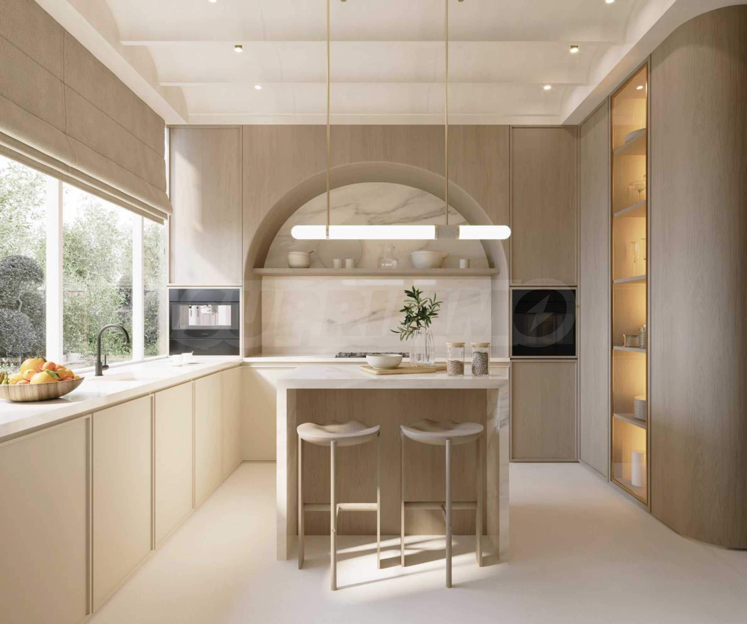 Интерьеры продуманы до мелочей — высокие потолки и панорамные окна от пола до потолка создают ощущение света и простора, а морская панорама становится естественным фоном для вашей повседневной жизни.