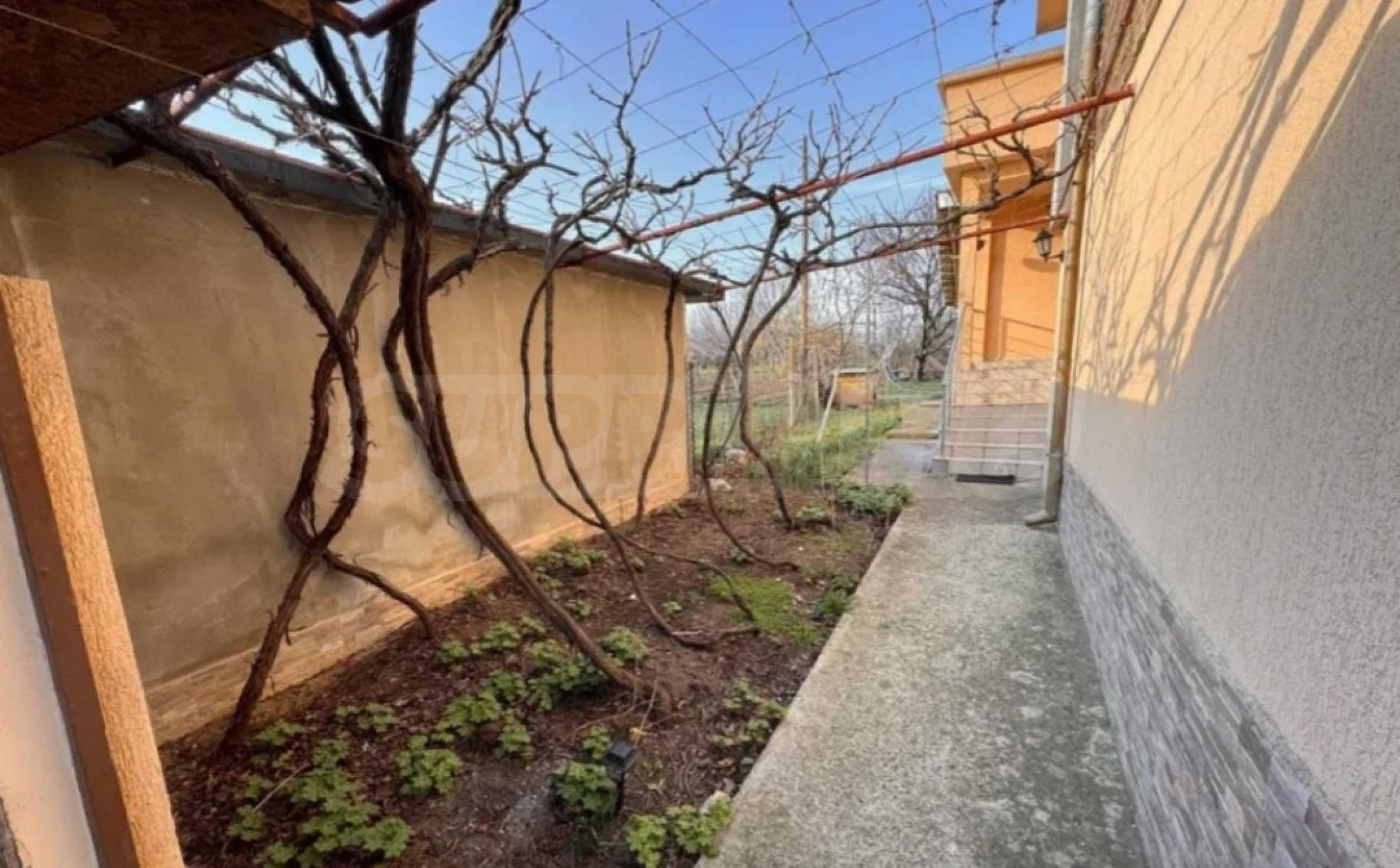 Двор площадью 300 кв. м благоустроен фруктовыми деревьями и цветами, а также установлена солнечная система нагрева воды, обеспечивающая комфорт и экономию. Дом имеет Акт 16 от 2010 года, находится в отличном состоянии и сочетает в себе комфорт, простор и тихую загородную обстановку, находясь при этом в непосредственной близости от городской инфраструктуры.