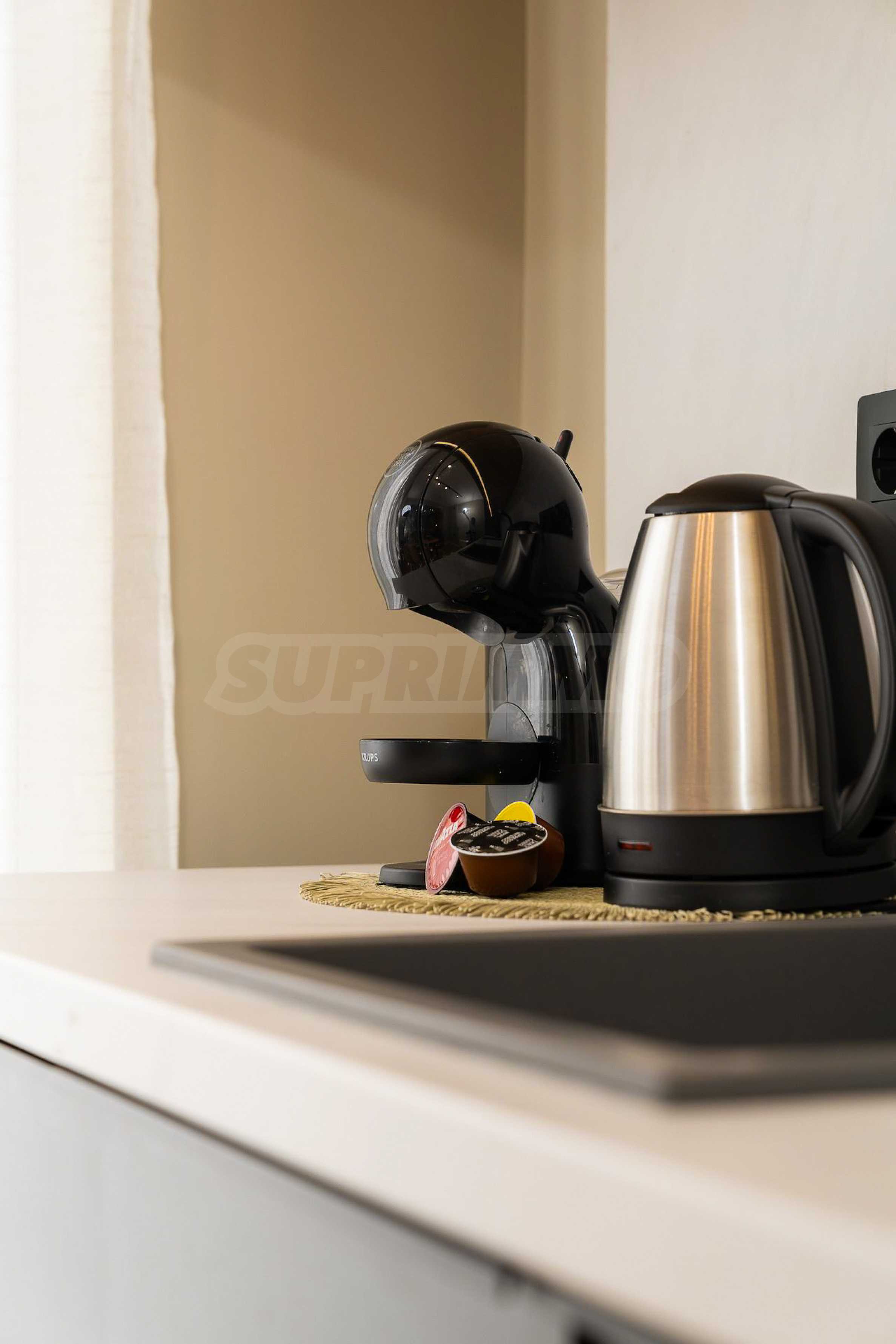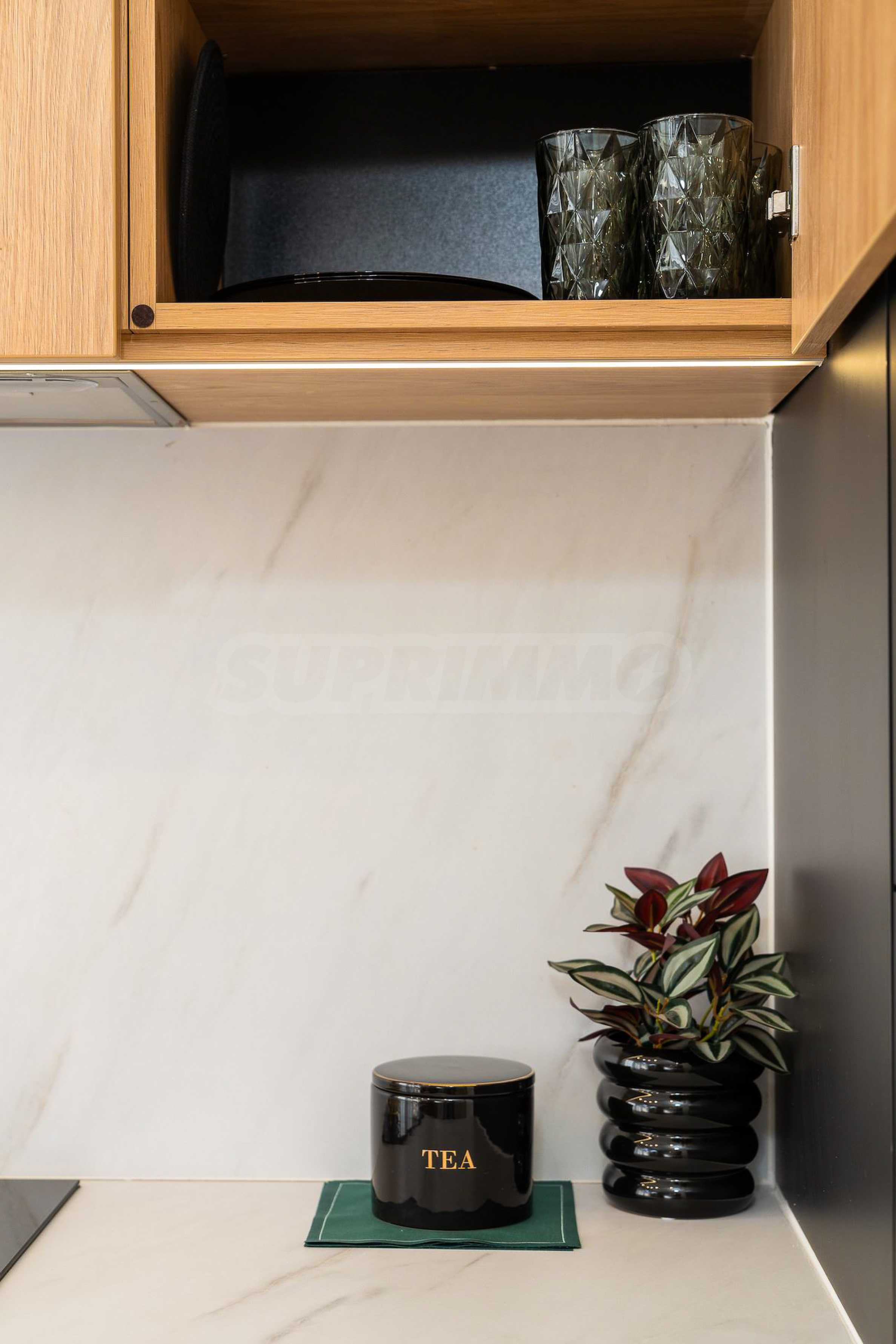 • Полностью оборудованная кухня: духовка, плита, посудомоечная машина, стиральная машина с сушилкой, холодильник с морозильной камерой, вытяжка, посуда и принадлежности;