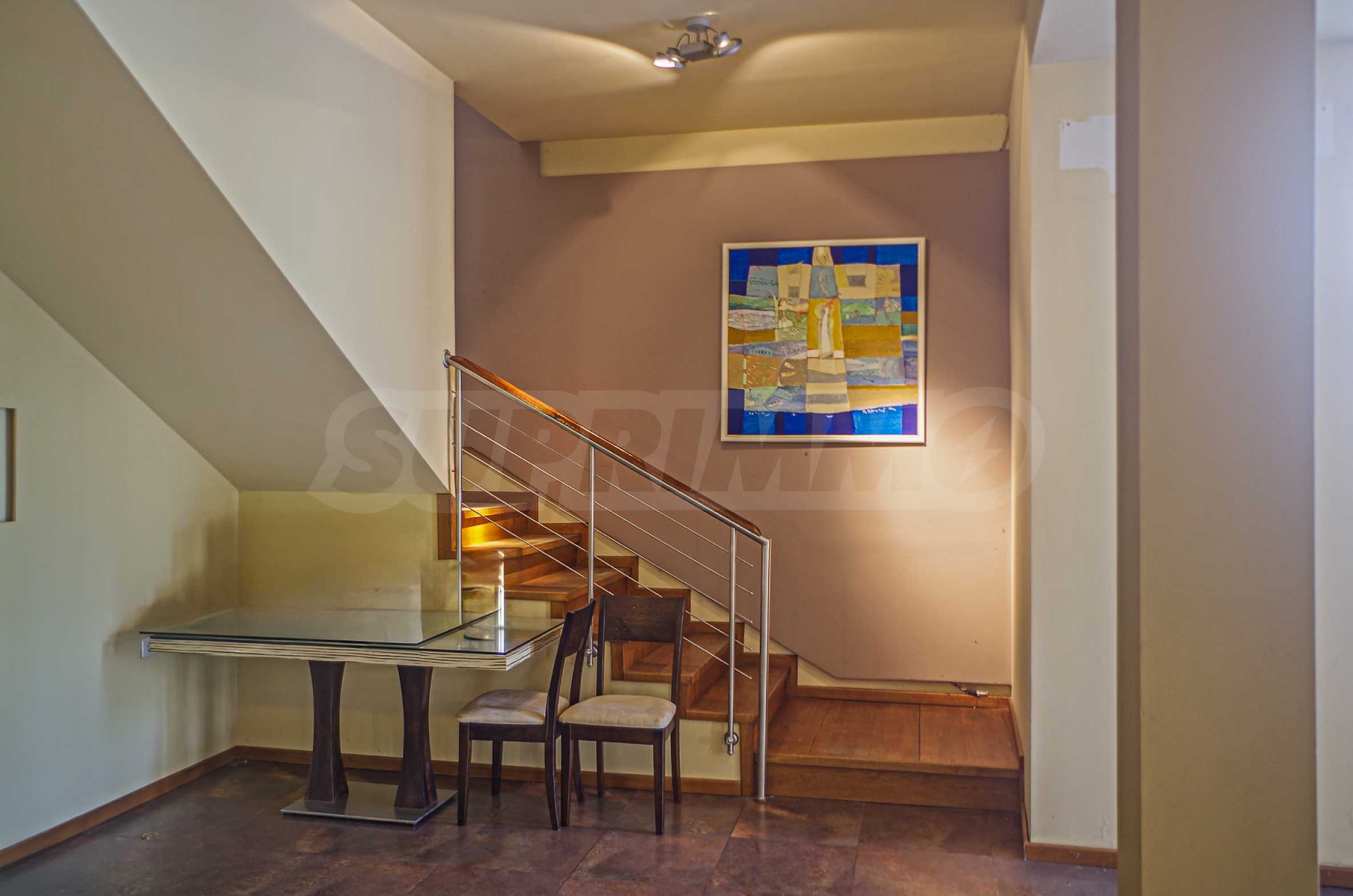 - Первый этаж: просторная и светлая общая комната, предлагающая достаточно места для различных конфигураций и распределений рабочих зон. Полы выложены высококачественной терракотой.