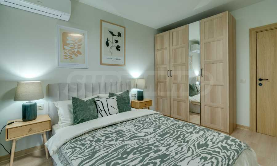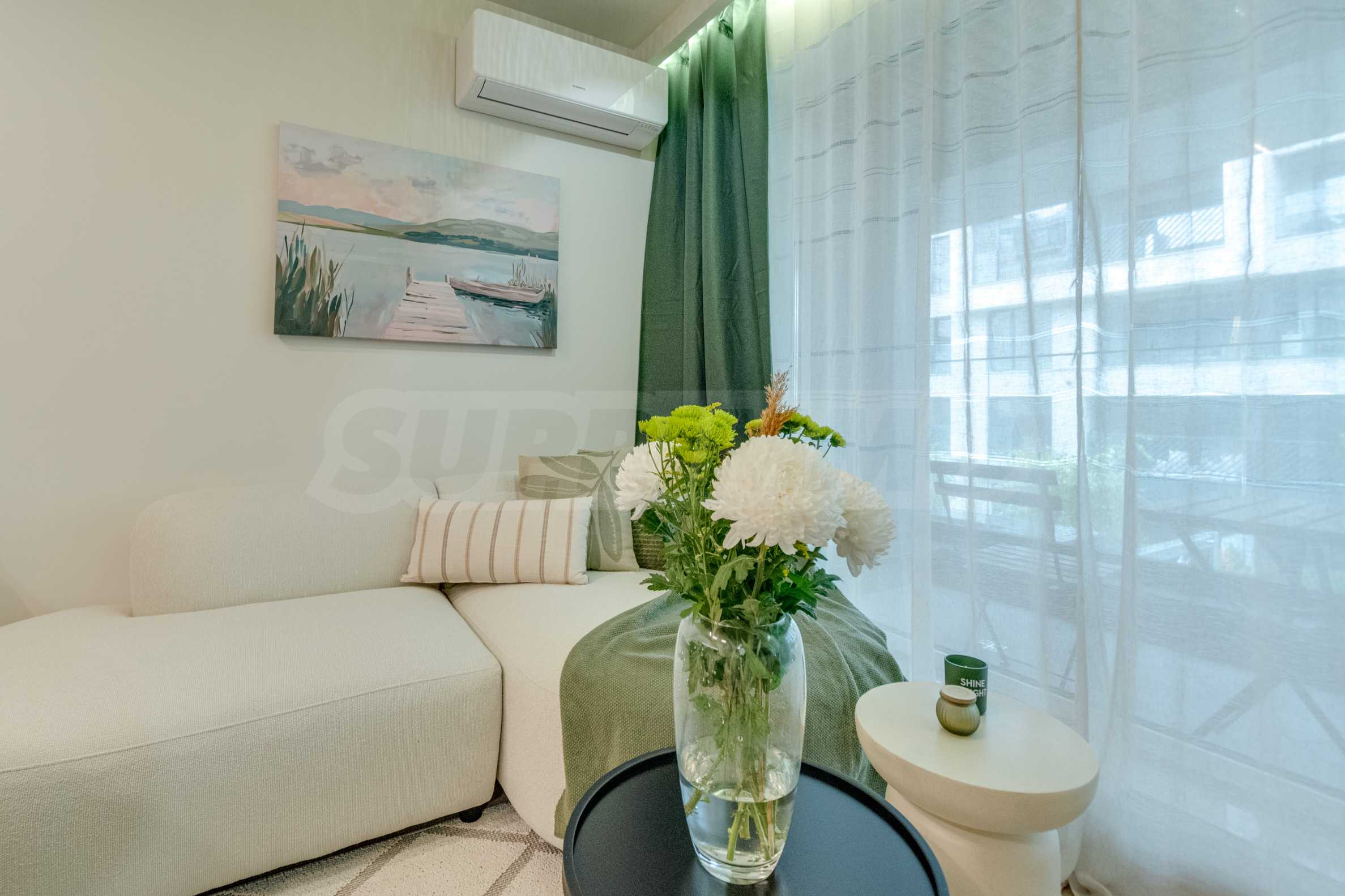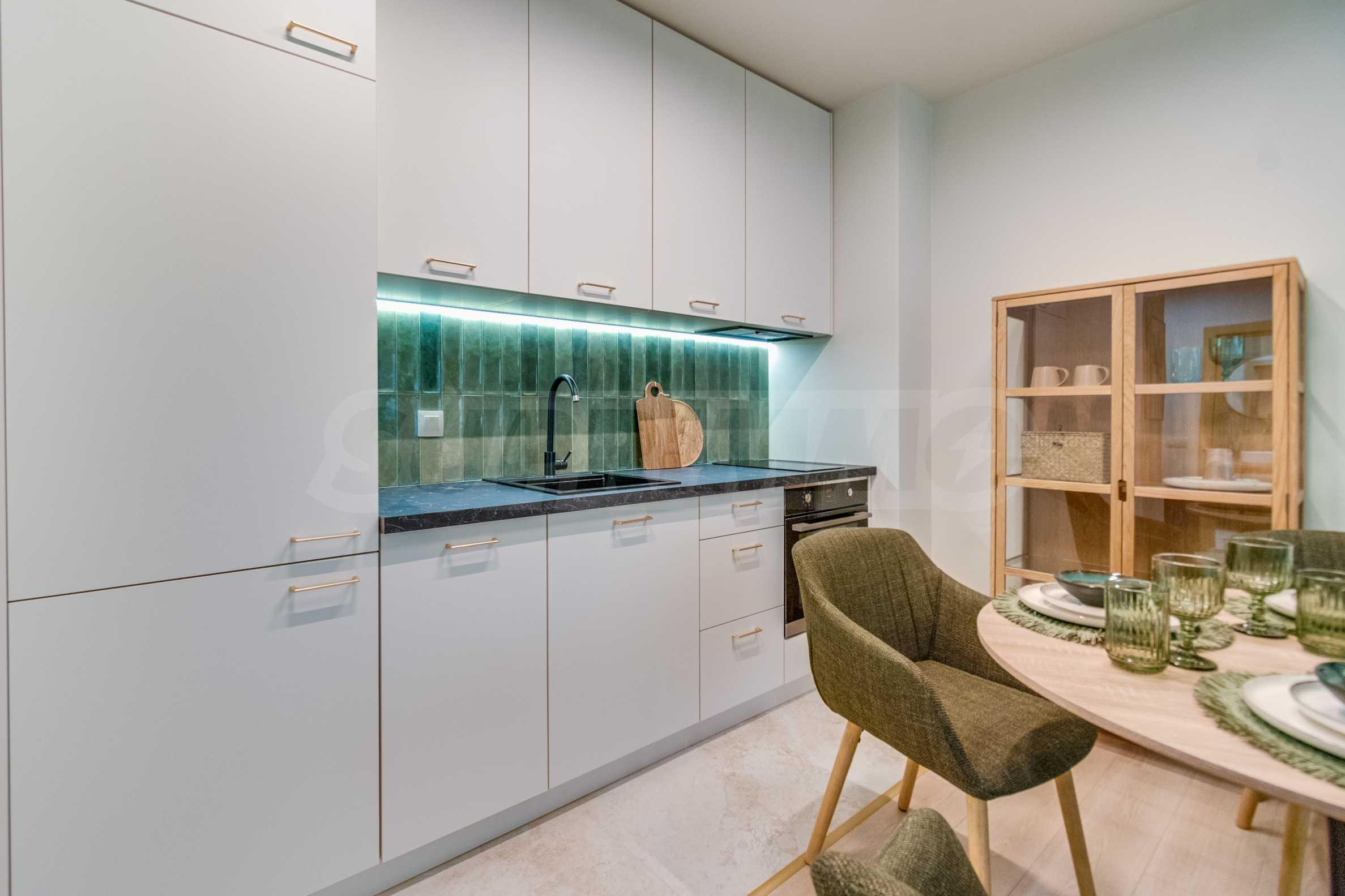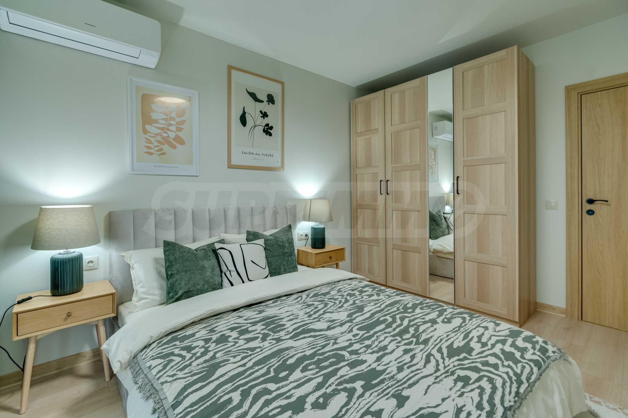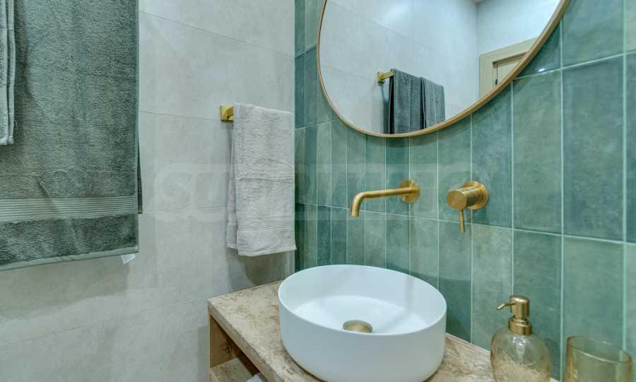 Квартира полностью отделана и обставлена высококачественной меблировкую и техникой, подобранной с вниманием к каждой детали.