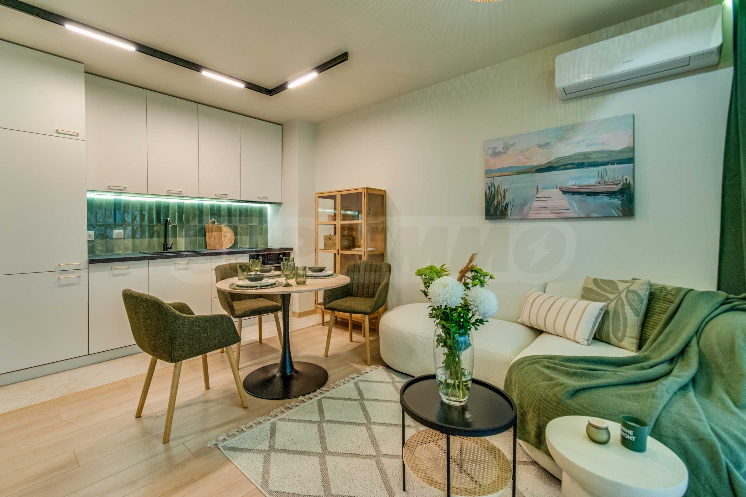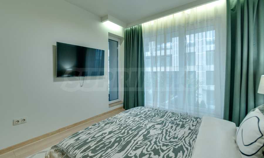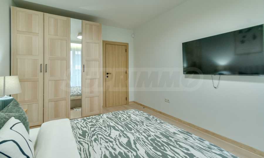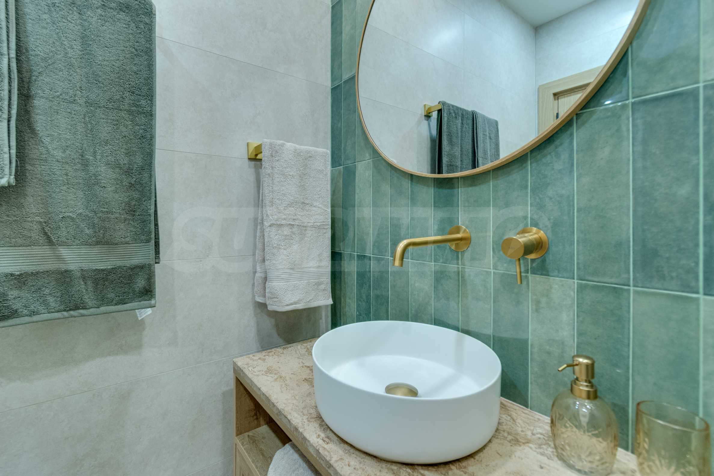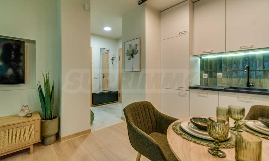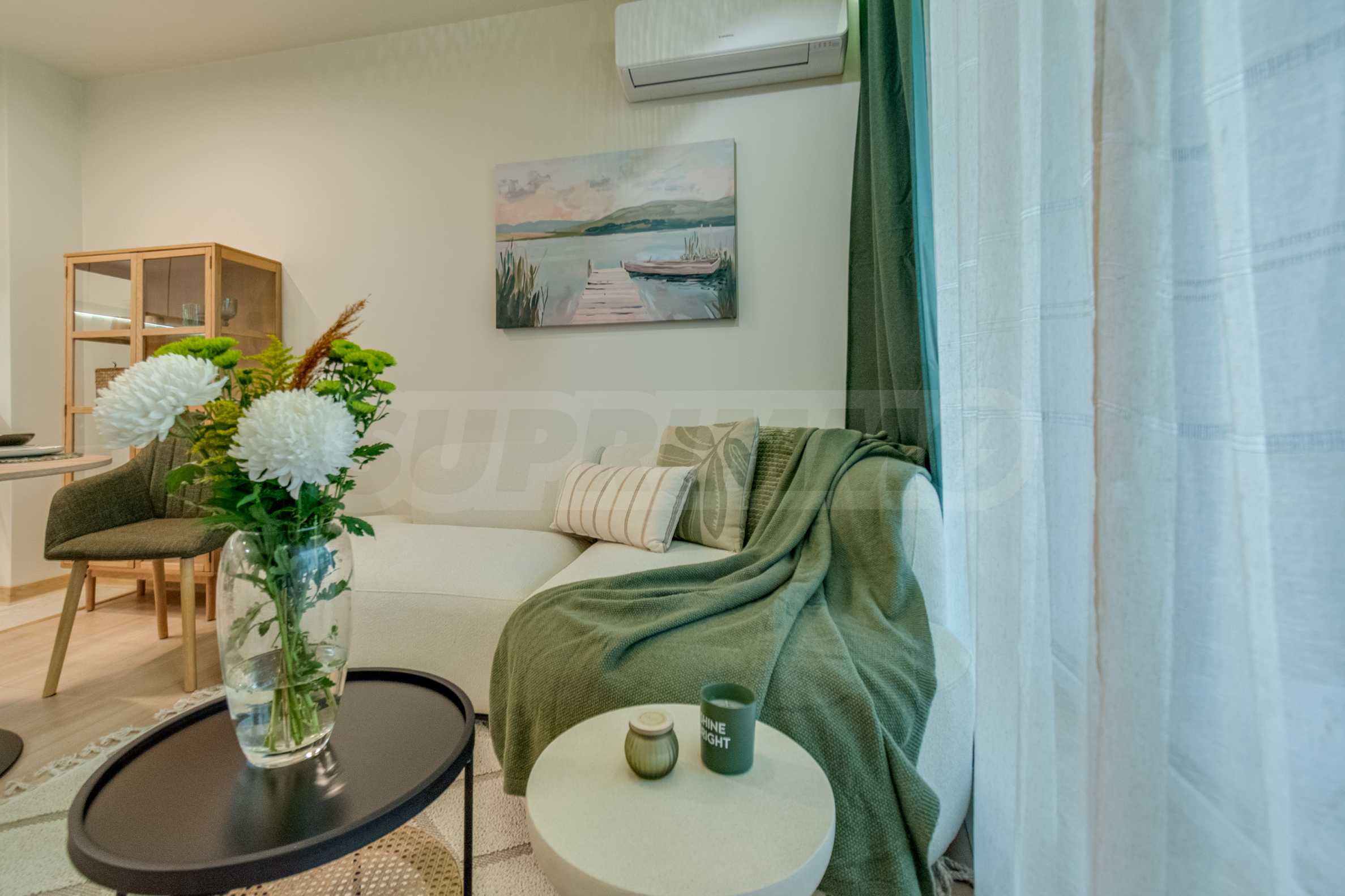 Квартира полностью отделана и обставлена высококачественной меблировкую и техникой, подобранной с вниманием к каждой детали.