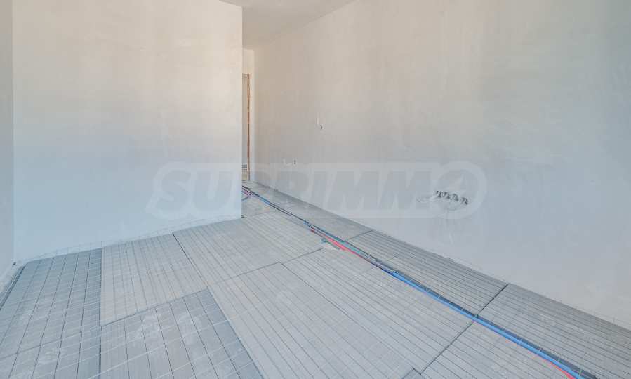 Отопление – газовый тёплый пол. Имеются выводы для установки радиаторов. Квартира сдаётся в соответствии с Болгарским национальным строительным кодексом – штукатурка и стяжка.