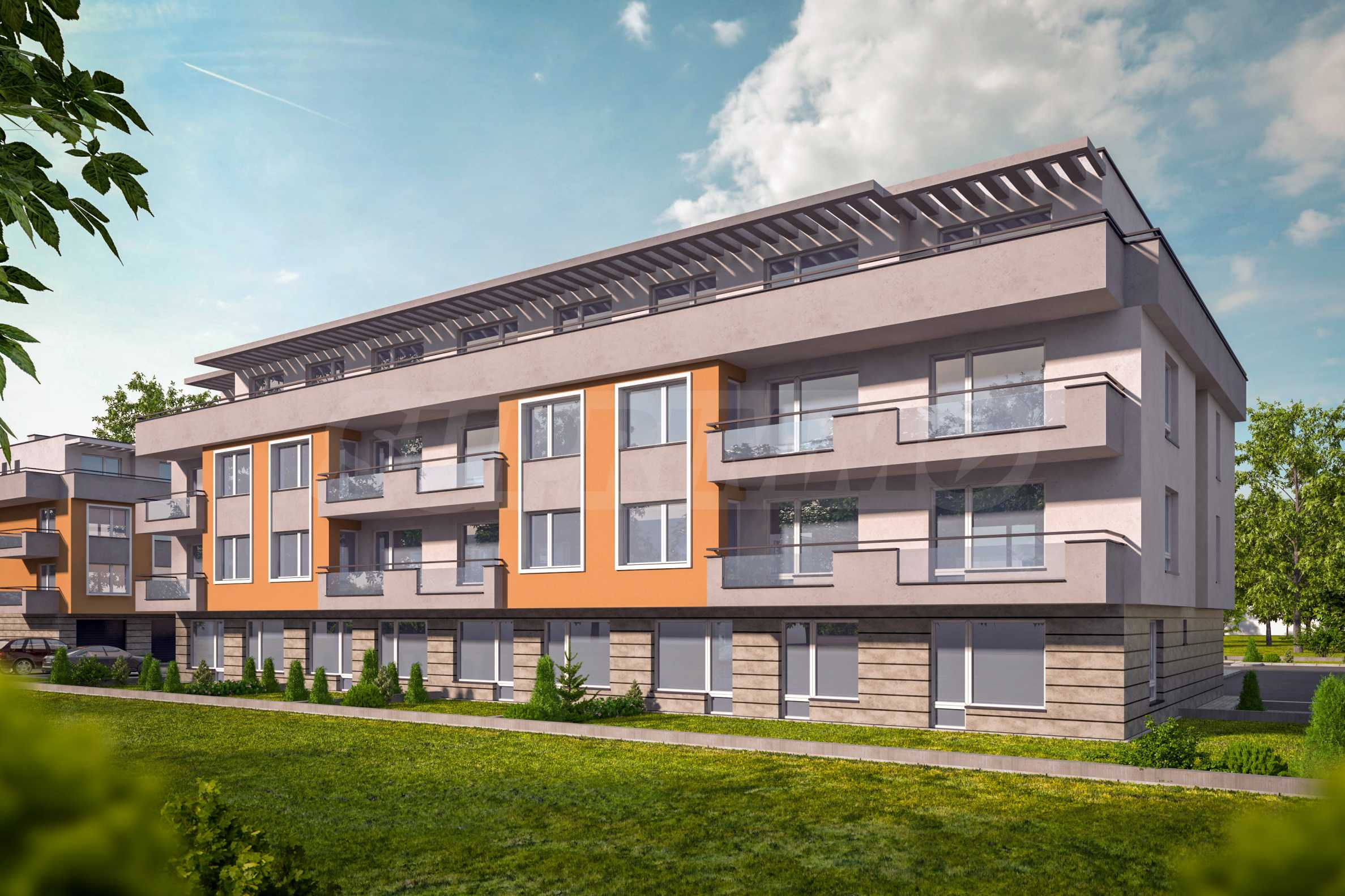 Комплекс состоит из 5 отдельных жилых зданий, каждое из которых имеет цокольный этаж и 3 жилых этажа с лифтом. Предлагаются квартиры различной площади: однокомнатные, двухкомнатные и трехкомнатные. Территория вокруг зданий обустроена с учетом парковочных мест и озеленения.