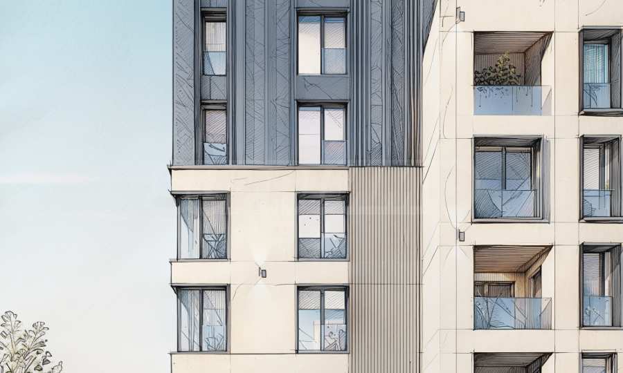 Проект был задуман с целью не быть похожим ни на что другое в этом районе. Фасад вентилируемый, с архитектурными деталями, которые будут актуальны даже через десять лет.