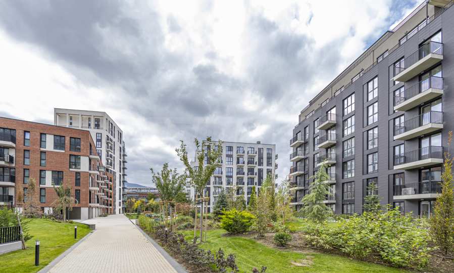 Здесь есть зеленые парковые зоны, куда не могут въехать автомобили и мотоциклы, а также детские игровые площадки.