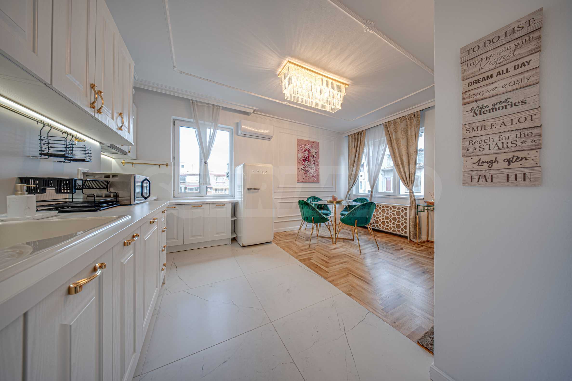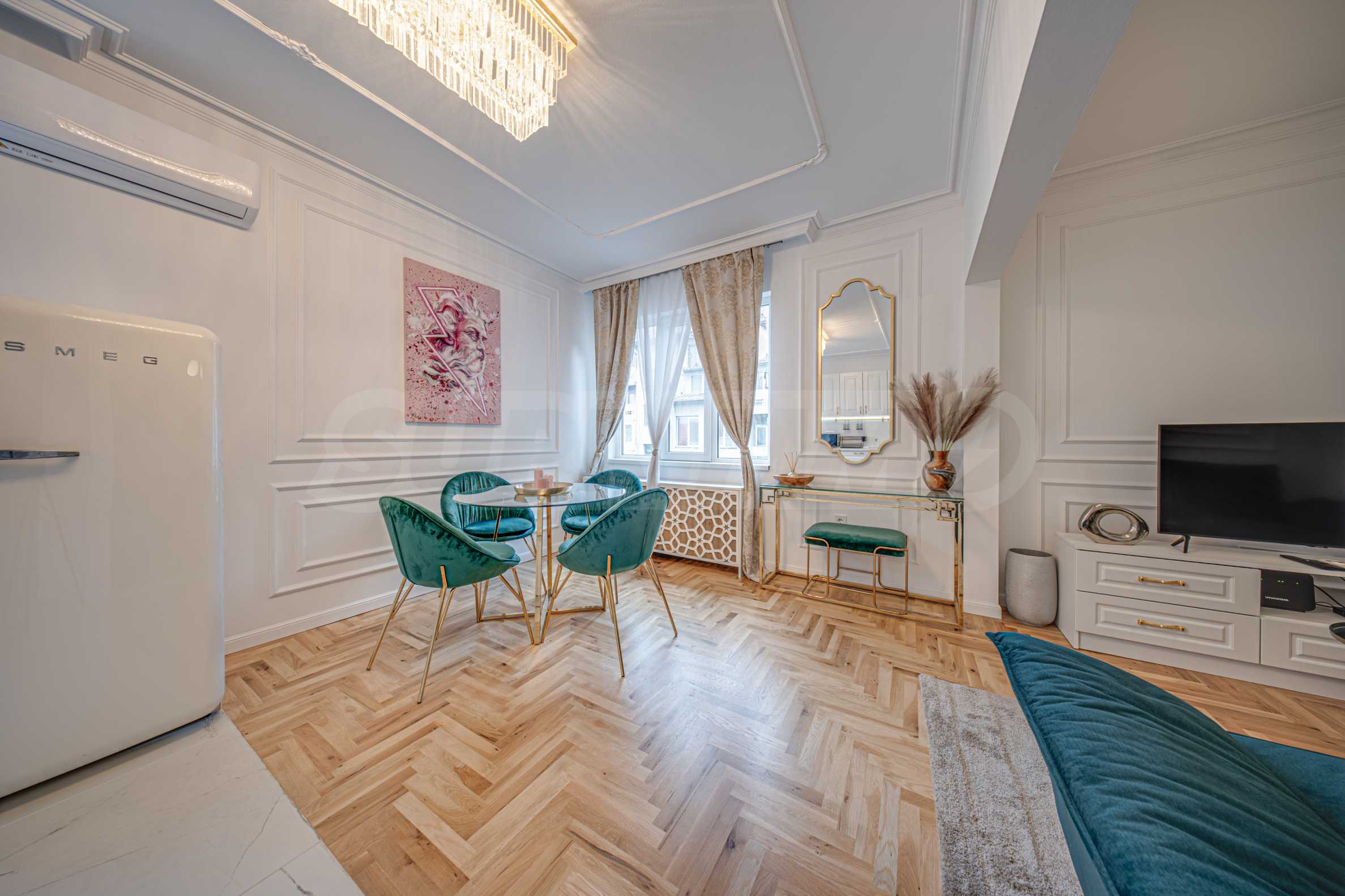 Двухкомнатная квартира с классическим интерьером на улице Неофита Рильского в отреставрированном здании с лифтом, построенном в 1938 году. Расположенная в самом центре столицы, квартира имеет удобное расположение, обеспечивающее всё необходимое для комфортной повседневной жизни. Широкие и оживленные бульвары, такие как бульвар Васила Левского и бульвар Патриарха Евтимия, обеспечивают удобный доступ ко многим важным точкам города. Рядом также находится станция метро «НДК».