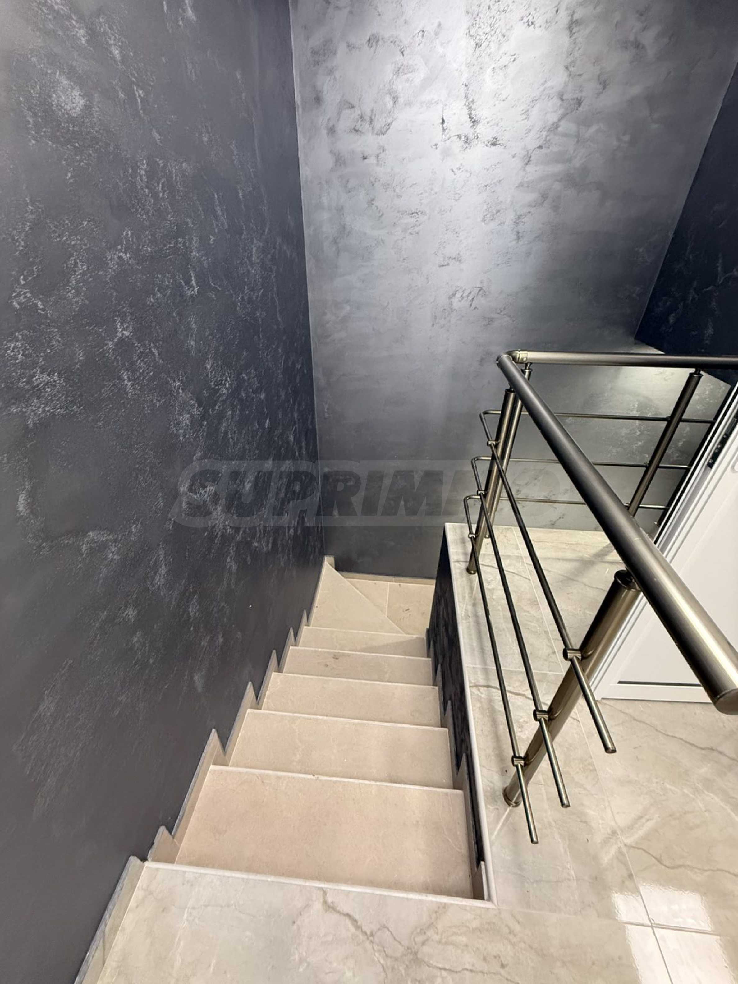 Площадь первого этажа составляет 45 кв. м. Полы отделаны терракотовой плиткой, стены отделаны декоративной штукатуркой. Установлены окна ПВХ, обеспечивающие хорошую теплоизоляцию и хорошее освещение.