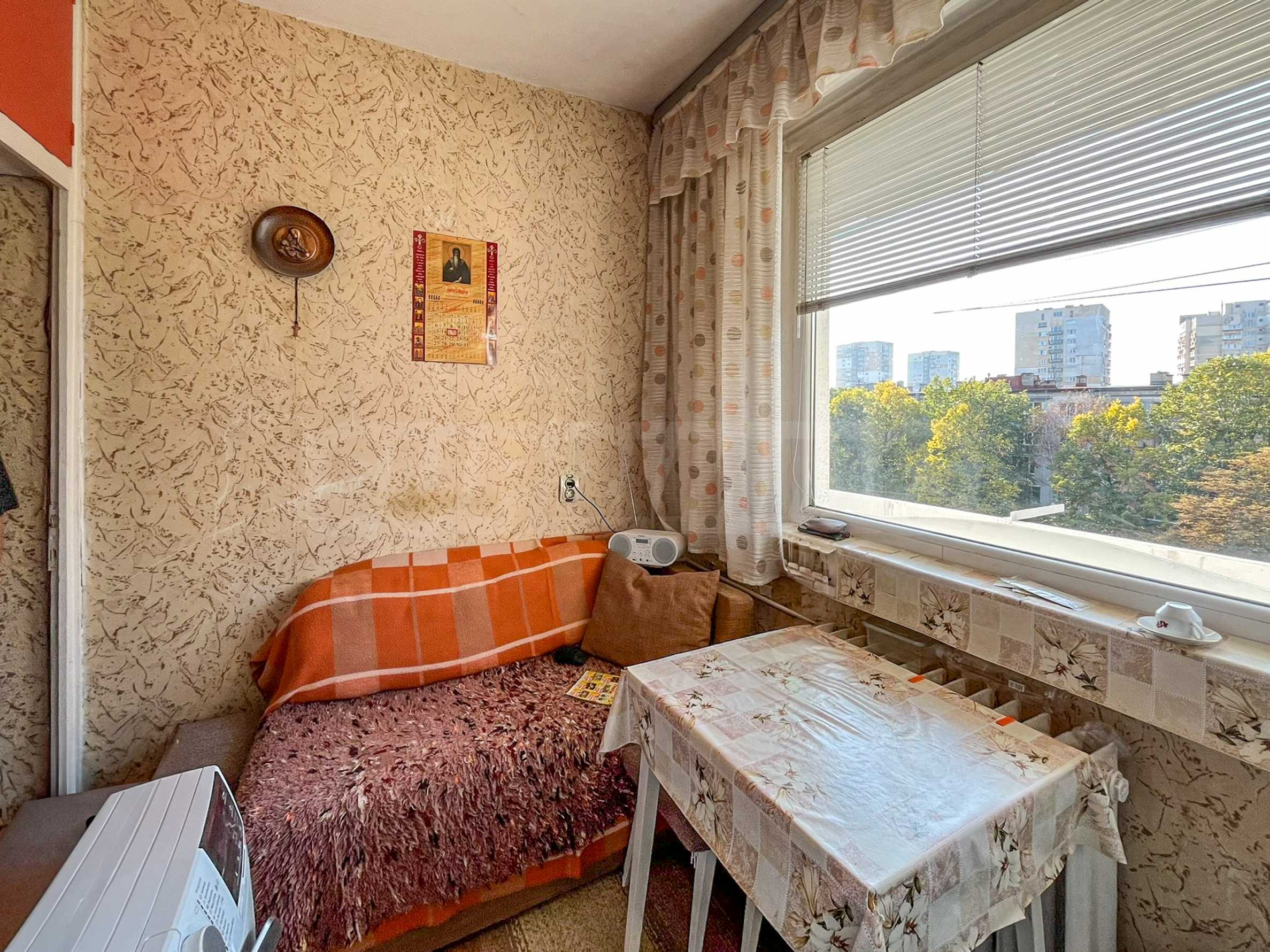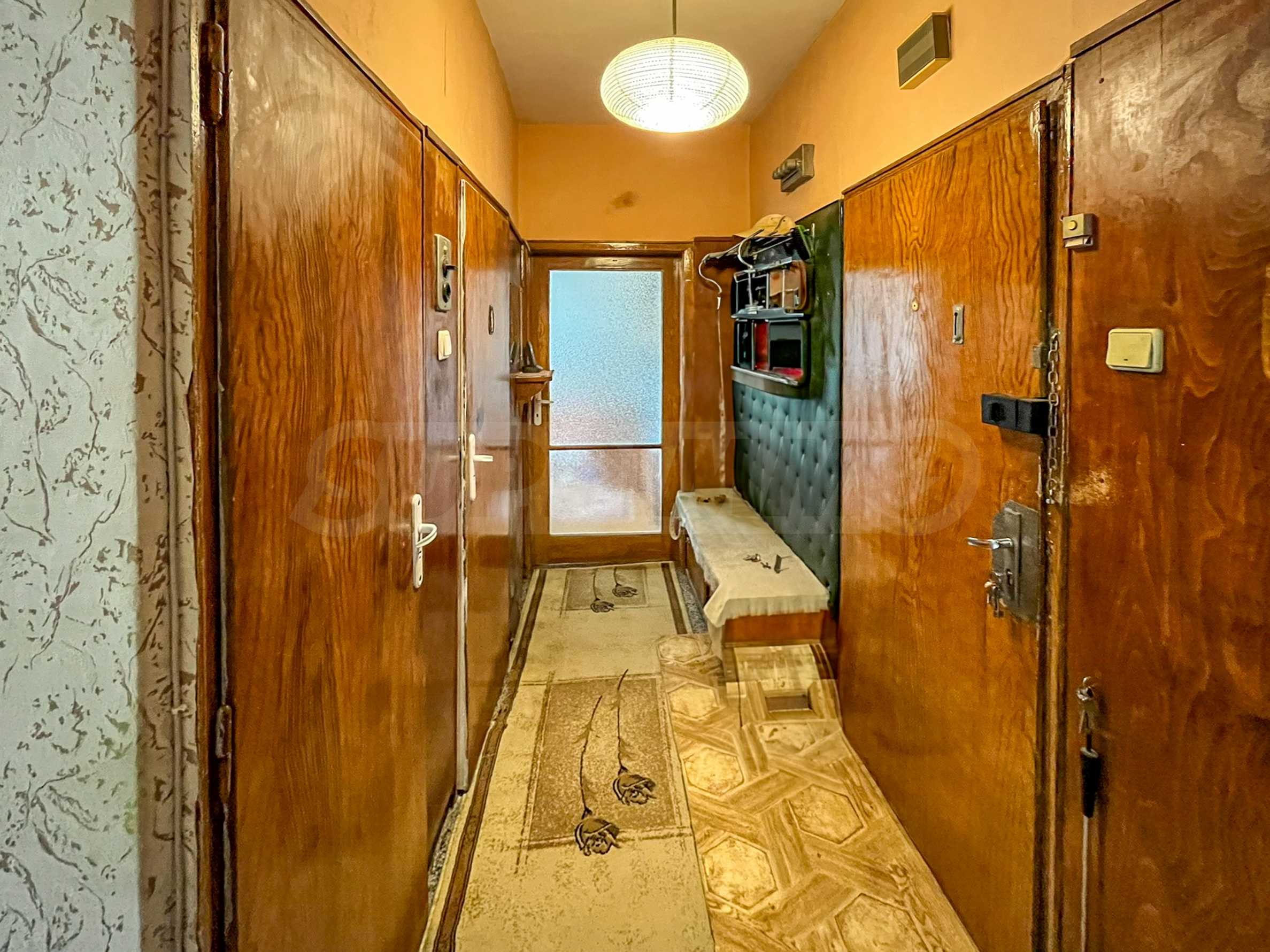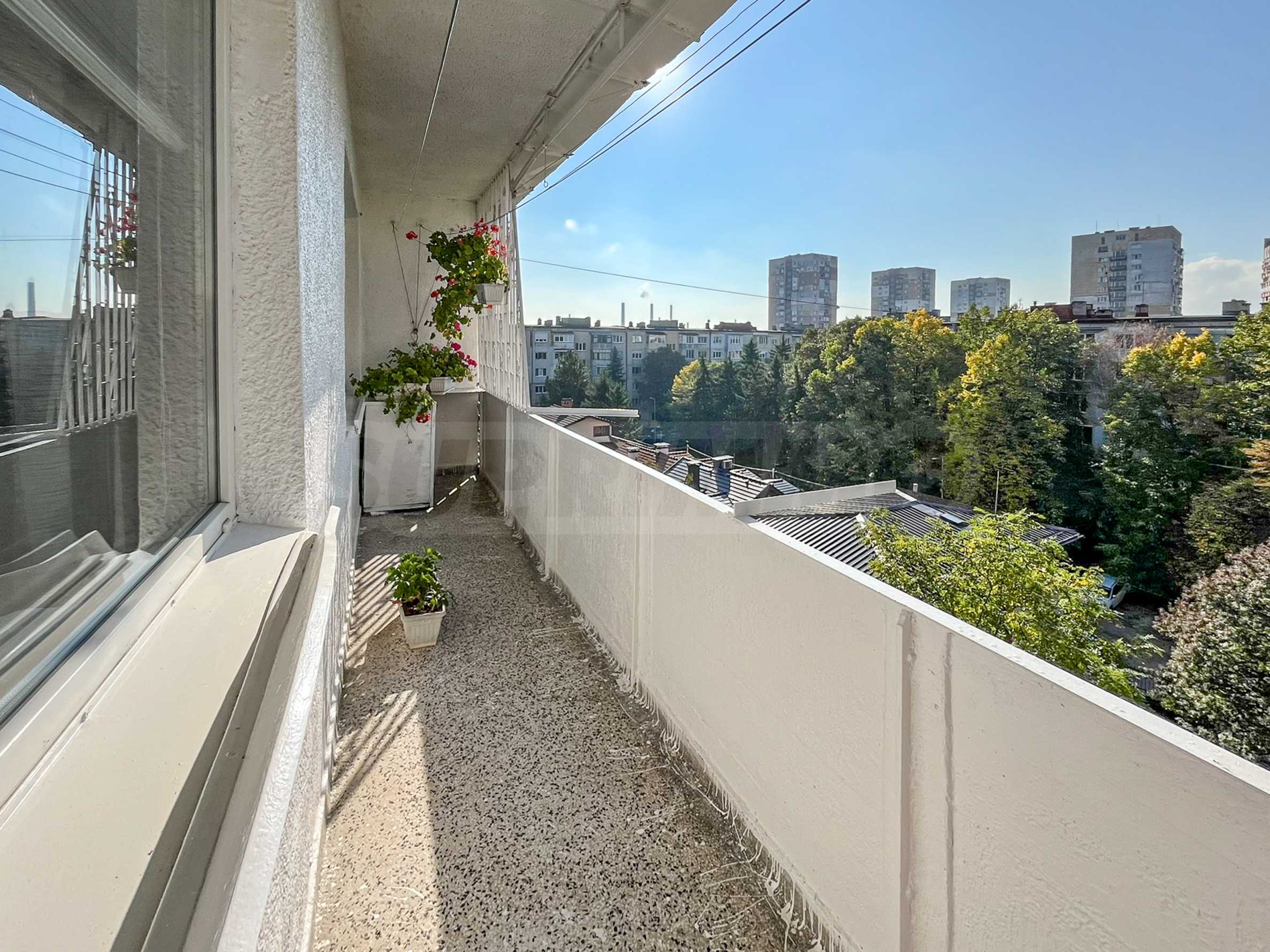 Площадь квартиры составляет 63 кв. м. Она состоит из гостиной, спальни, кухни, ванной комнаты и туалета, а также имеет подвал. Окна выходят на юг, что обеспечивает отличное естественное освещение и панорамный вид на гору Витоша. Зимой в квартире тепло, а расходы на отопление невысокие. Места общего пользования содержатся в хорошем состоянии. Вокруг здания есть бесплатная парковка.