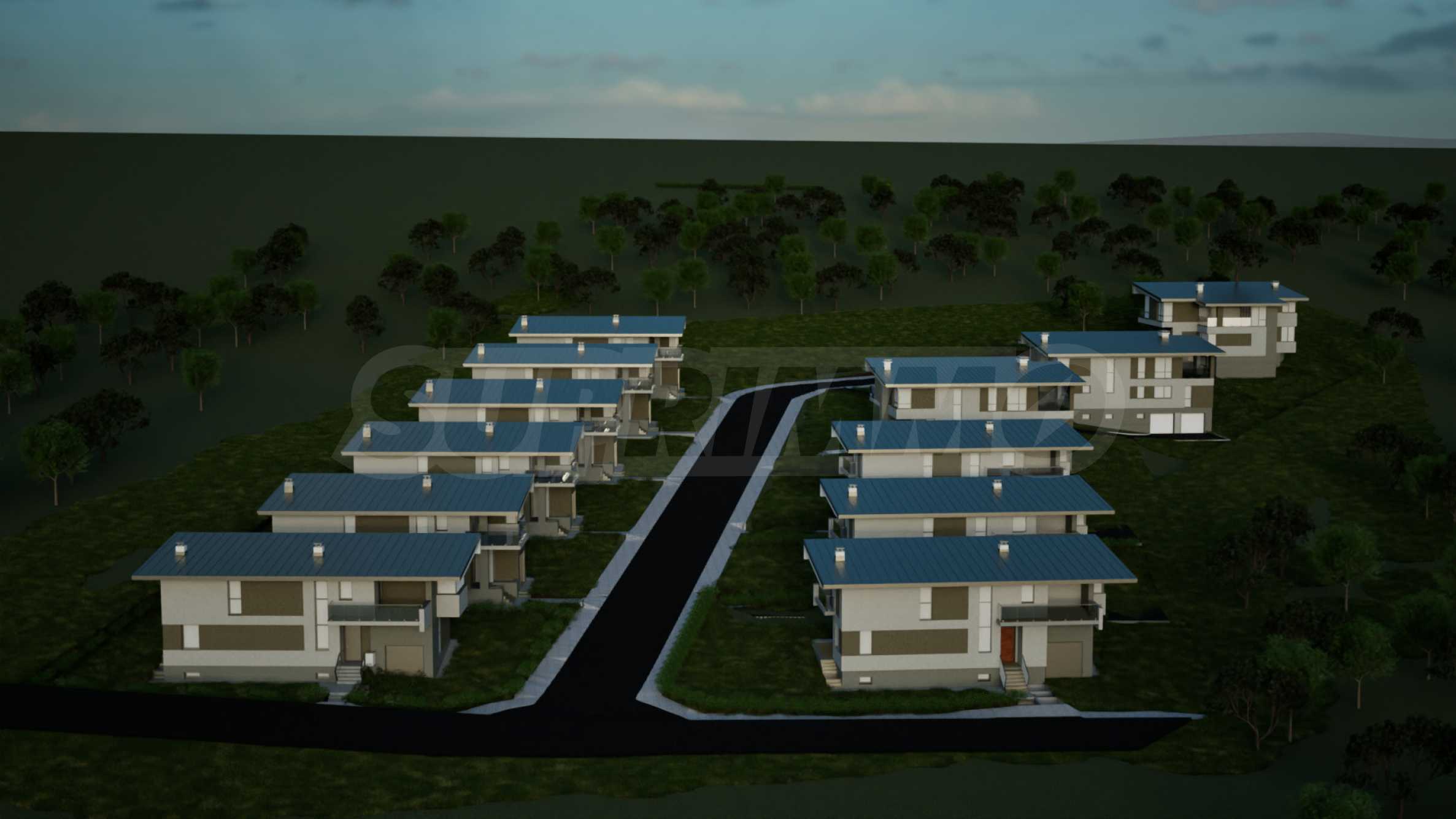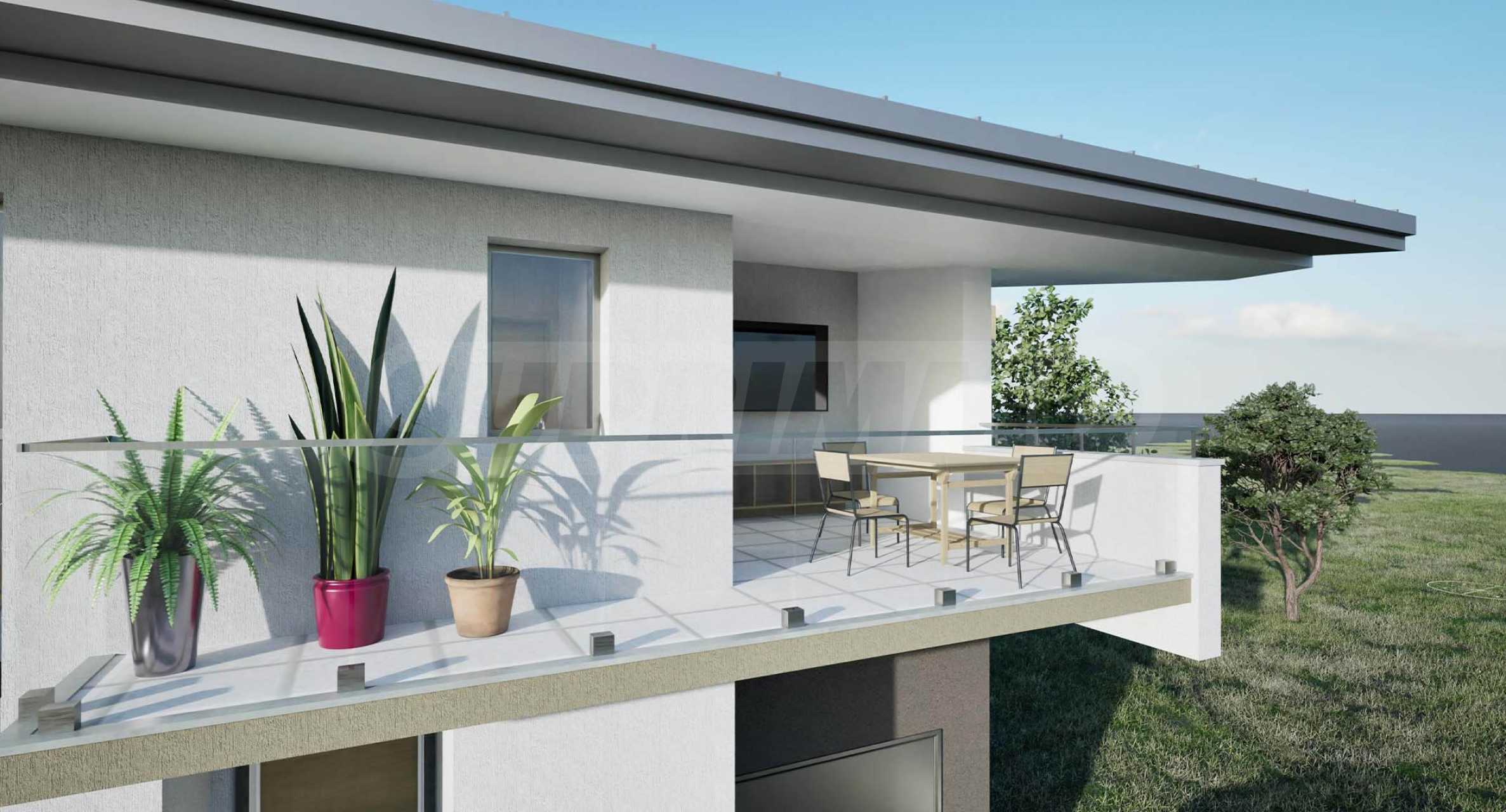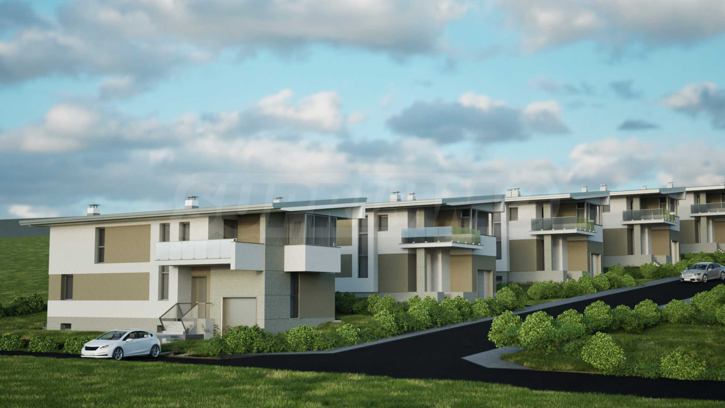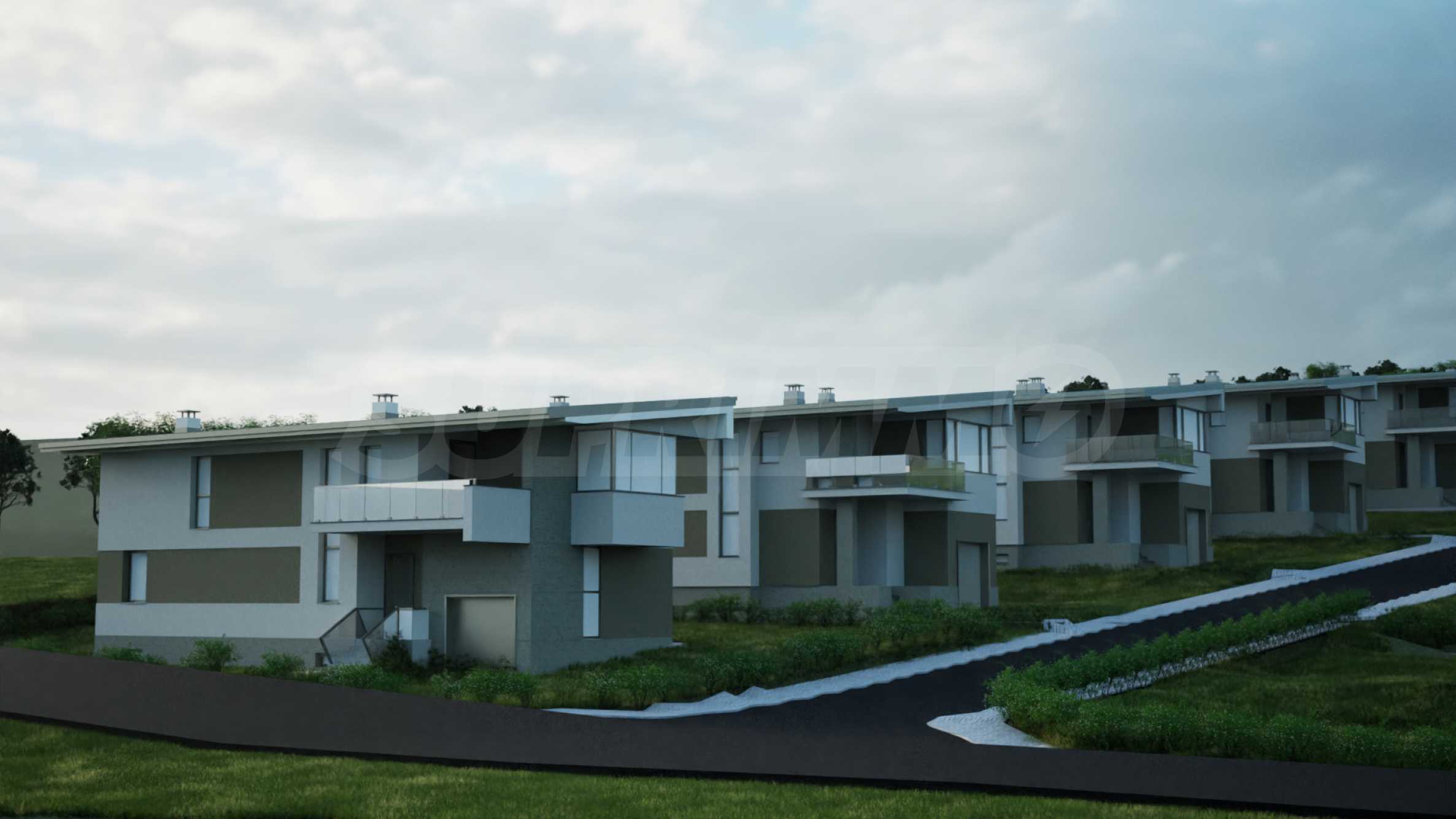 Дома, спроектированные с вниманием к деталям, отличаются функциональной планировкой, просторными жилыми помещениями и отличным освещением. Силуэт каждого здания подчёркивает односкатная крыша с глубокими карнизами, которая не только визуально улучшает внешний вид, но и выполняет практическую функцию защиты от непогоды. Планировка домов ориентирована на то, чтобы максимально использовать уникальные панорамные виды на Пловдив на севере и Родопские горы на юге, сохраняя при этом естественный рельеф и колорит местности.