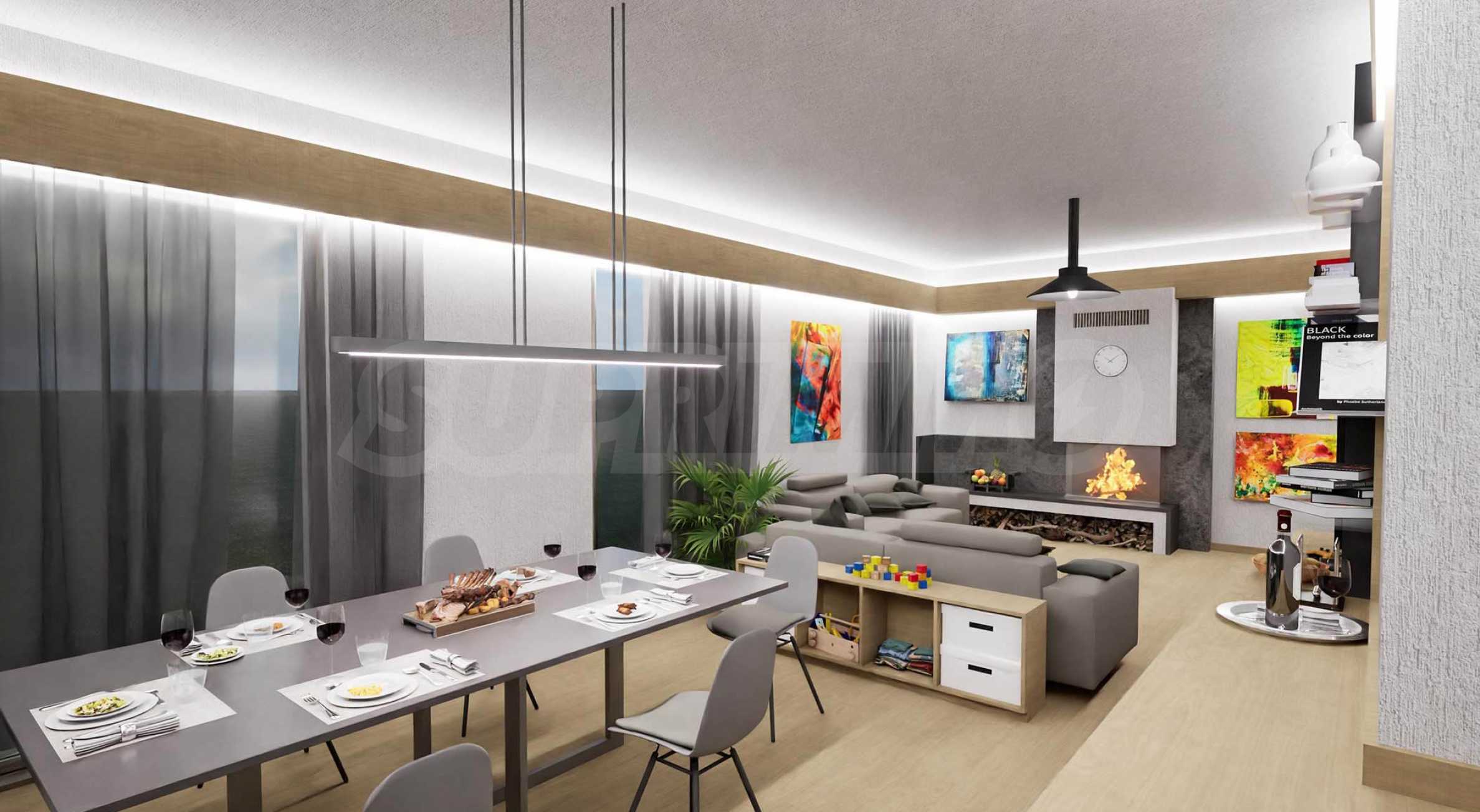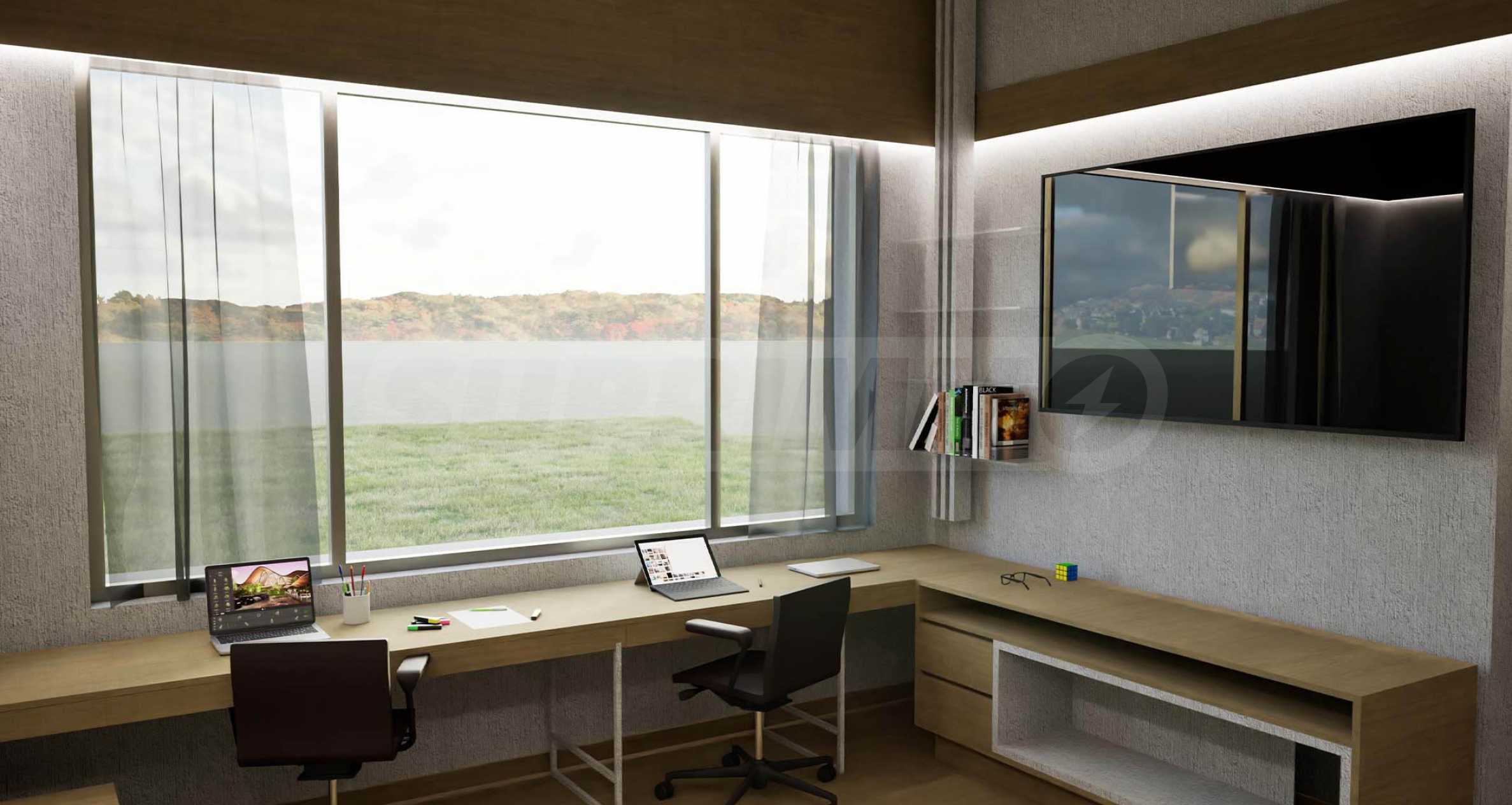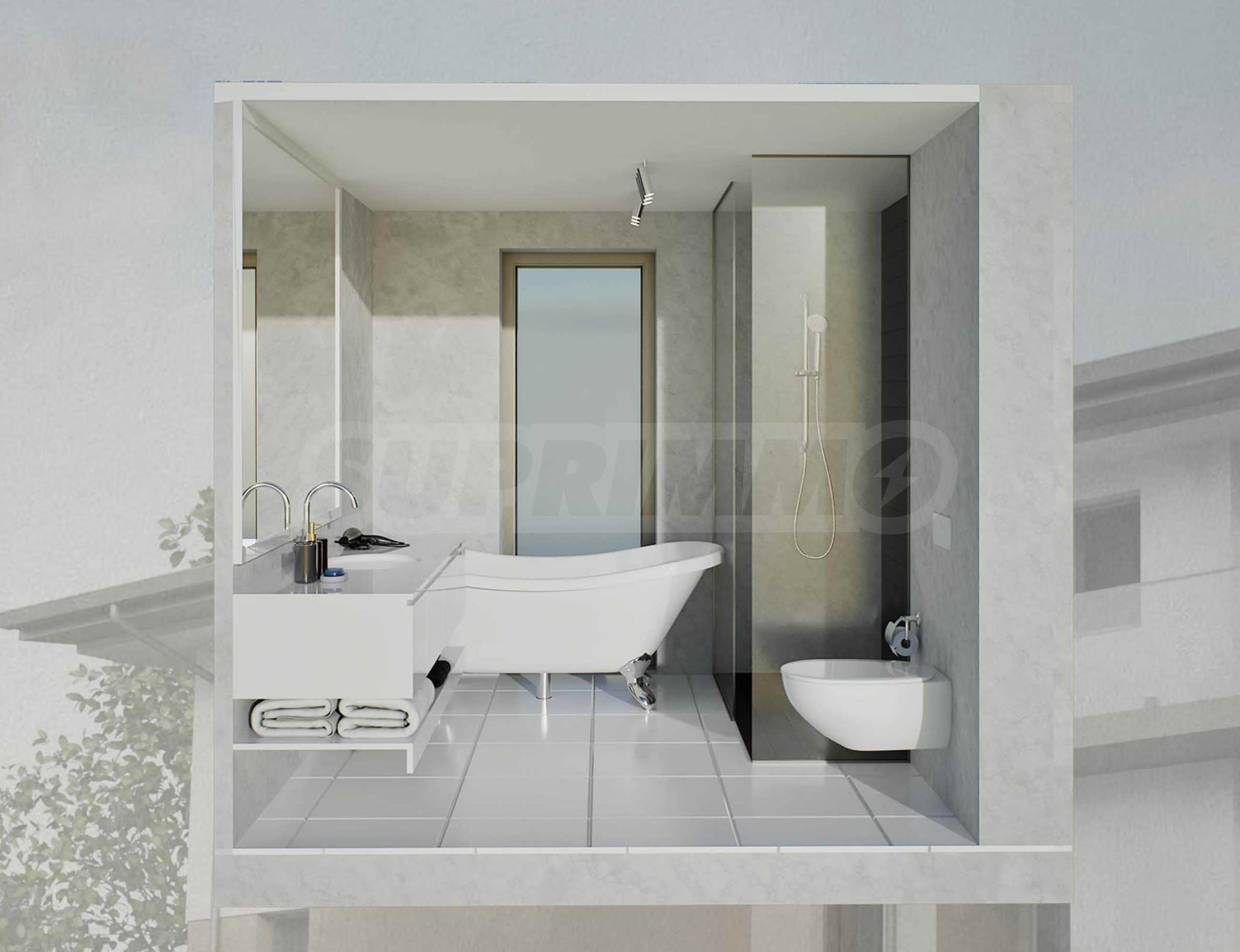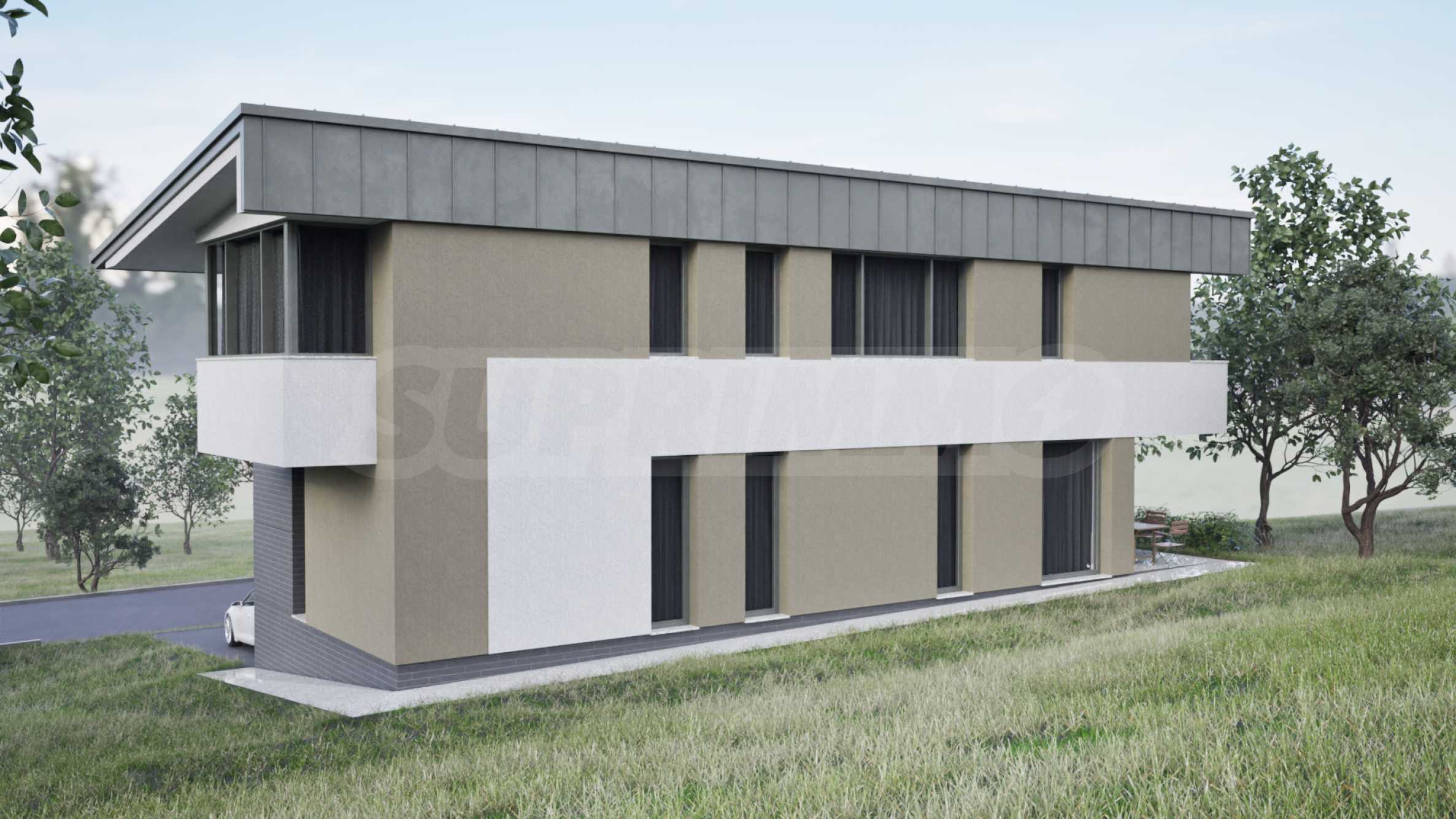 Дома, спроектированные с вниманием к деталям, отличаются функциональной планировкой, просторными жилыми помещениями и отличным освещением. Силуэт каждого здания подчёркивает односкатная крыша с глубокими карнизами, которая не только визуально улучшает внешний вид, но и выполняет практическую функцию защиты от непогоды. Планировка домов ориентирована на то, чтобы максимально использовать уникальные панорамные виды на Пловдив на севере и Родопские горы на юге, сохраняя при этом естественный рельеф и колорит местности.