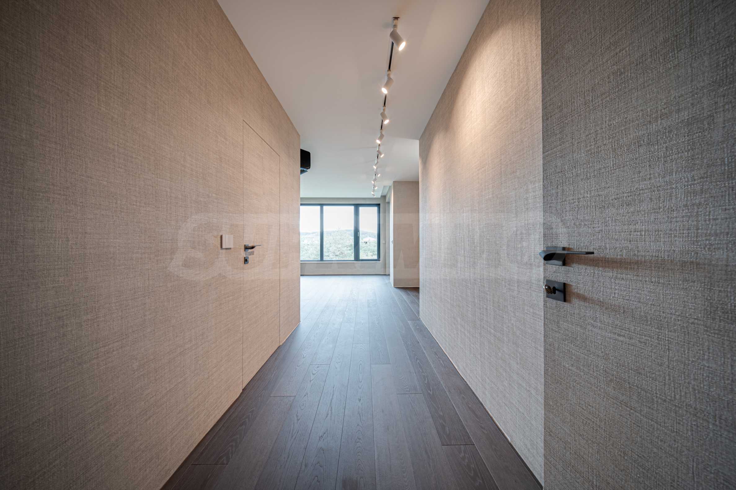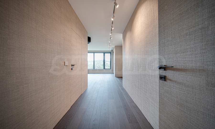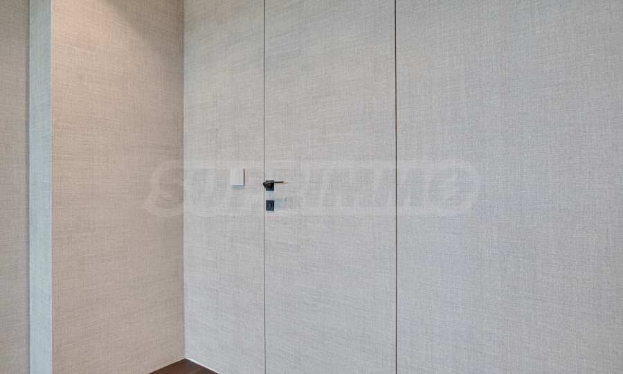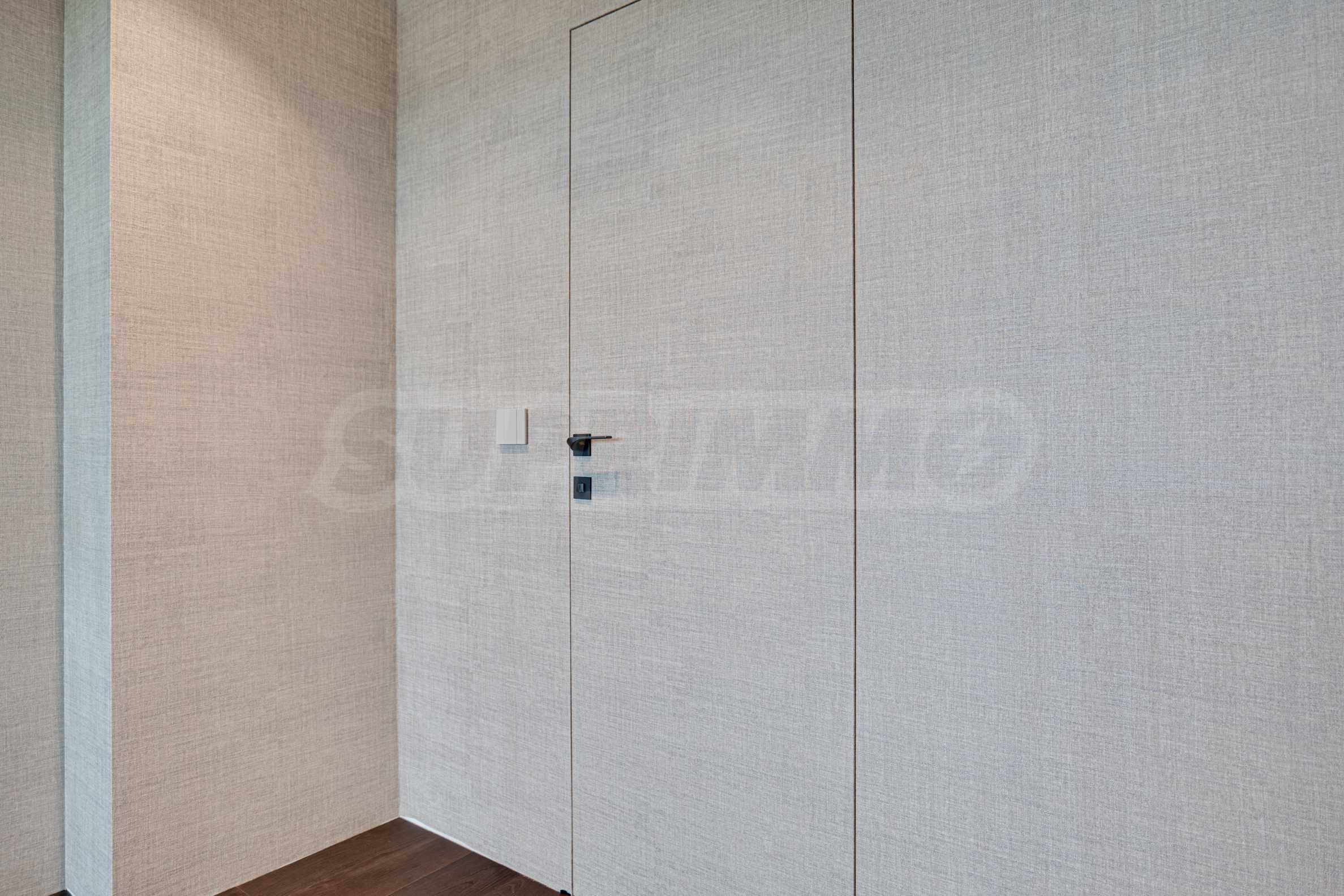 Стены оклеены высококачественными обоями, межкомнатные двери изготовлены по индивидуальному заказу.