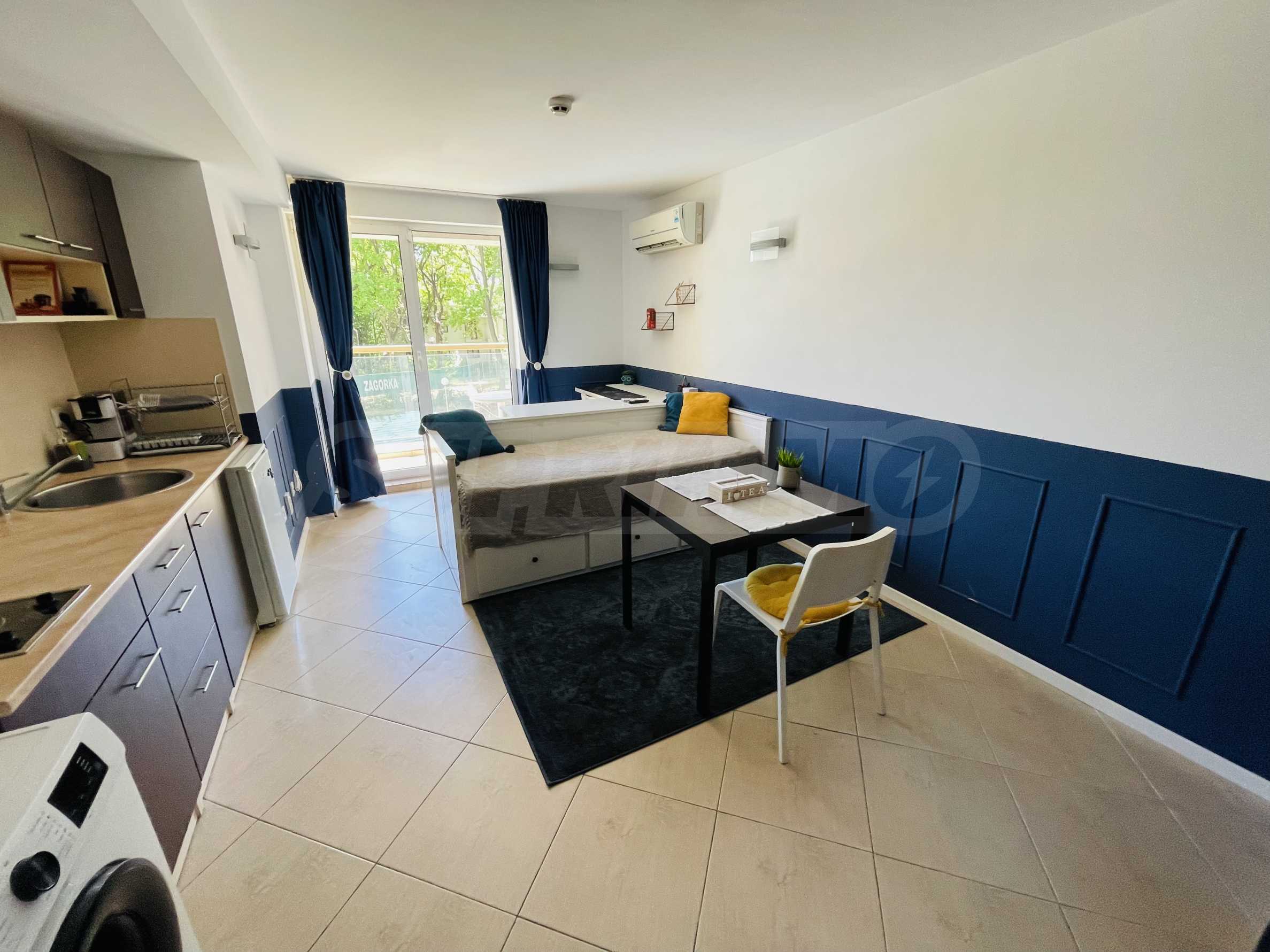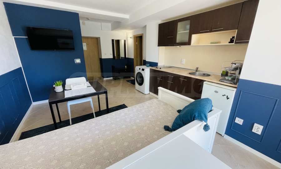 Представляем вашему вниманию уютную и практичную студию в закрытом комплексе с бассейном на курорте Золотые пески. Удобное расположение в самом центре курорта, рядом с множеством уютных ресторанов и баров, всего в 20 минутах ходьбы от пляжа.