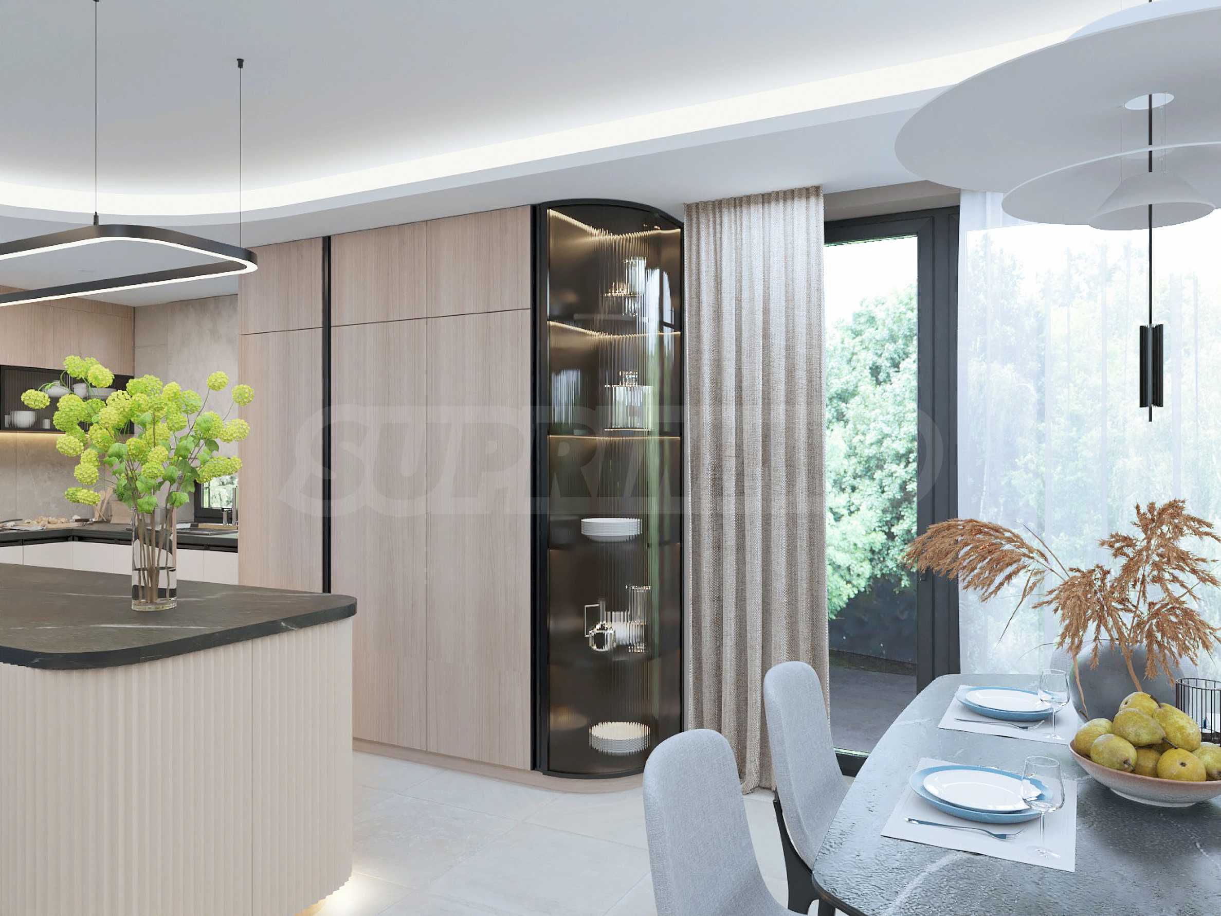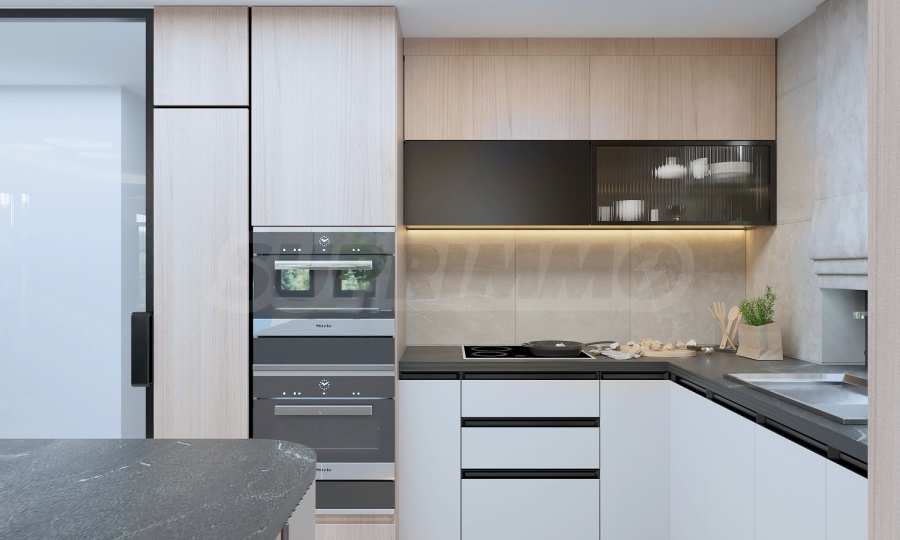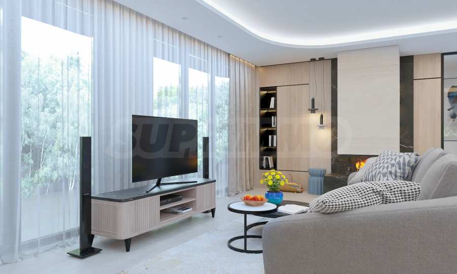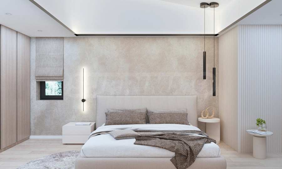 Представляем Вам современный дом на трех уровнях, расположенный в живописном районе Косанин Дол, который отличается своей уединенностью и непосредственной близостью к озеру Панчарево и кольцевой дороге, что обеспечивает удобный и быстрый доступ к городу.