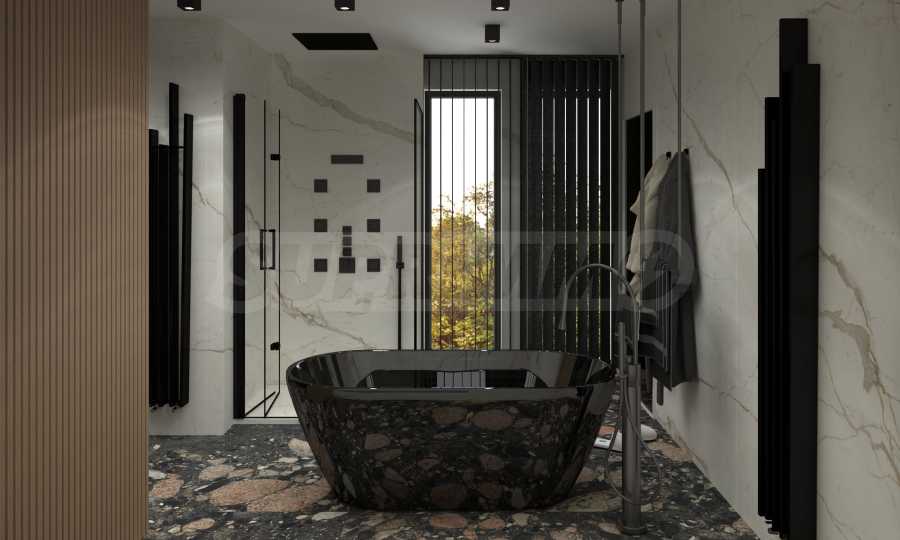 Отопление – тёплый пол (во всех комнатах и коридорах) на газе или тепловом насосе. Предусмотрены выводы для установки системы отопления/охлаждения в подвесном потолке. В ванных комнатах, помимо тёплого пола, предусмотрены также инсталляции для лир.