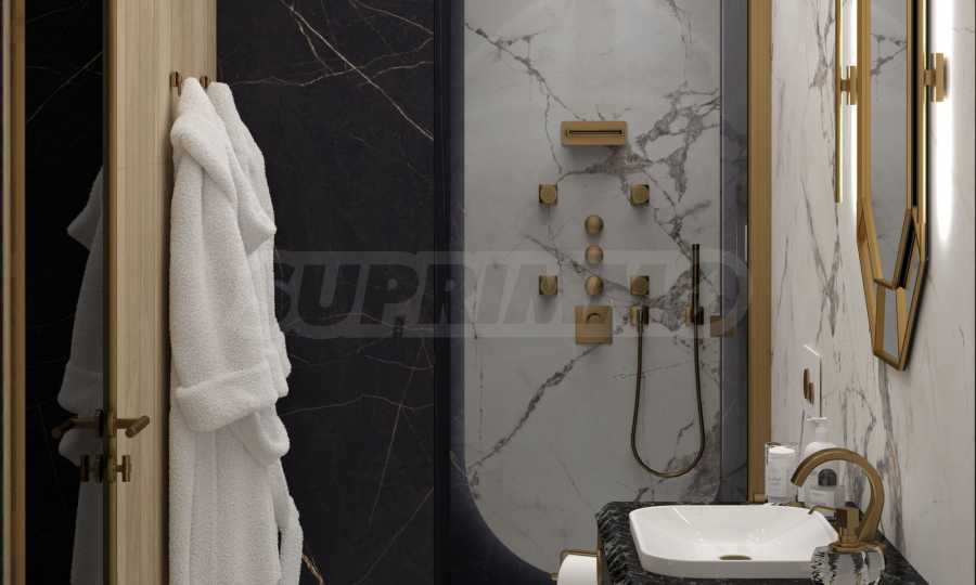 • установлены конструкции для инсталляции и корпус для встраиваемого гигиенического душа высочайшего класса - Geberit во всех санузлах, с возможностью установки систем «умный унитаз»;