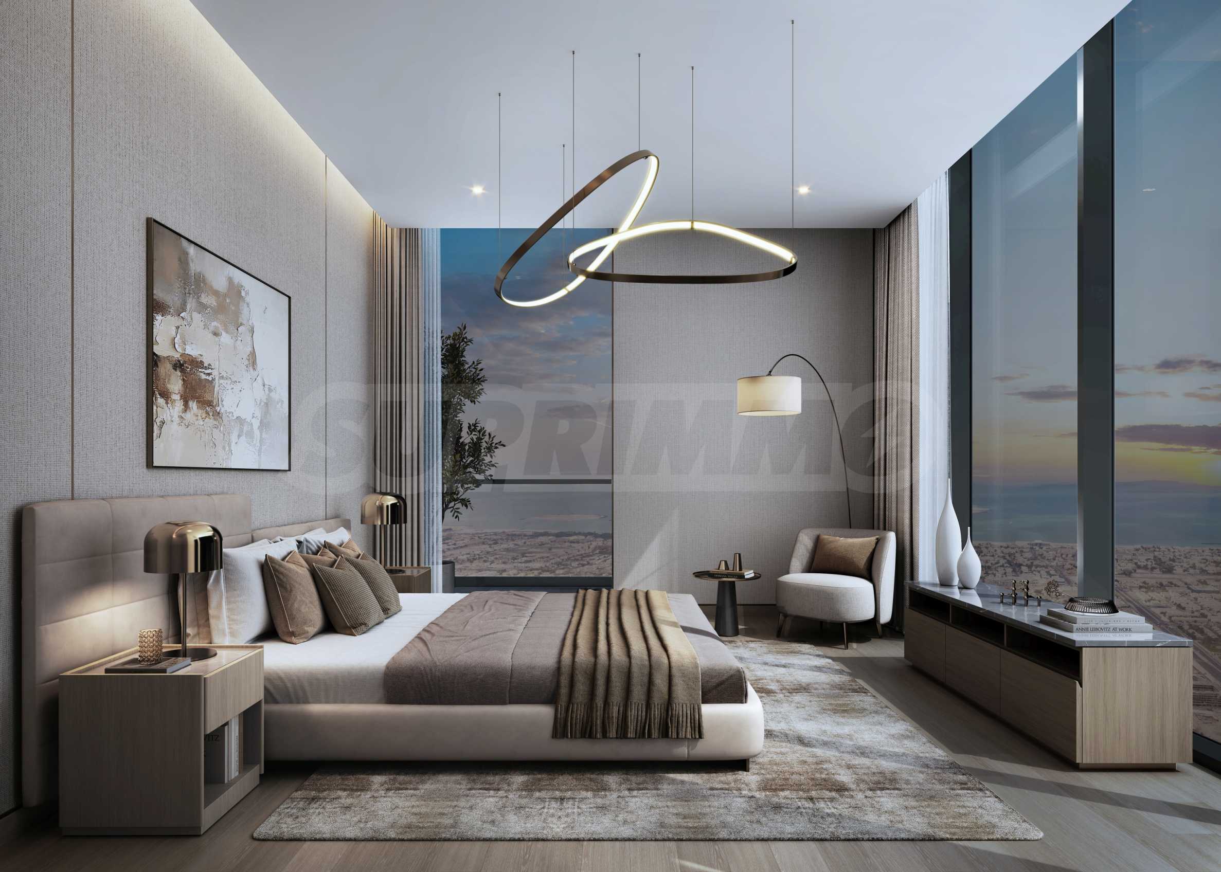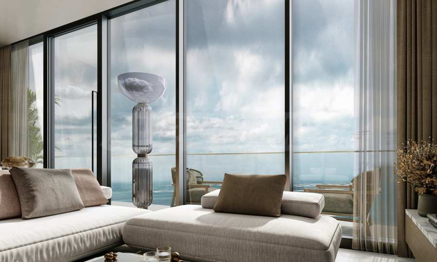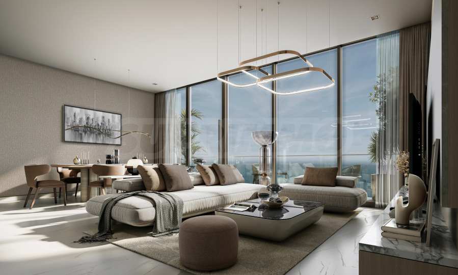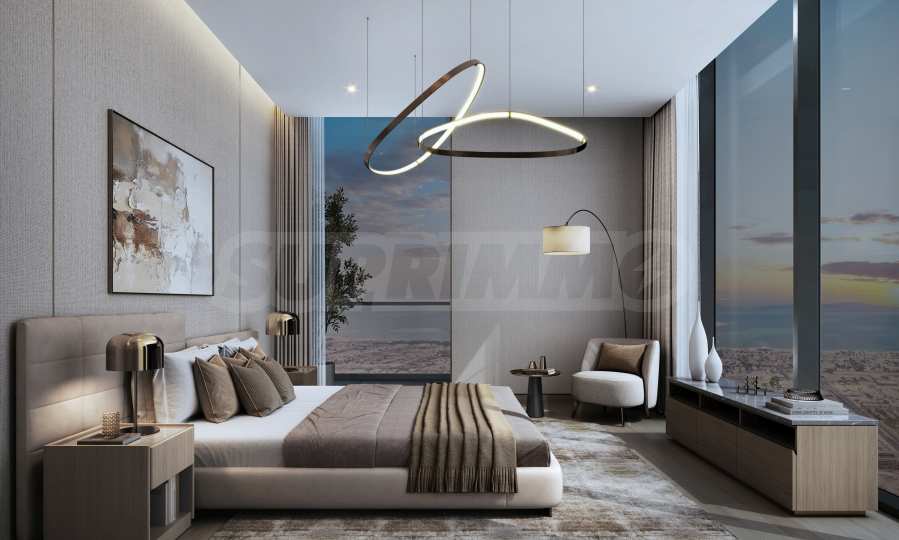 Элегантное и изысканное здание впечатляет своими чистыми вертикальными линиями и фасадом с панорамными окнами от пола до потолка, которые отражают динамичные огни Дубая.