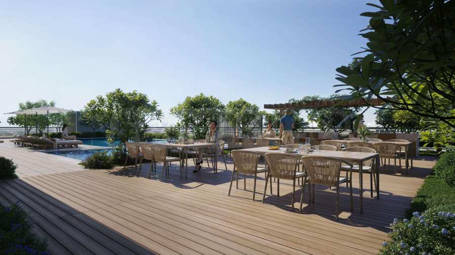 Видение создателей выходит за рамки привычного представления о доме – это пространство, где сочетаются комфорт, движение и социальная жизнь. Жильцов ждут бассейн с панорамным видом, отдельный детский бассейн и современная игровая площадка. Любители активного образа жизни найдут крытые и открытые тренажерные залы, а для любителей отдыха – уникальную зону барбекю на террасе на крыше с потрясающим видом на населенный пункт. Здесь же предусмотрены офисные помещения, что позволит будущим жильцам работать на свежем воздухе в компании соседей. Крытая лаунж-зона предлагает элегантное пространство для встреч с соседями или организации частных мероприятий в изысканной атмосфере.