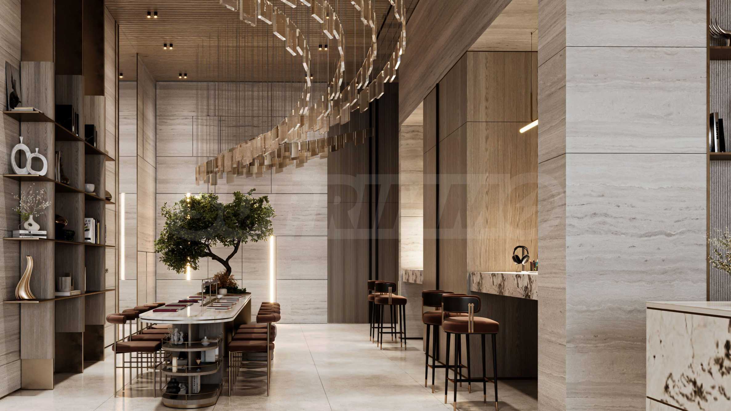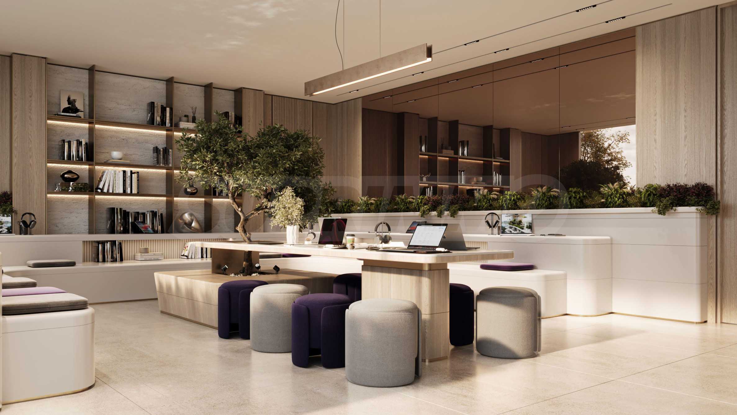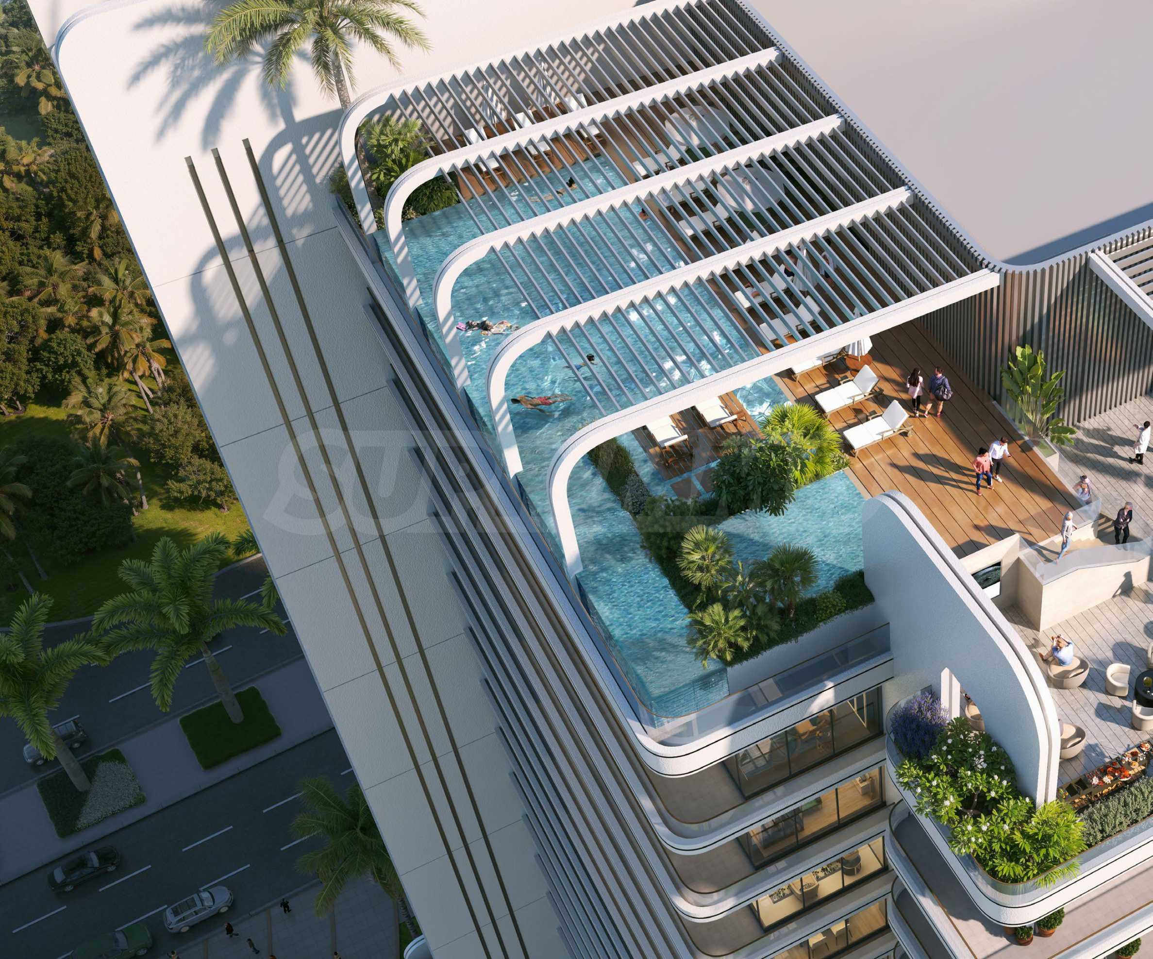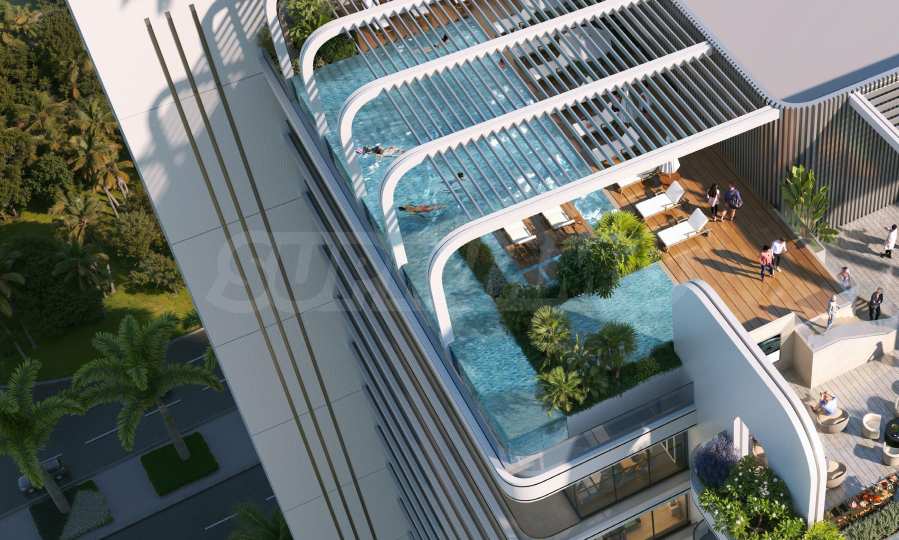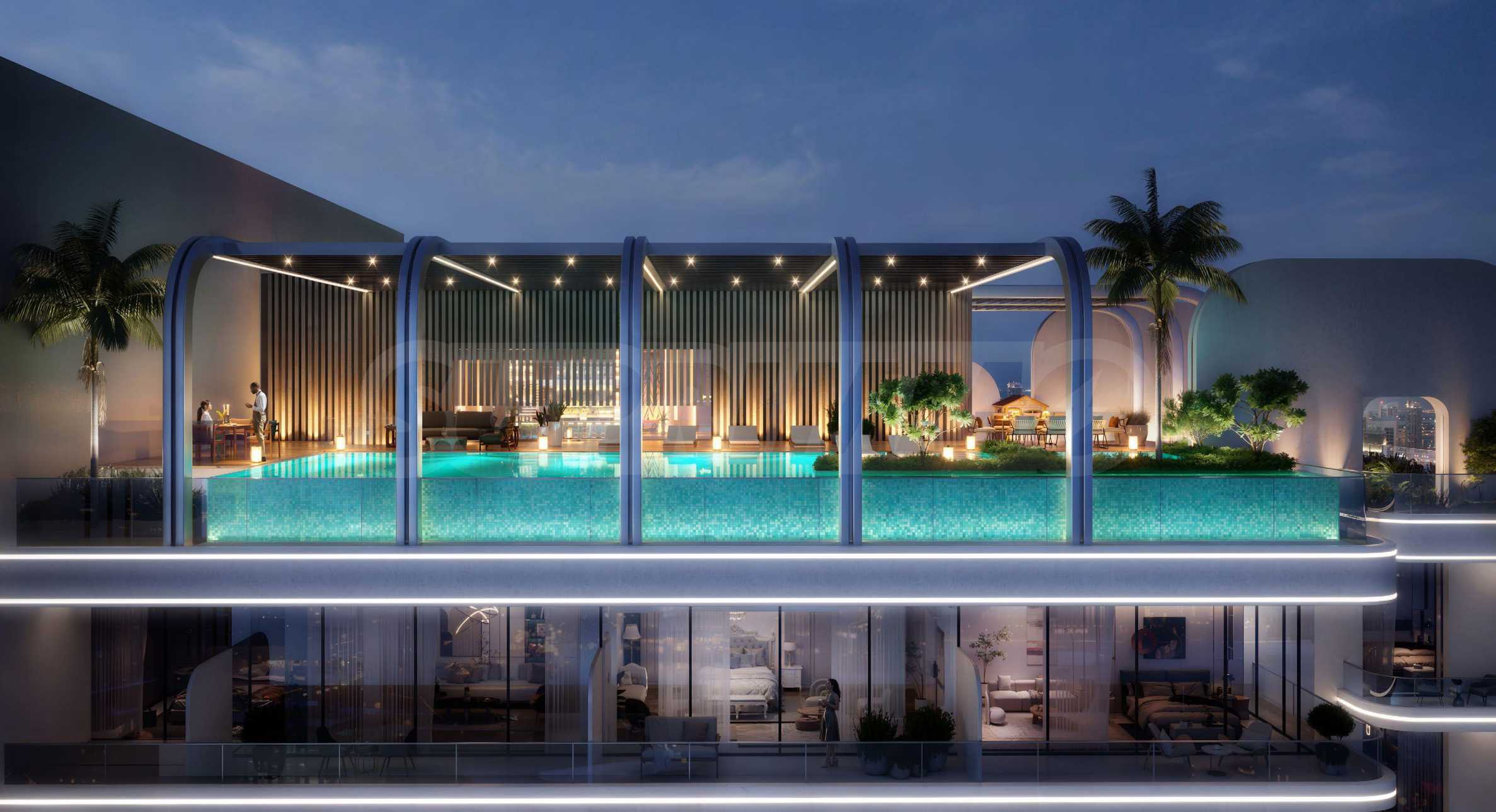 Здание предлагает изысканный выбор студий, одно- и двухкомнатных квартир, спроектированных таким образом, чтобы обеспечить идеальный баланс между современной роскошью, комфортом и функциональностью. Просторные квартиры впечатляют высокими потолками и панорамными окнами от пола до потолка, которые наполняют помещения естественным светом и создают ощущение простора. Каждая терраса является естественным продолжением внутреннего пространства — местом, где можно отдохнуть и насладиться видом на населенный пункт.
