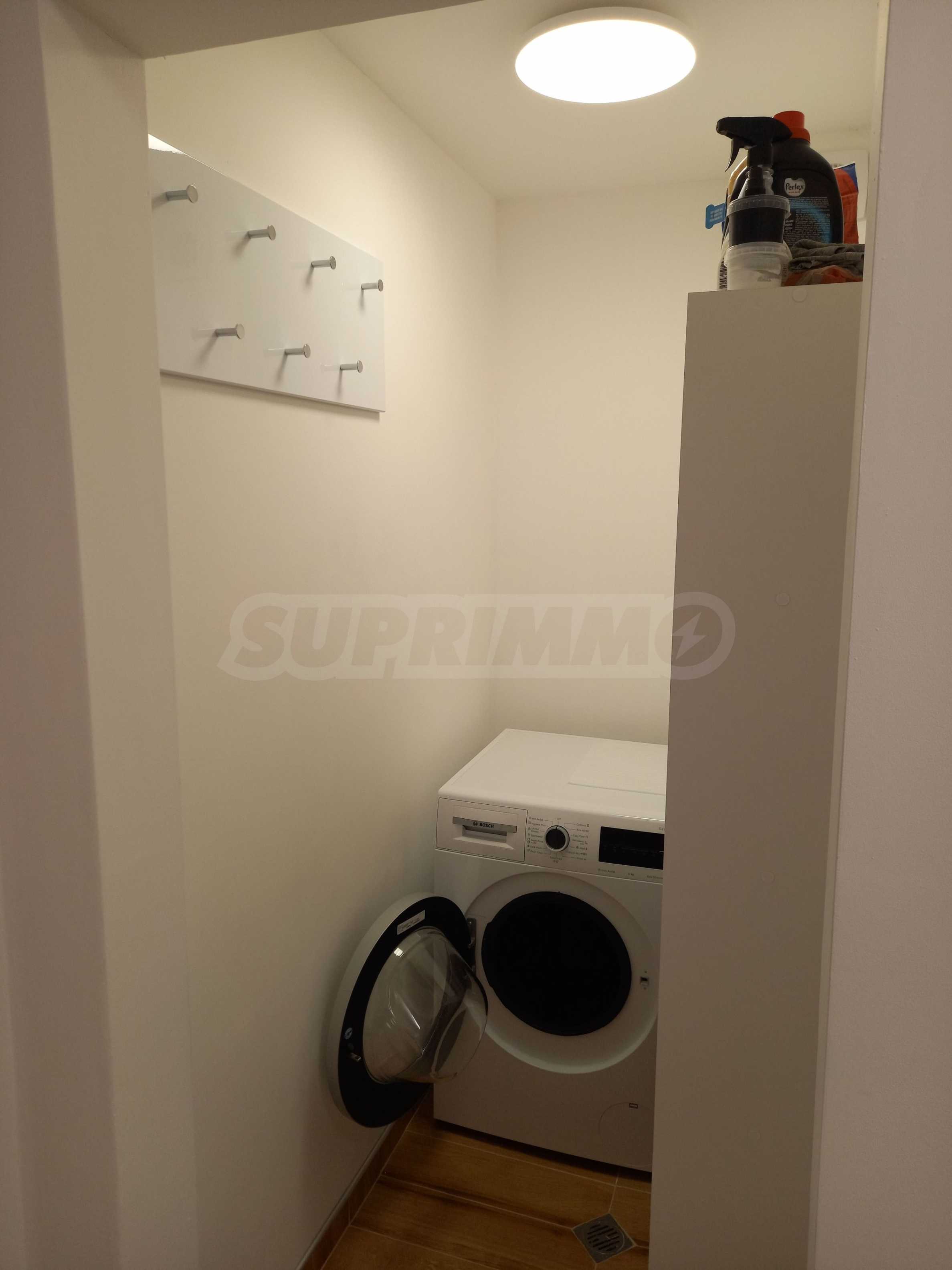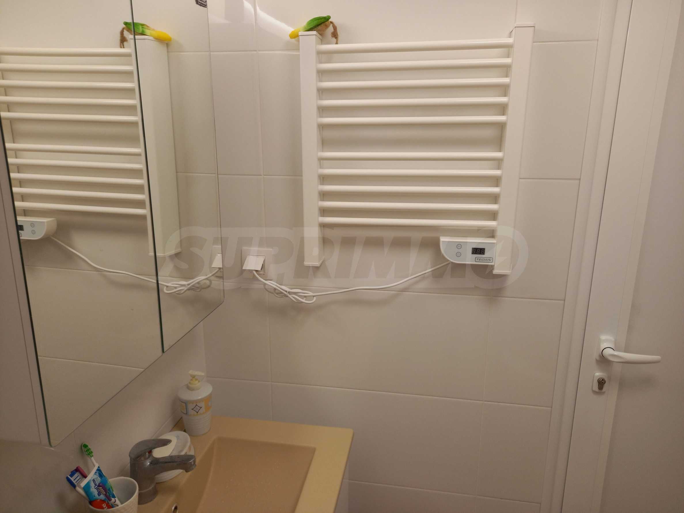Квартира полностью меблирована и оборудована удобной меблировкую и техникой, готова к заселению. Отопление и кондиционирование воздуха осуществляется двумя кондиционерами, с возможностью подключения газа. Часть электроприборов и осветительных приборов имеет функцию удалённого управления, а водонагреватель оснащён функцией искусственного интеллекта.