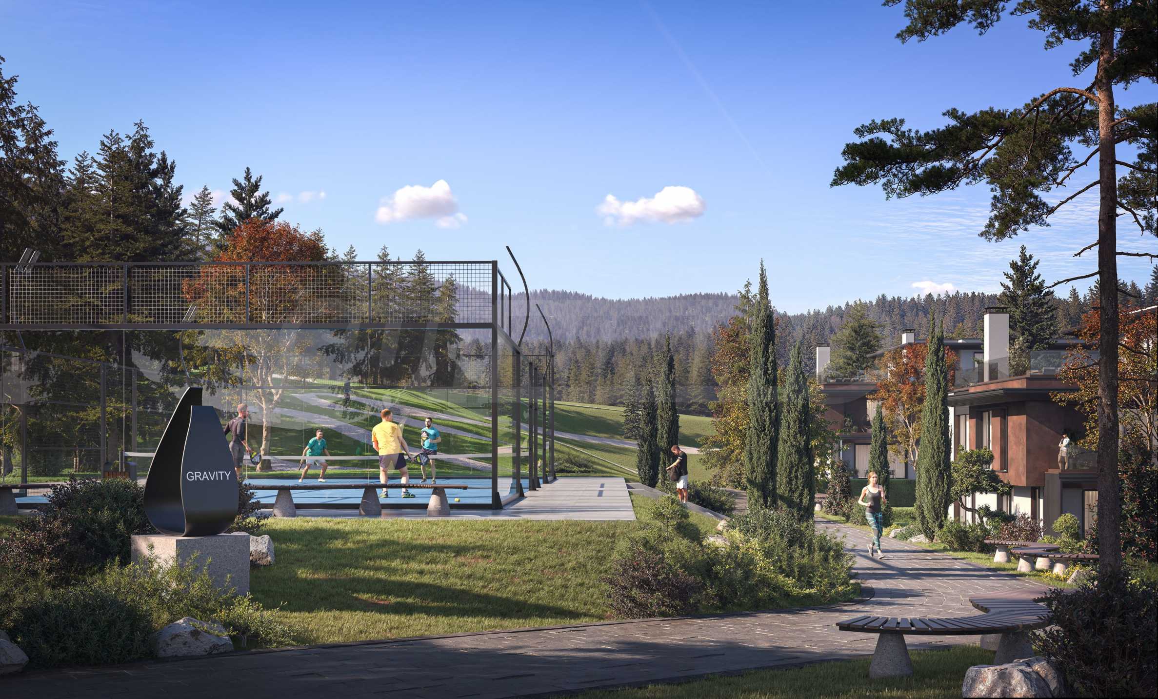 • Зоны для барбекю и пикников, площадка для выгула домашних животных, тренажерный зал на открытом воздухе, беговые, велосипедные и спортивные дорожки;