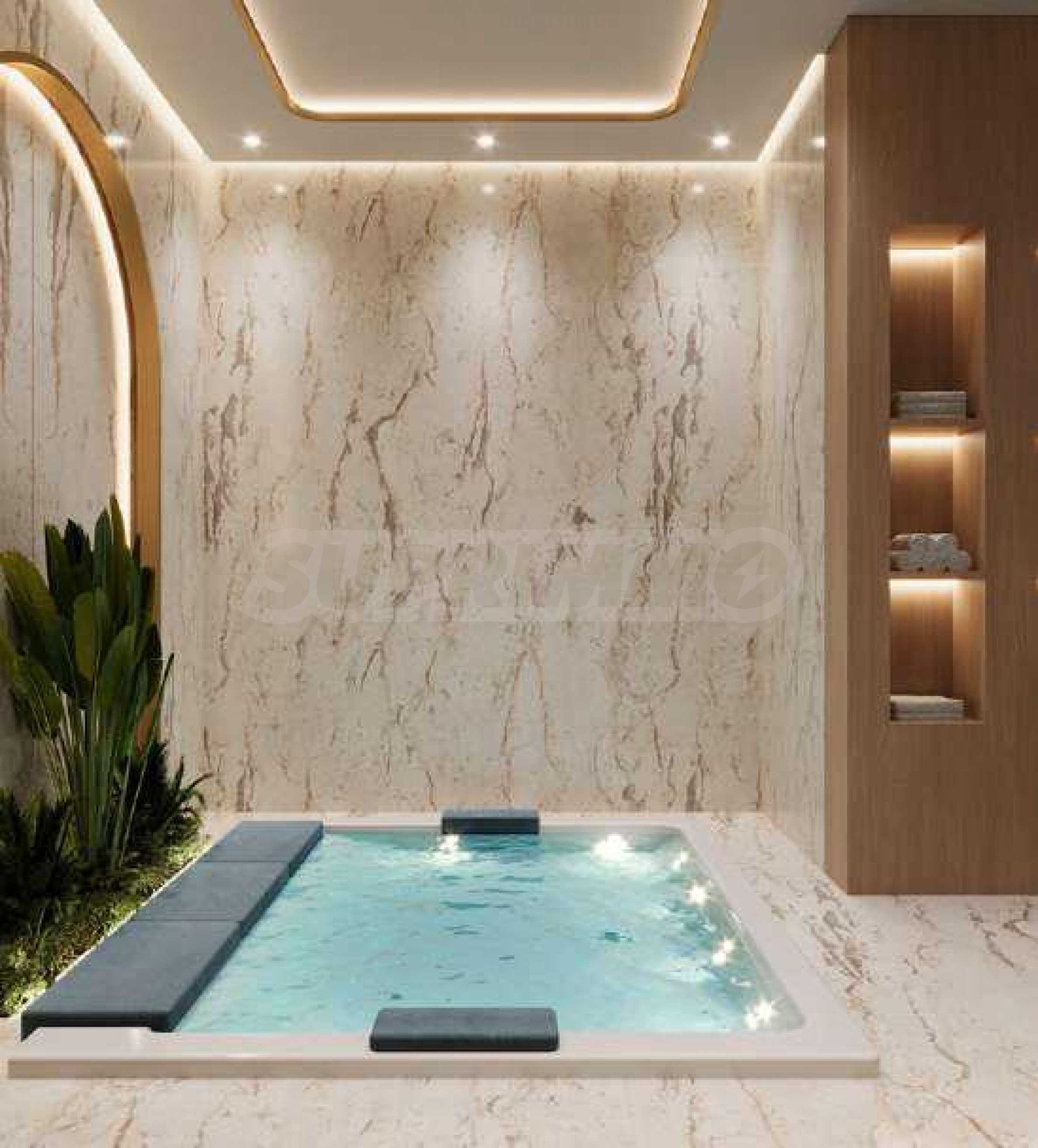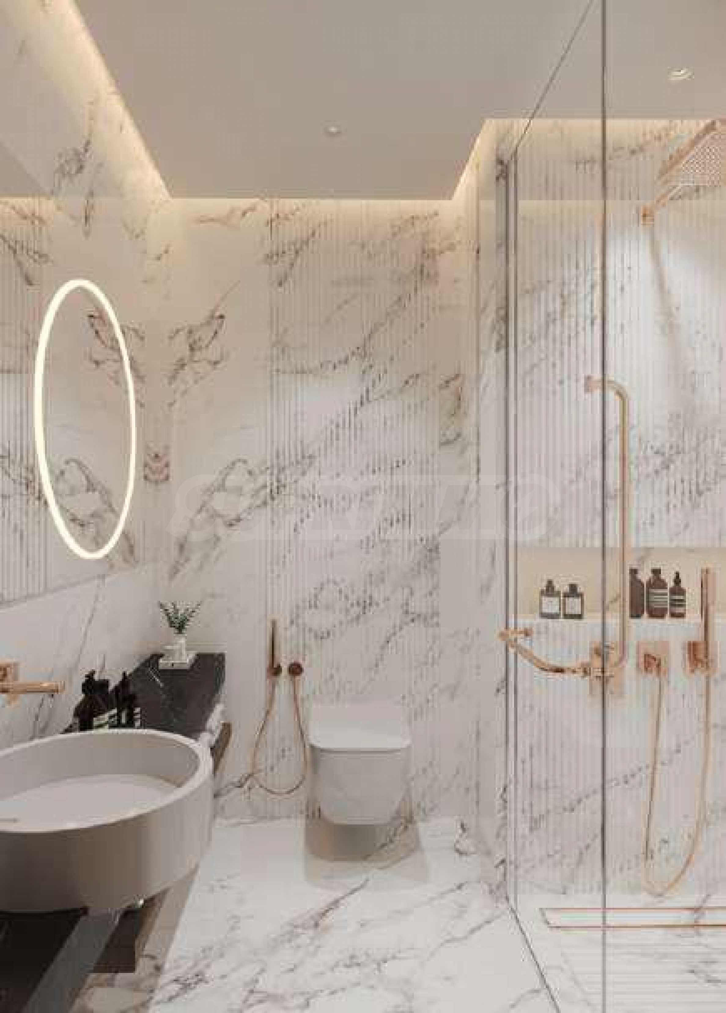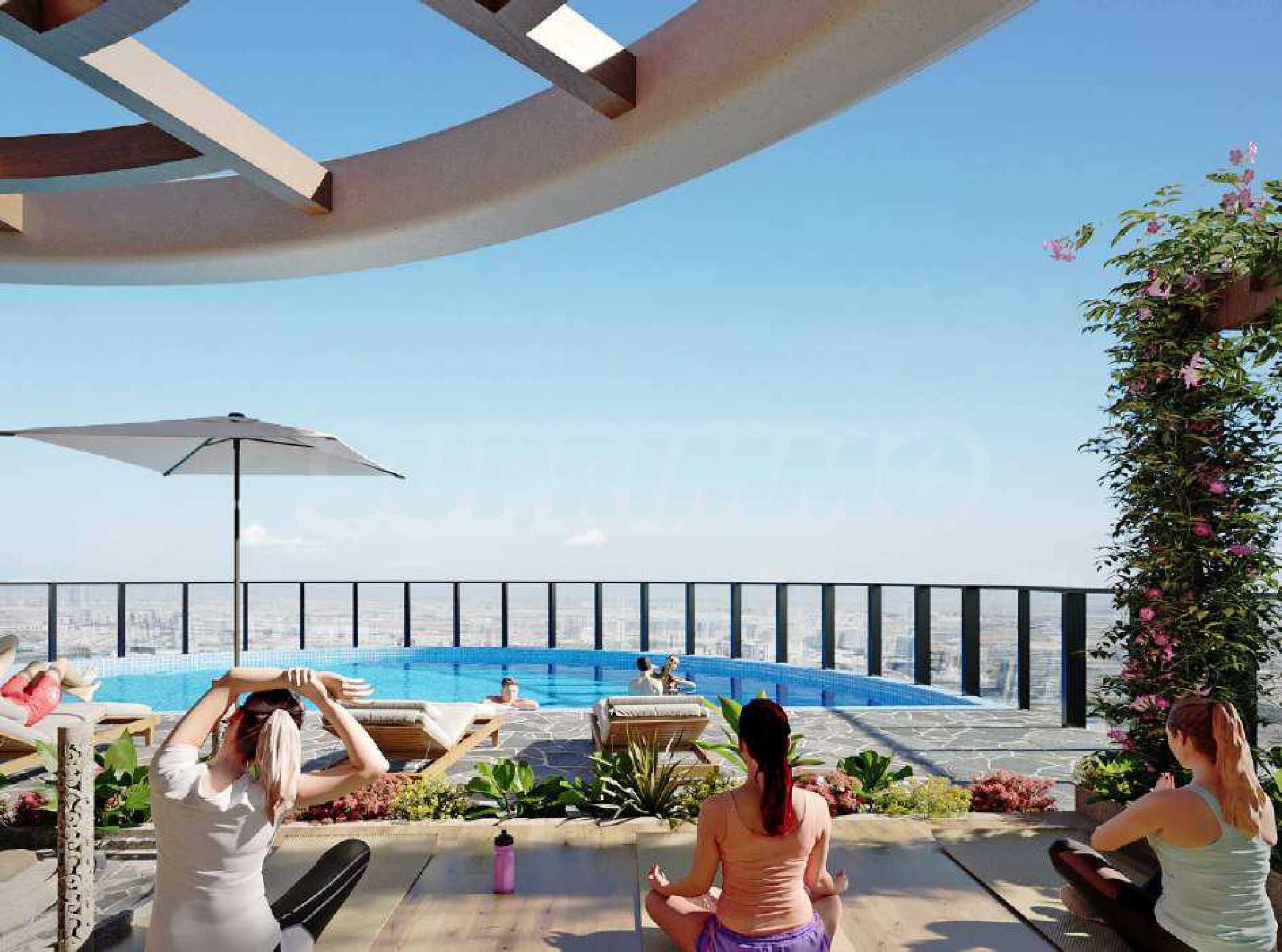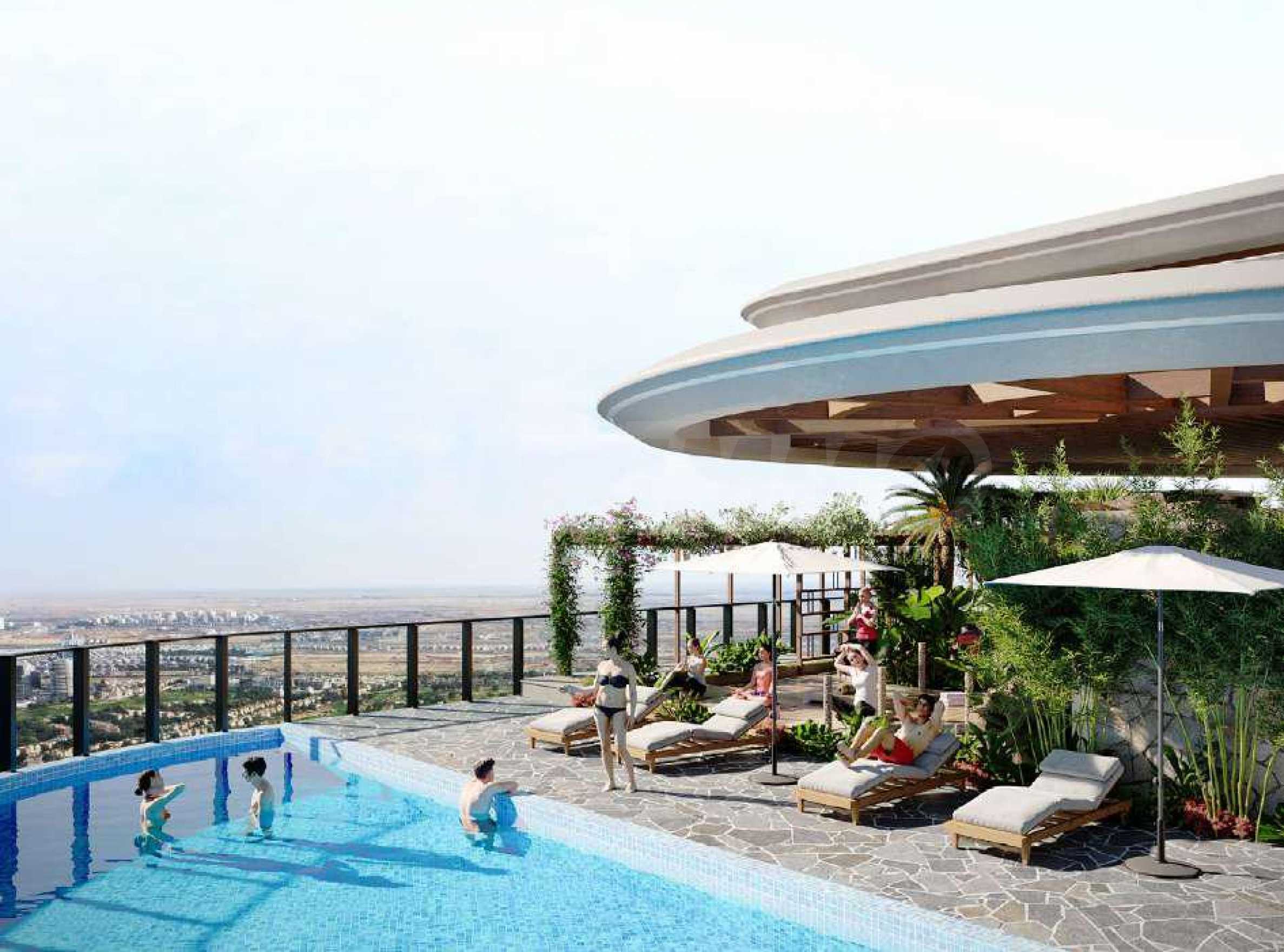В здании представлены тщательно спроектированные студии, одно-, двух- и трёхкомнатные квартиры, отвечающие различным потребностям и образу жизни. Высокие потолки и панорамные окна наполняют помещения светом и воздухом, создавая ощущение простора и свободы, а открывающиеся виды поистине впечатляют. Все резиденции имеют собственные террасы, а в некоторых апартаментах также есть собственные бассейны — изысканный акцент, дополняющий роскошную атмосферу дома.