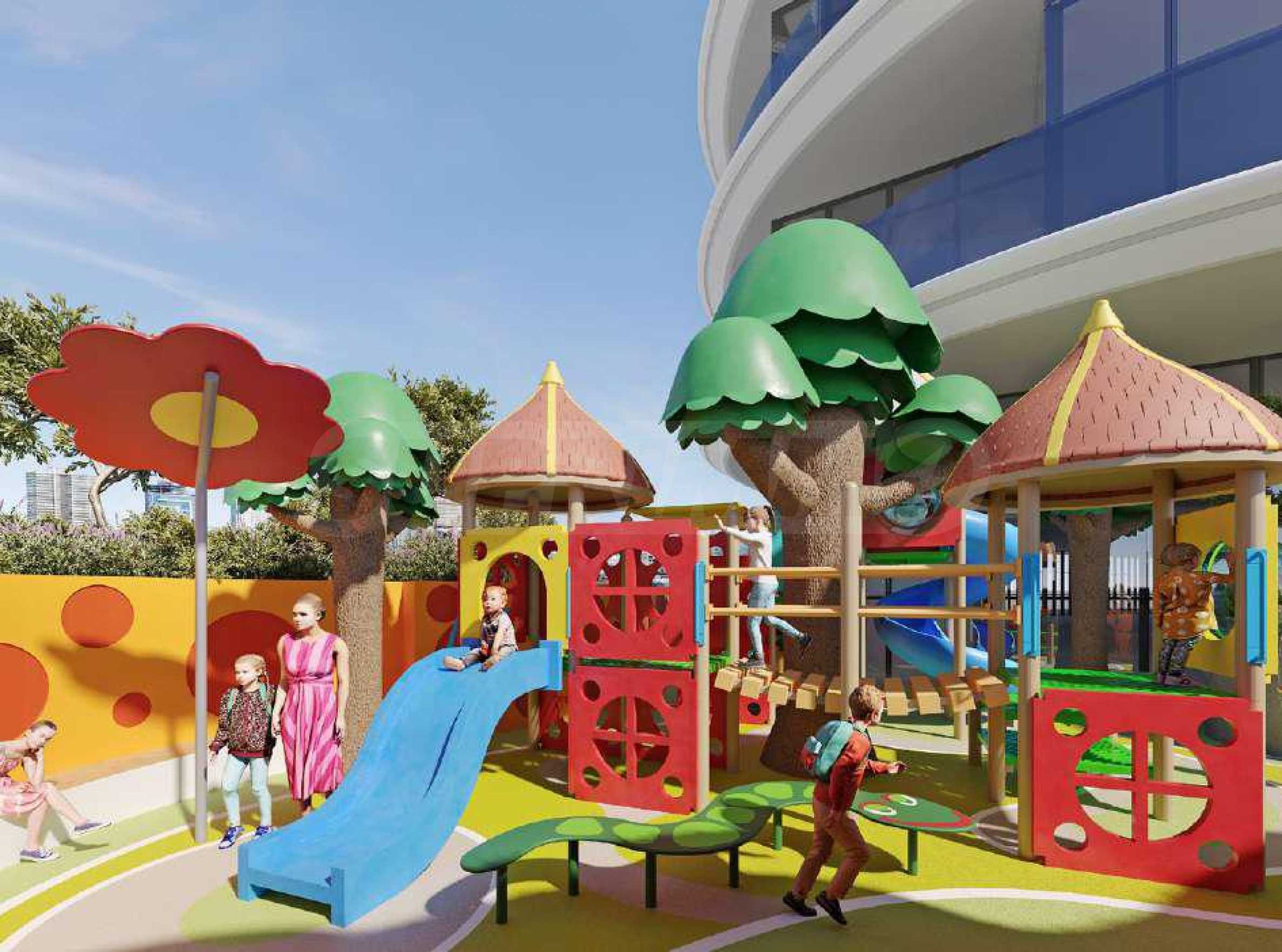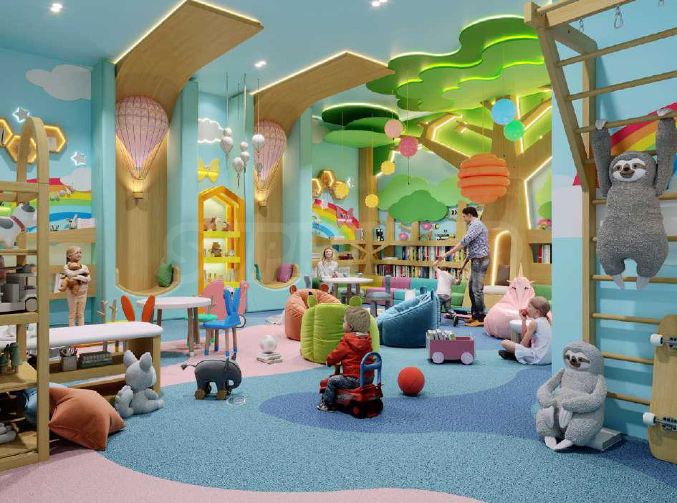 Для самых маленьких жильцов предусмотрены специальные пространства: открытая игровая площадка, игровая комната, детский кинотеатр и отдельный бассейн. Здесь дети могут весело проводить время, развиваться и развивать воображение в безопасной и увлекательной обстановке.