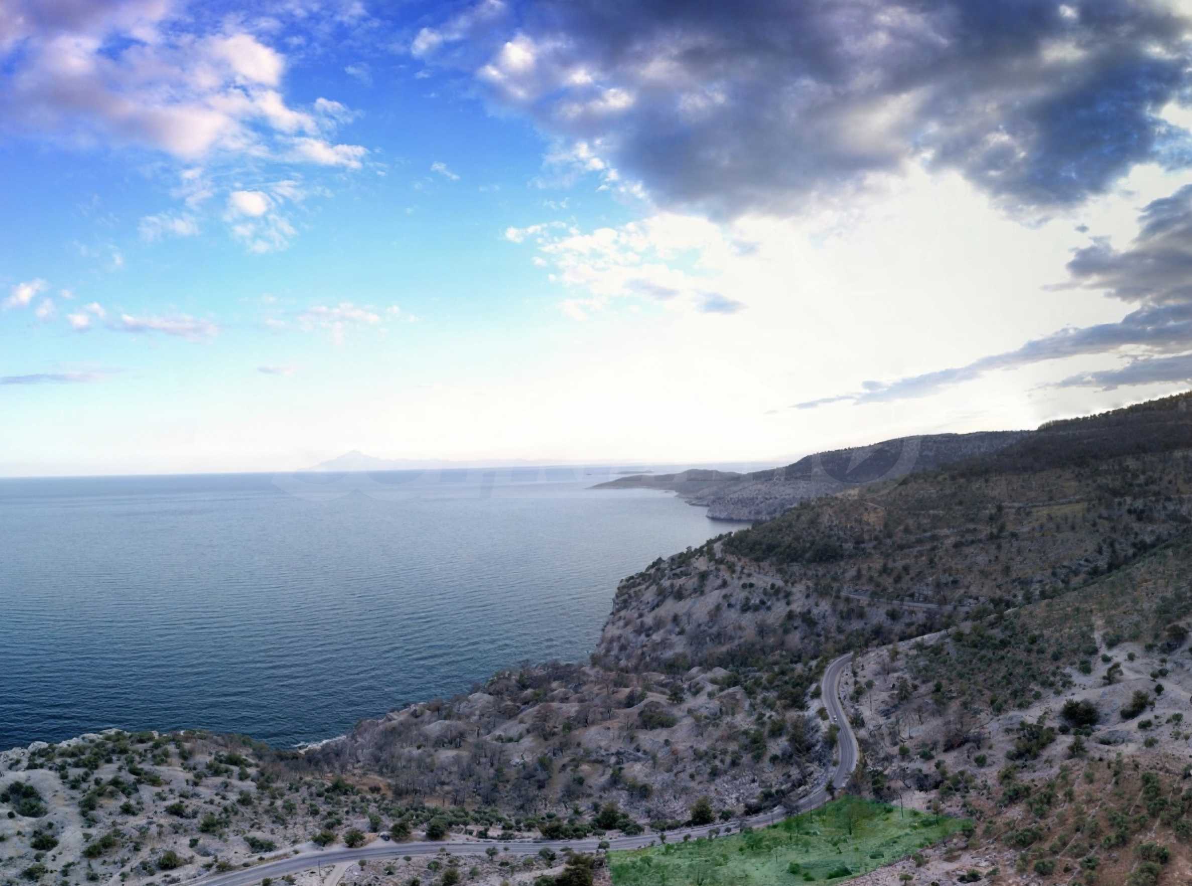 Редкая возможность приобрести большой участок земли на берегу моря с правом на застройку, прекрасной панорамой и выходом на дорогу — одно из самых ценных предложений в южной части острова Тасос.