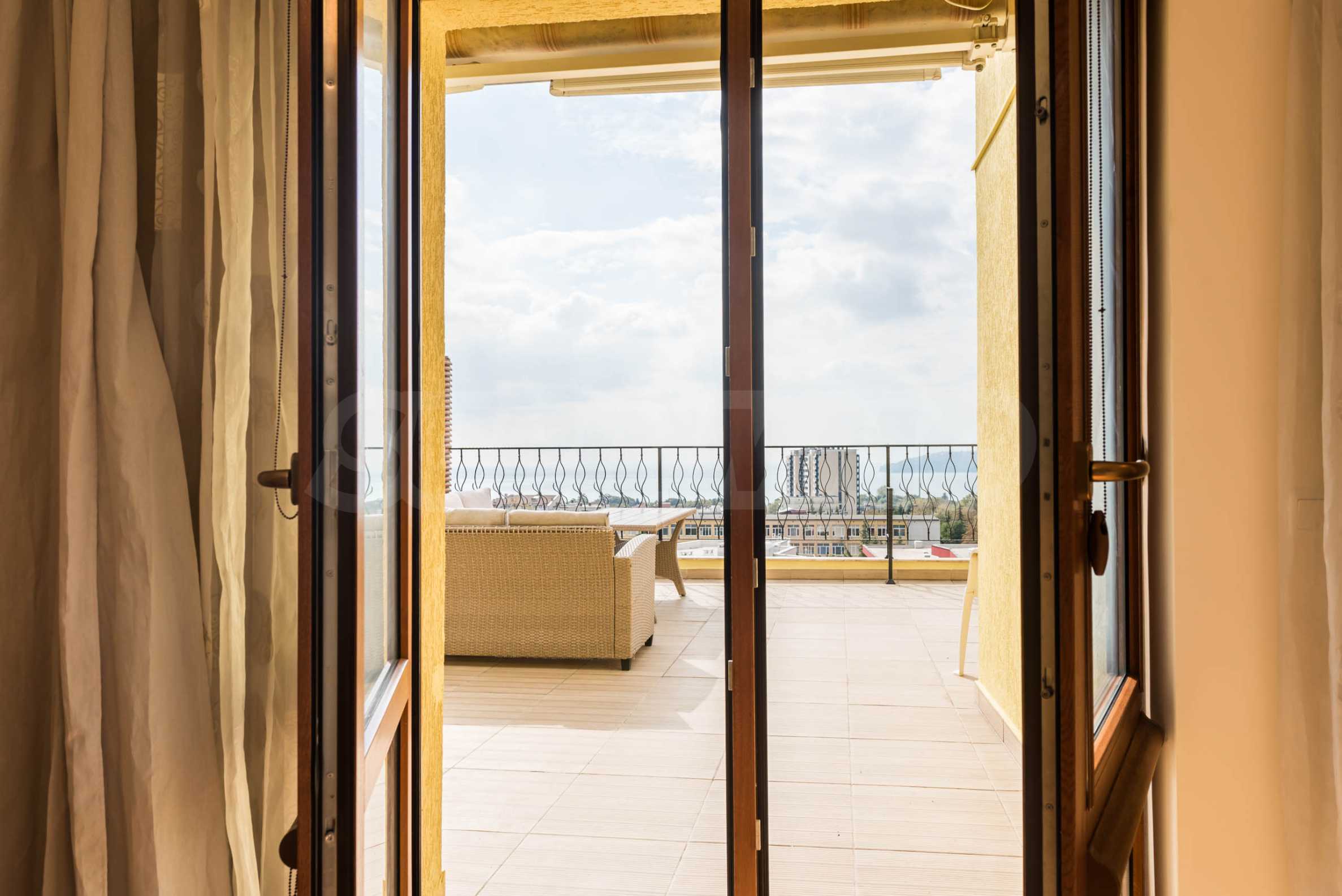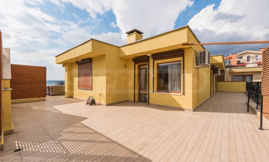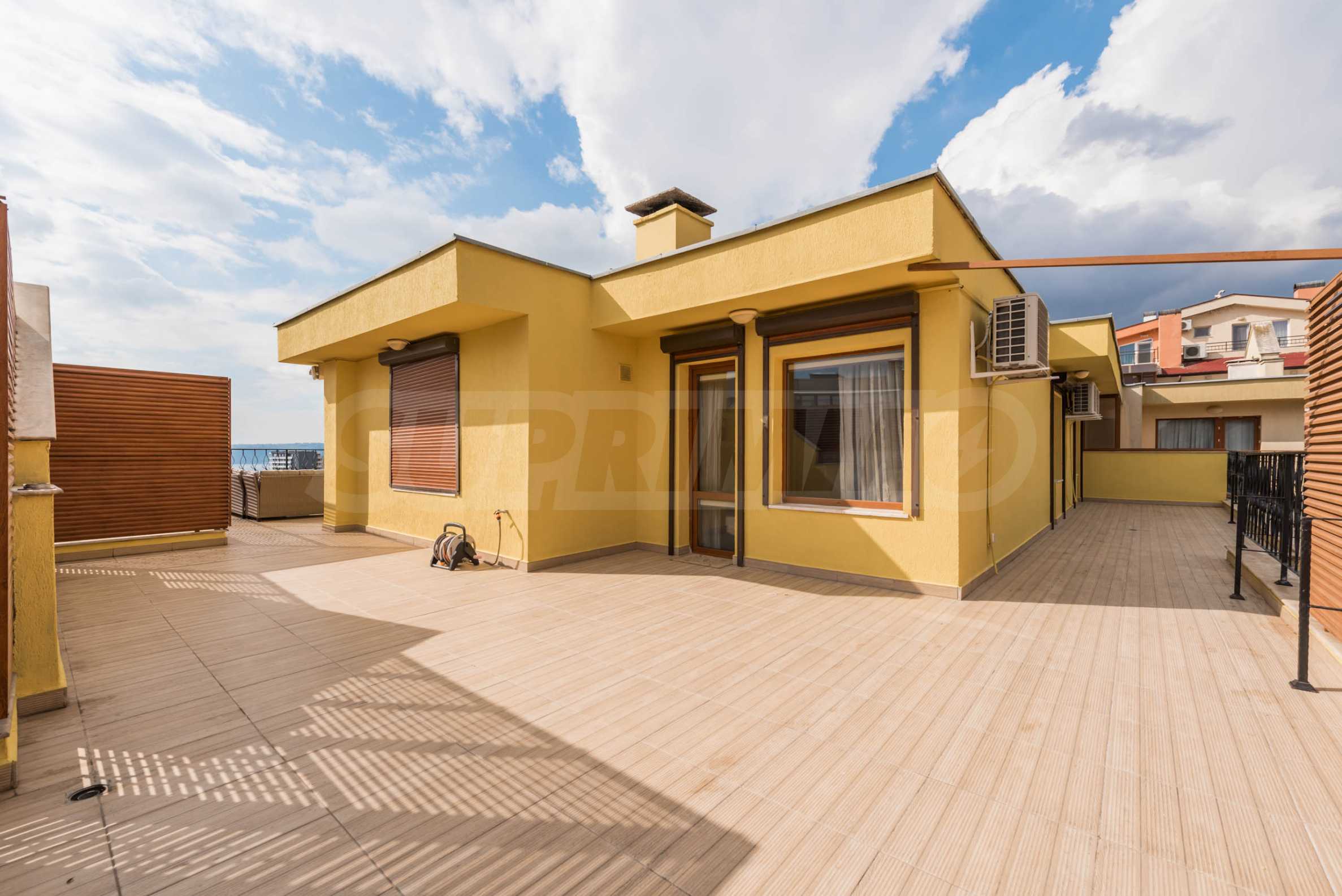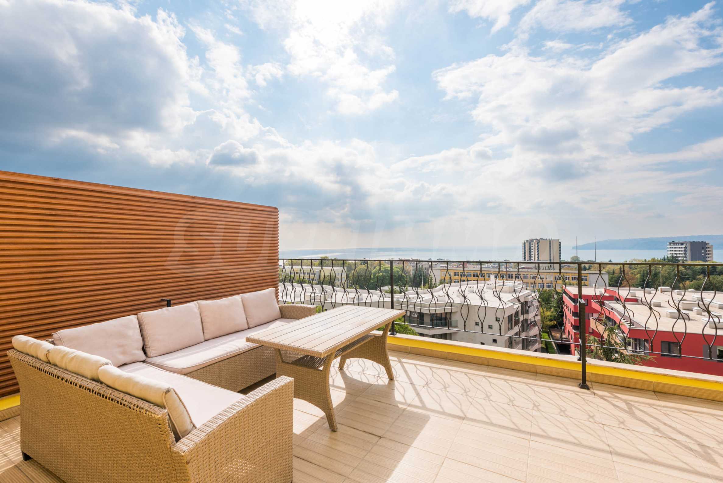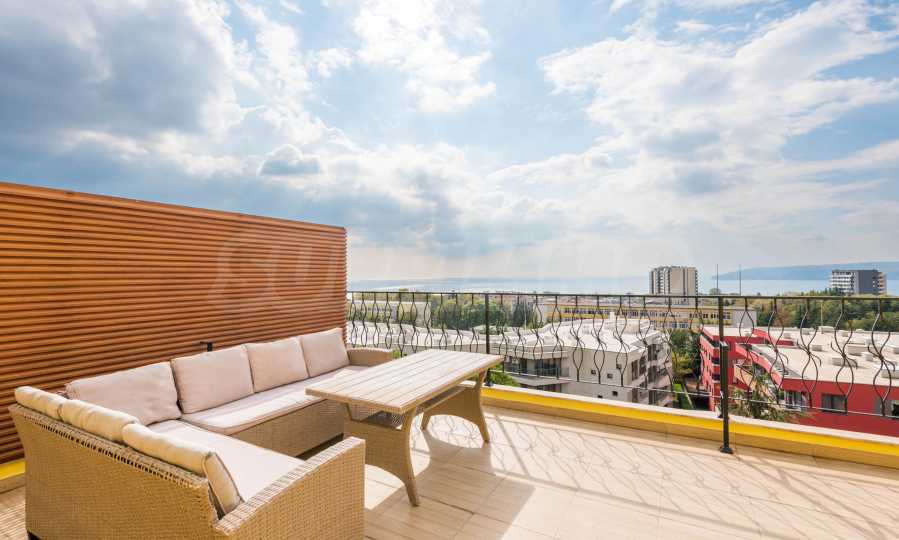 Пентхаус полностью отделан и обставлен функциональной мебелью. Терраса с панорамным видом на море оборудована садовой мебелью. Открытая терраса идеально подходит для утреннего кофе с видом на восход солнца, а также для летних солнечных ванн и приятных семейных вечеров.