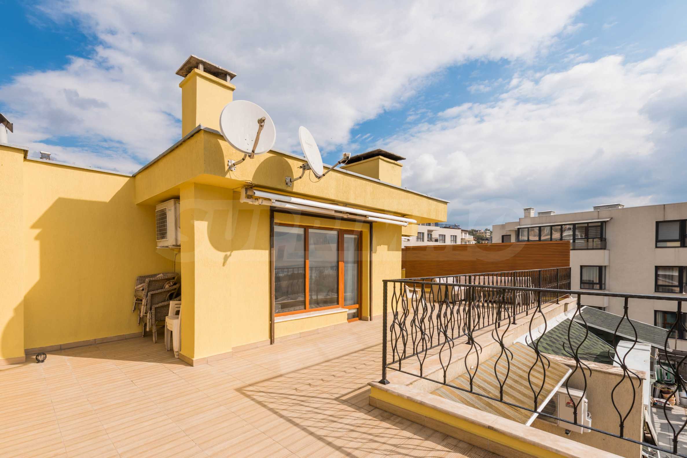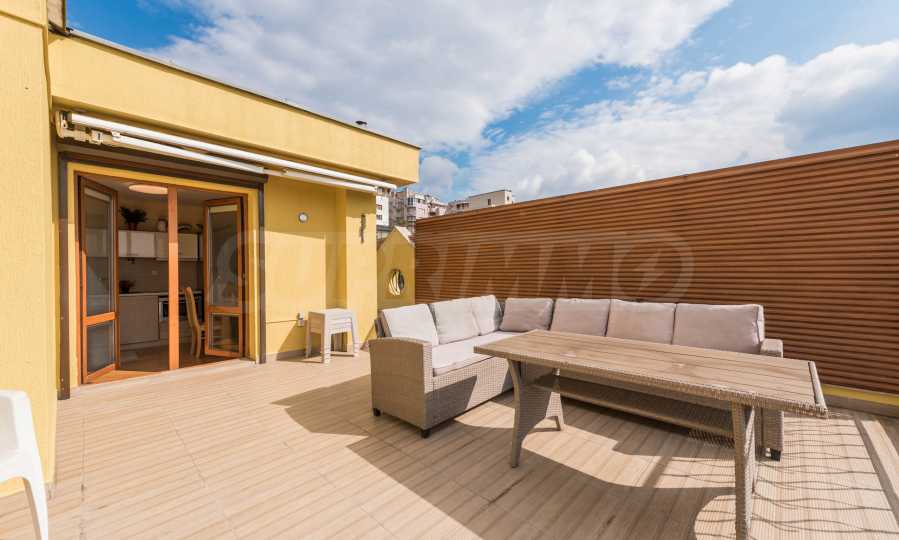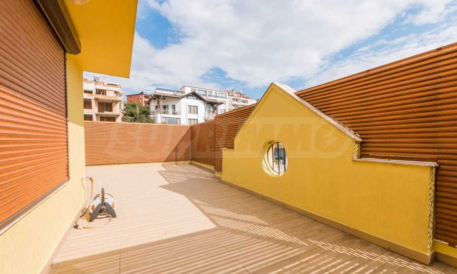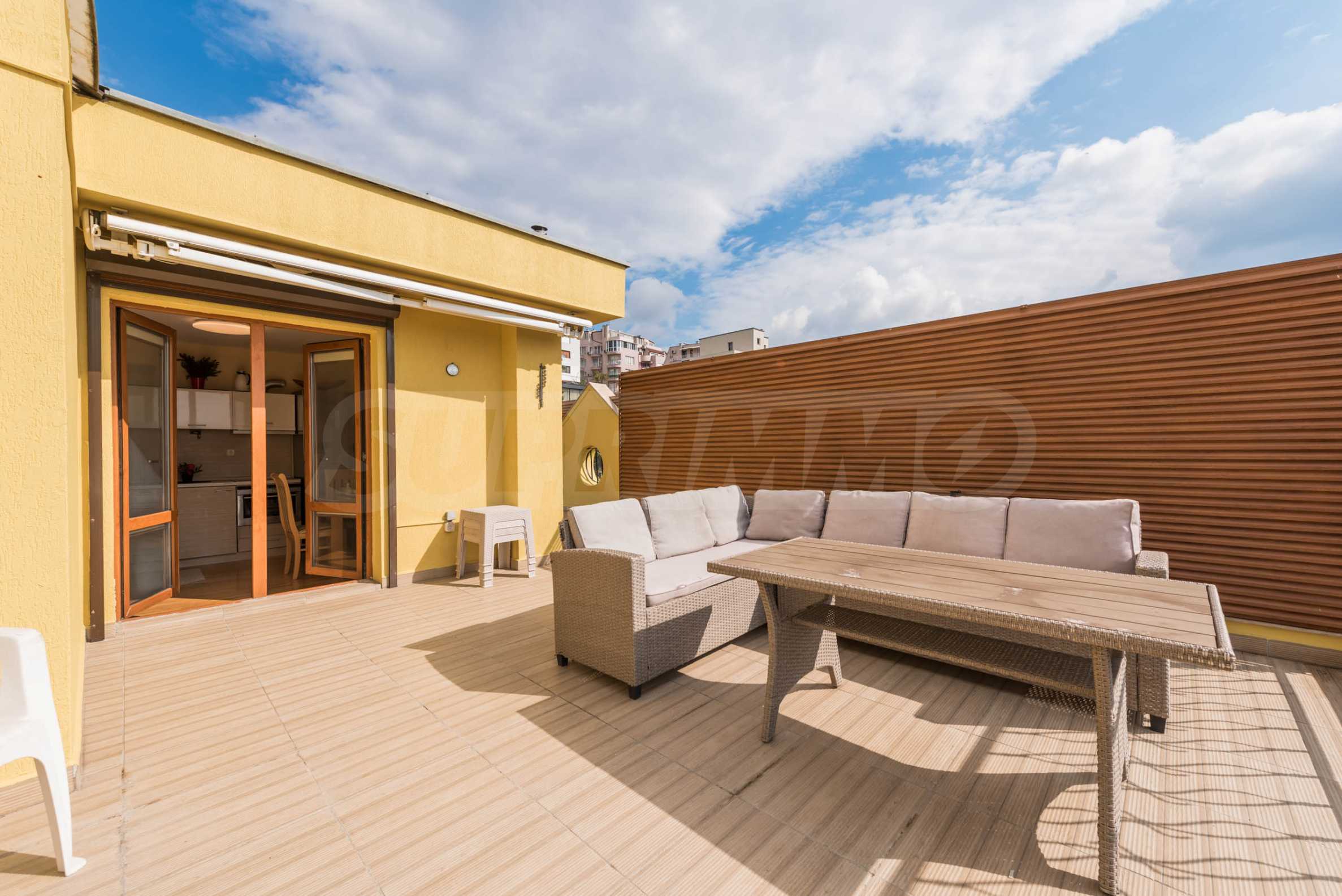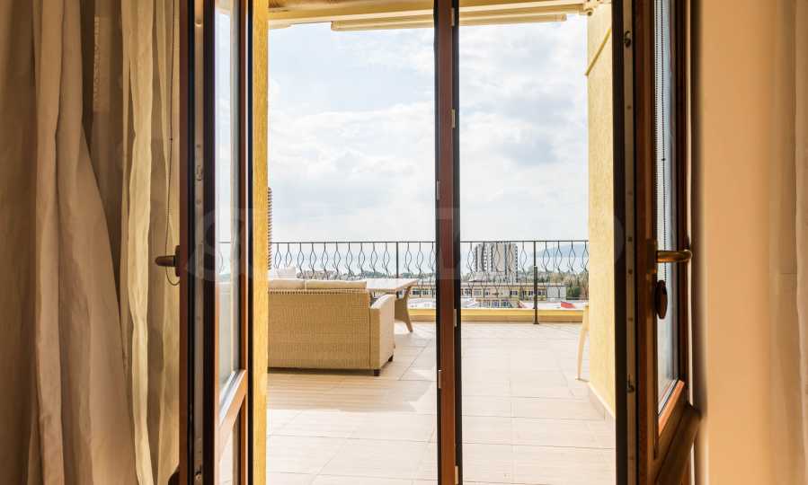 Пентхаус полностью отделан и обставлен функциональной мебелью. Терраса с панорамным видом на море оборудована садовой мебелью. Открытая терраса идеально подходит для утреннего кофе с видом на восход солнца, а также для летних солнечных ванн и приятных семейных вечеров.
