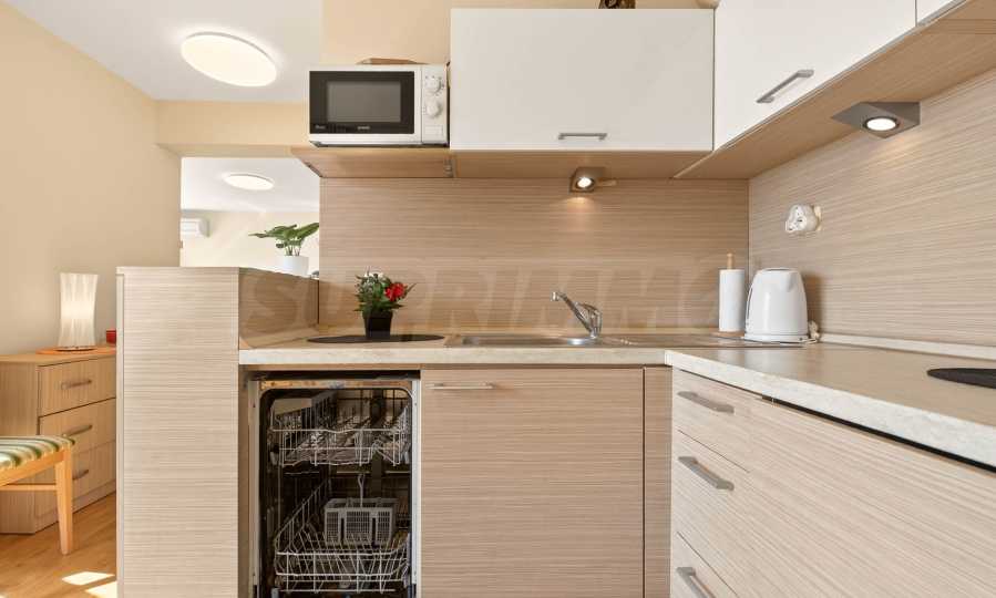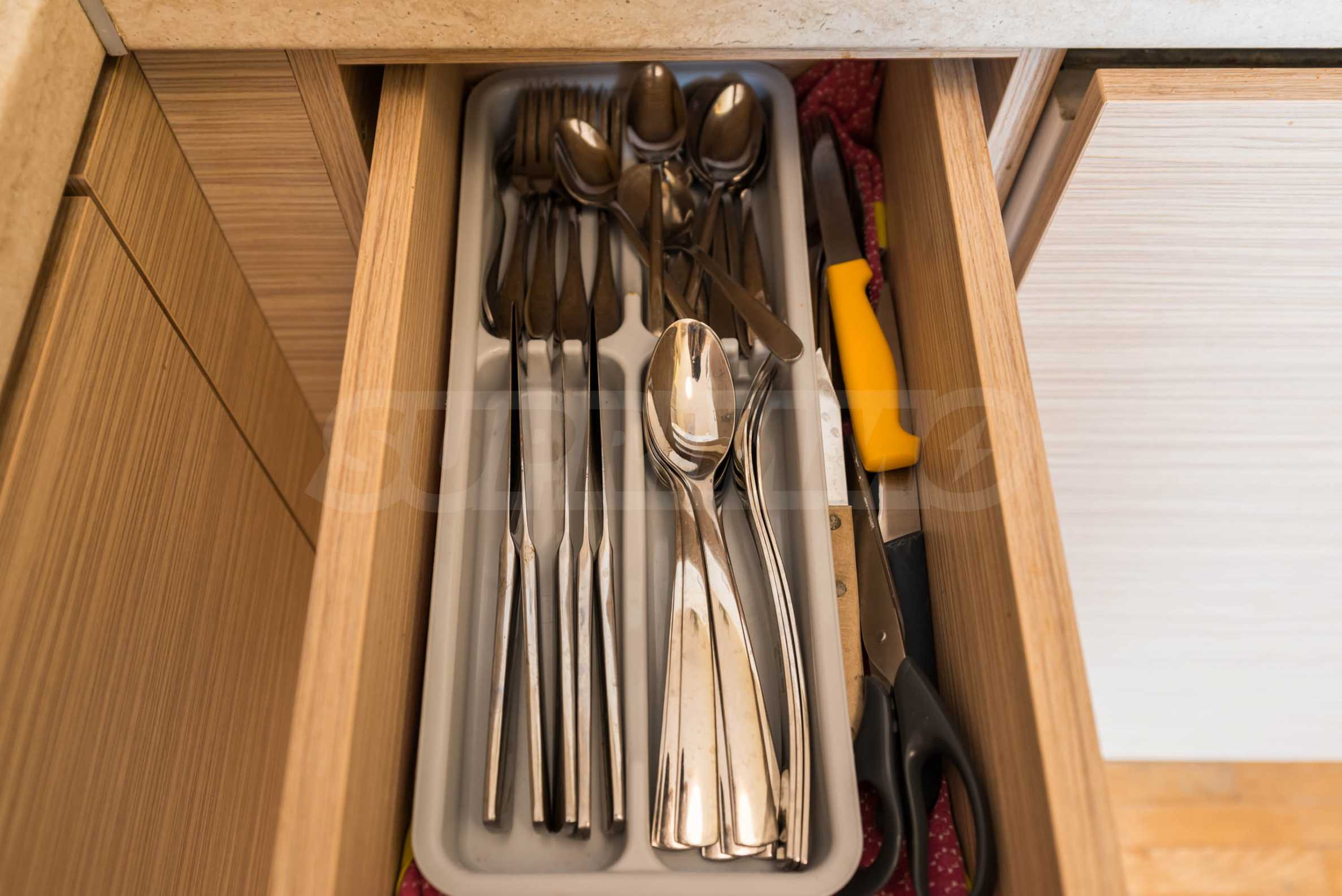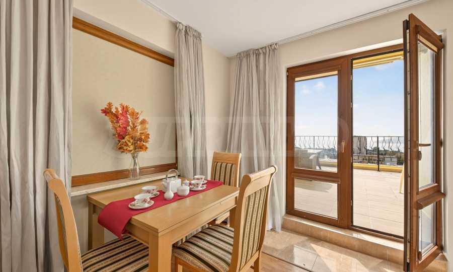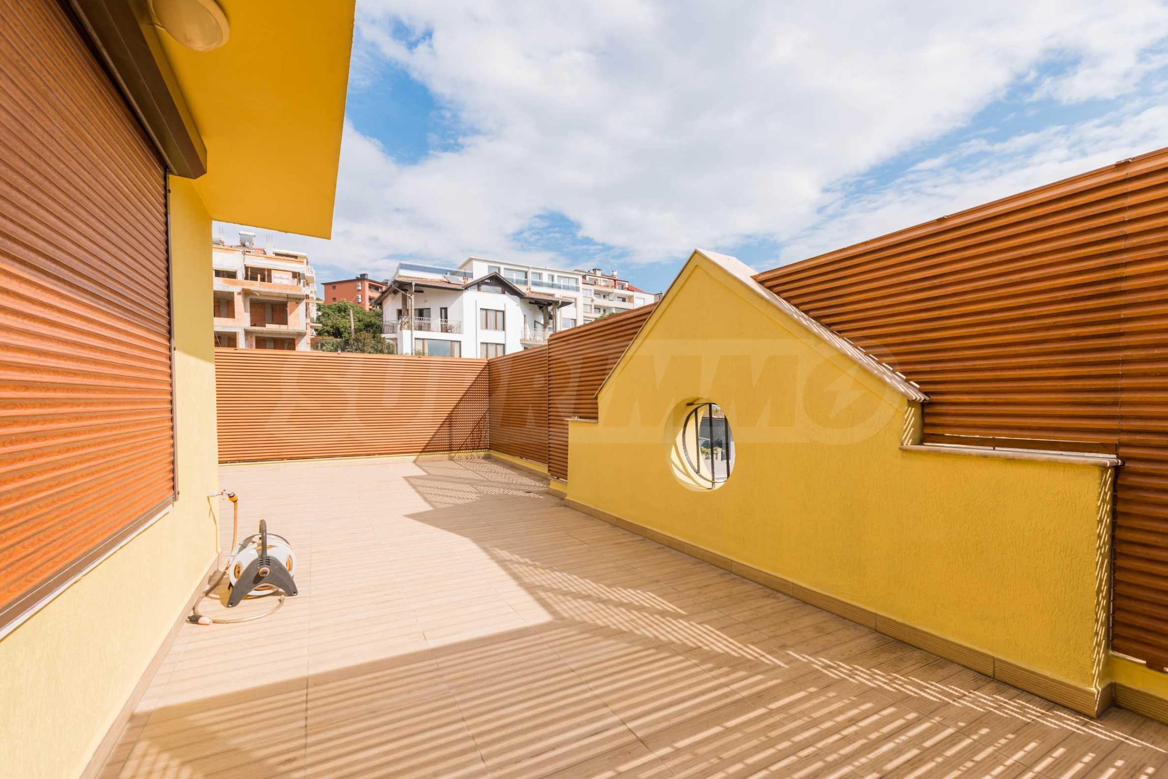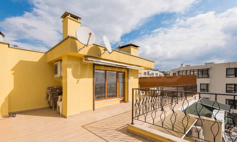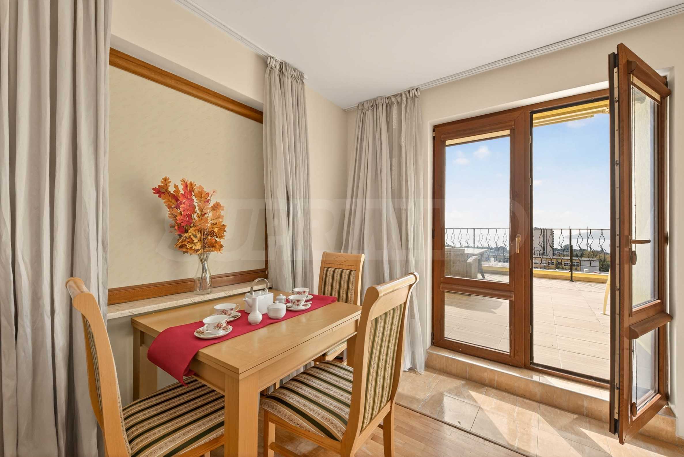 Пентхаус полностью отделан и обставлен функциональной мебелью. Терраса с панорамным видом на море оборудована садовой мебелью. Открытая терраса идеально подходит для утреннего кофе с видом на восход солнца, а также для летних солнечных ванн и приятных семейных вечеров.